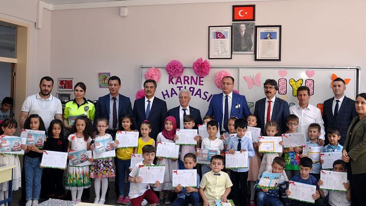 Dumlupınar Ortaokulunda düzenlenen karne törenine Vali Vekili Ali Arıkan, Belediye Başkan Yardımcısı Hakkı Gündüz, İl Milli Eğitim Müdürü Seydi Doğan, İl Emniyet Müdür Yardımcısı Gökay Topçu, İl Milli Eğitim Müdür Yardımcısı Mesut Olgun, veliler ve öğrenciler katıldı.