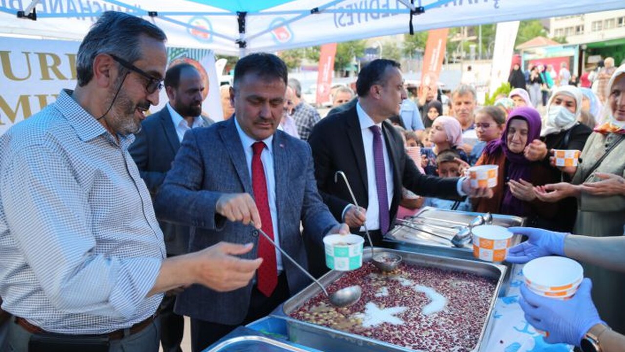 15 Temmuz Zafer Meydanı’nda gerçekleştirilen etkinlikte Vali Kamuran Taşbilek ve Belediye Başkanı Ercan Çimen vatandaşlara elleriyle aşure dağıttı.
