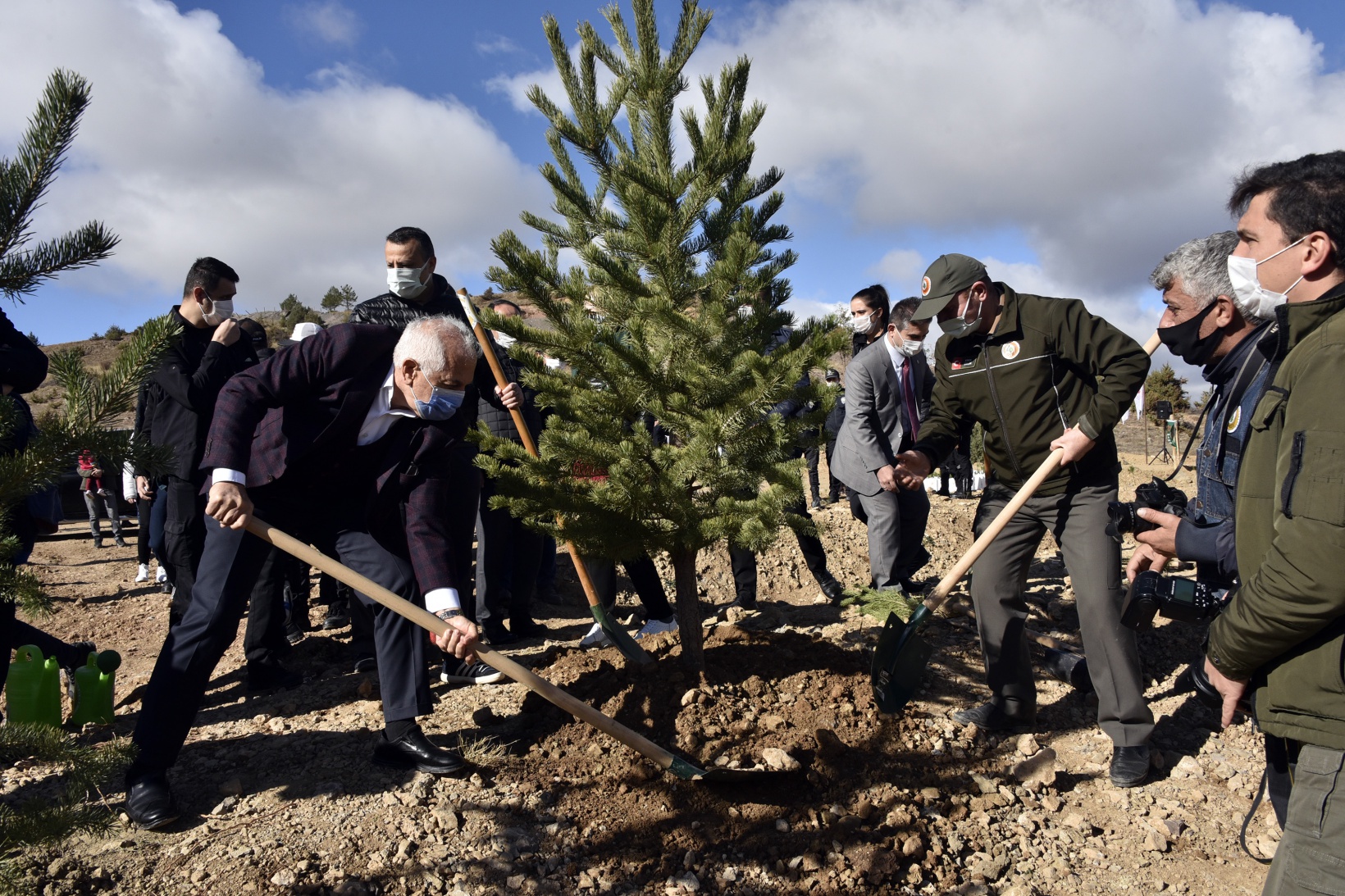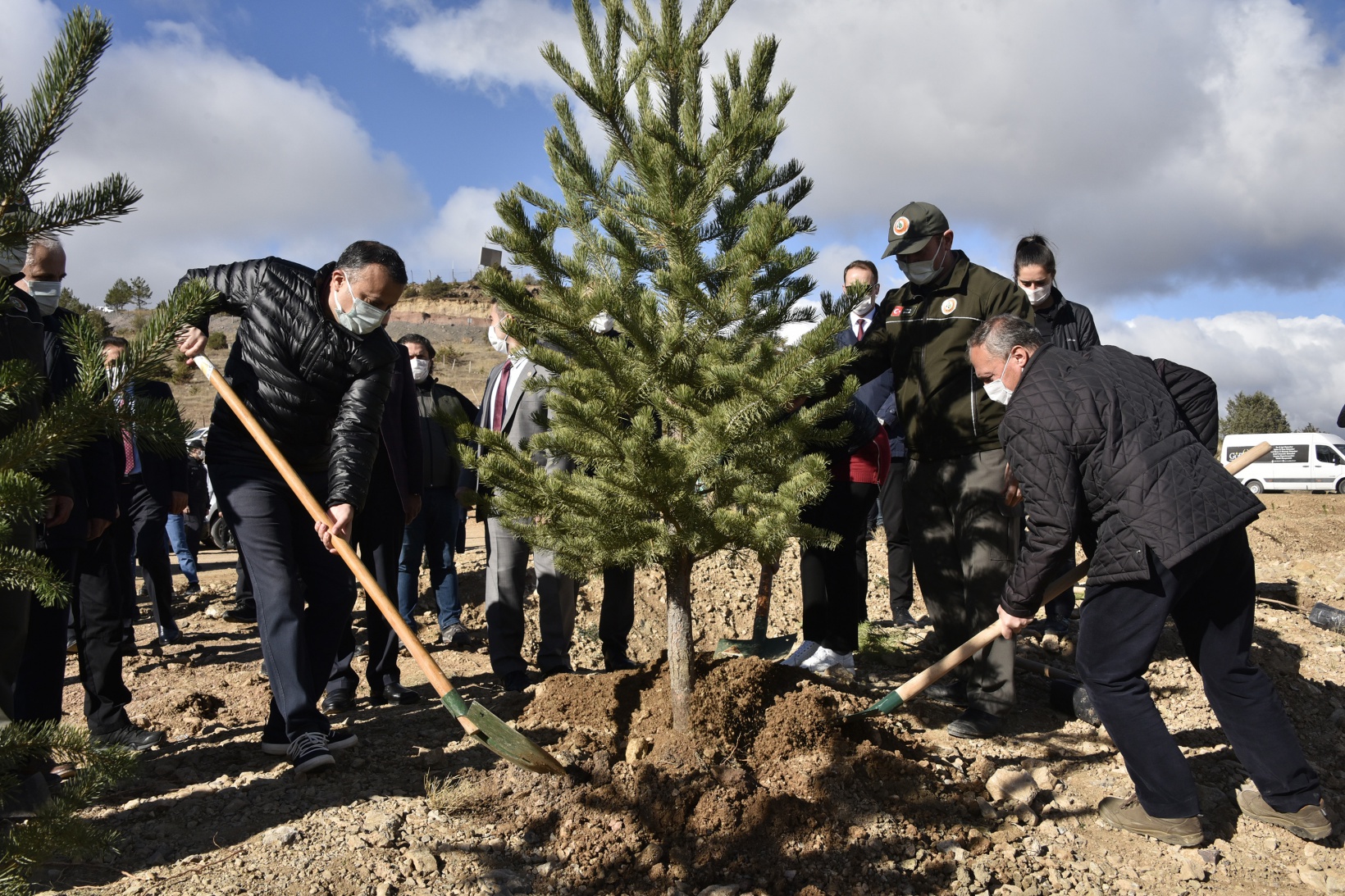 İl merkezinde protokol üyeleri, öğrenciler ve vatandaşların katılımıyla gerçekleştirilen programda 400 adet sarı çam ve huş fidanı toprakla buluşurken, eşi Sibel Taşbilek’le programa katılarak fidan dikip can suyu veren Gümüşhane Valisi Kamuran Taşbilek, etkinliğin 81 ilde eşzamanlı olarak yapıldığına dikkat çekerek, “Ülkemizin ağaçlandırmasına katkı amaçlı her ilde bir farkındalık oluşturmak amacıyla güzel bir faaliyeti gerçekleştiriyoruz. Fidanları toprakla buluşturacağız” dedi.