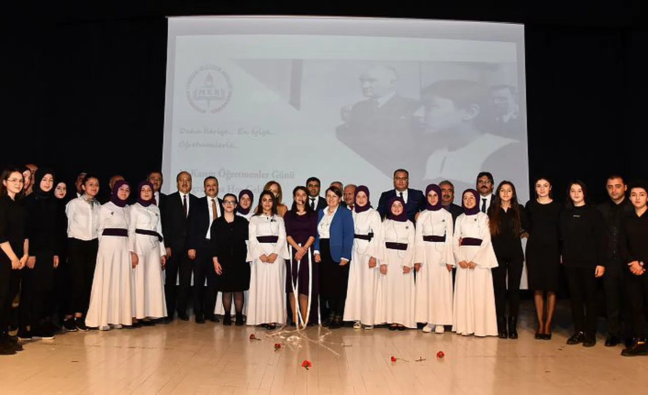 Necmettin ve Aybüke öğretmenleri örnek göstererek öğretmenlerin yılmadan toprağı vatan etme gayesiyle çiçekleri derleyip bir buket haline getirme çabasıyla bütün vatan coğrafyasında bu çabayı gösterdiklerini kaydeden Vali Taşbilek, “O kadar değerli bir iş yapıyorsunuz ki. Malzemesi de meyvesi de insan olan bir unsurla uğraşıyorsunuz. Küçücük bir çocuğu toplumun en değerli unsurları haline getirerek toplumun huzuruna sunuyorsunuz. Fatih’i Fatih yapan Akşemseddin vardı. Bizi biz yapan da bir öğretmenimiz vardı. Bizlere emek veren bütün öğretmenlerimizi saygıyla anıyoruz. Öğretmenlik çok özel, özellikli, fedakarlık gerektiren peygamberi bir meslek. En önemli rütbesi öğretmenlik olan bir meslek” diye konuştu.