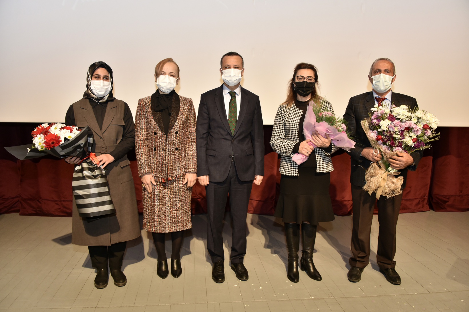 Emekli öğretmenler adına en kıdemli öğretmene hizmet şeref belgesi ve buket, göreve yeni başlayan öğretmenlere Vali Taşbilek ve eşi Sibel Taşbilek tarafından buket ve çeşitli hediyeler takdim edilmesinin ardından düzenlenen yarışmada dereceye giren öğrenciler tarafından şiir ve kompozisyonları okundu.