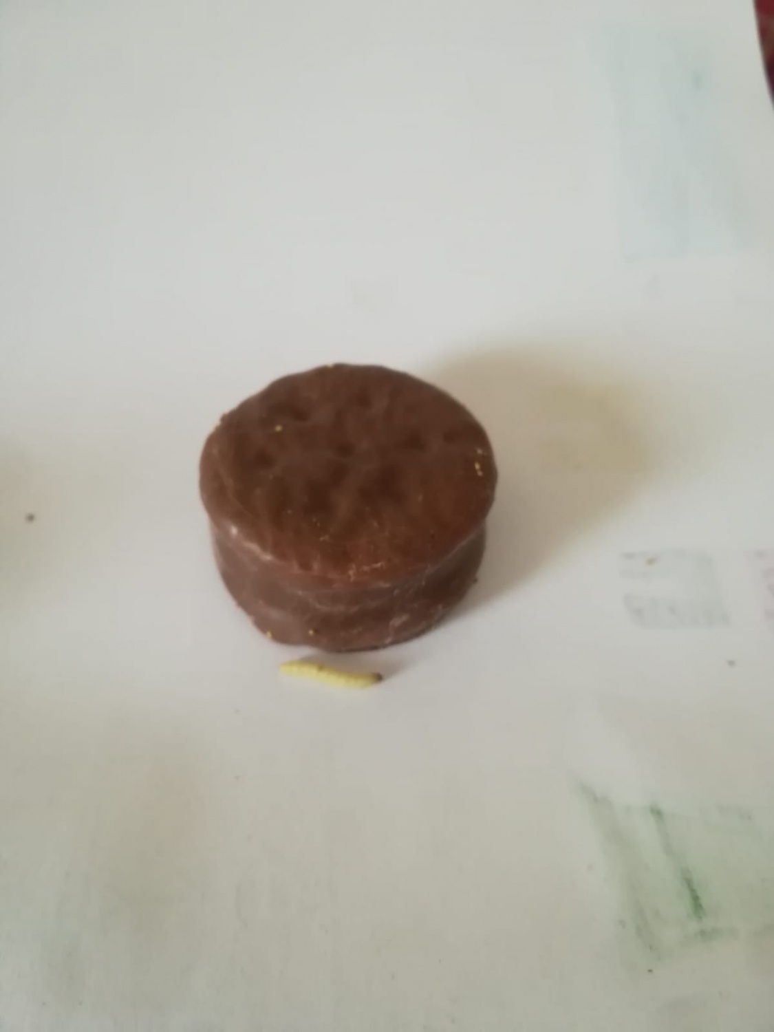 Türkiye'nin en büyük gıda üretici firmalarından birisine ait olan marshmallowlu atıştırmalık paketin içindeki bisküvilerin birisinde yuva yapan kocaman kurt paket açılınca ortaya çıktı.