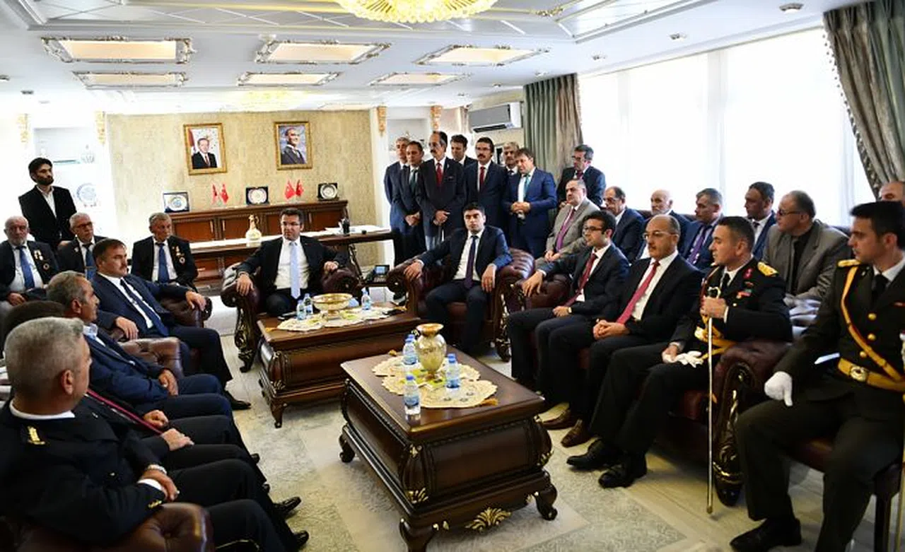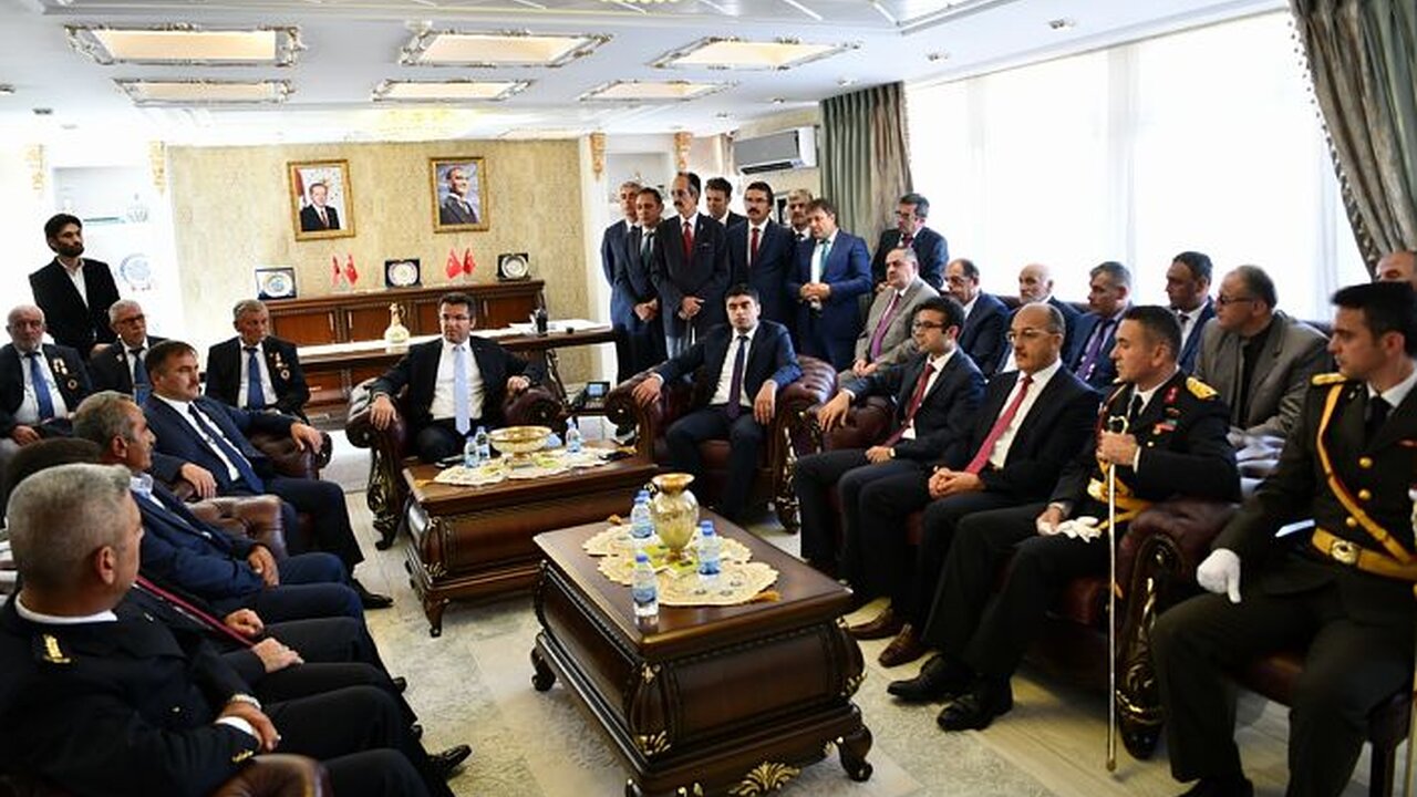 Hükümet Konağı önündeki Atatürk anıtında düzenlenen ilk törende Vali Okay Memiş ve Belediye Başkanı Ercan Çimen Atatürk anıtına çelenk sundu.
