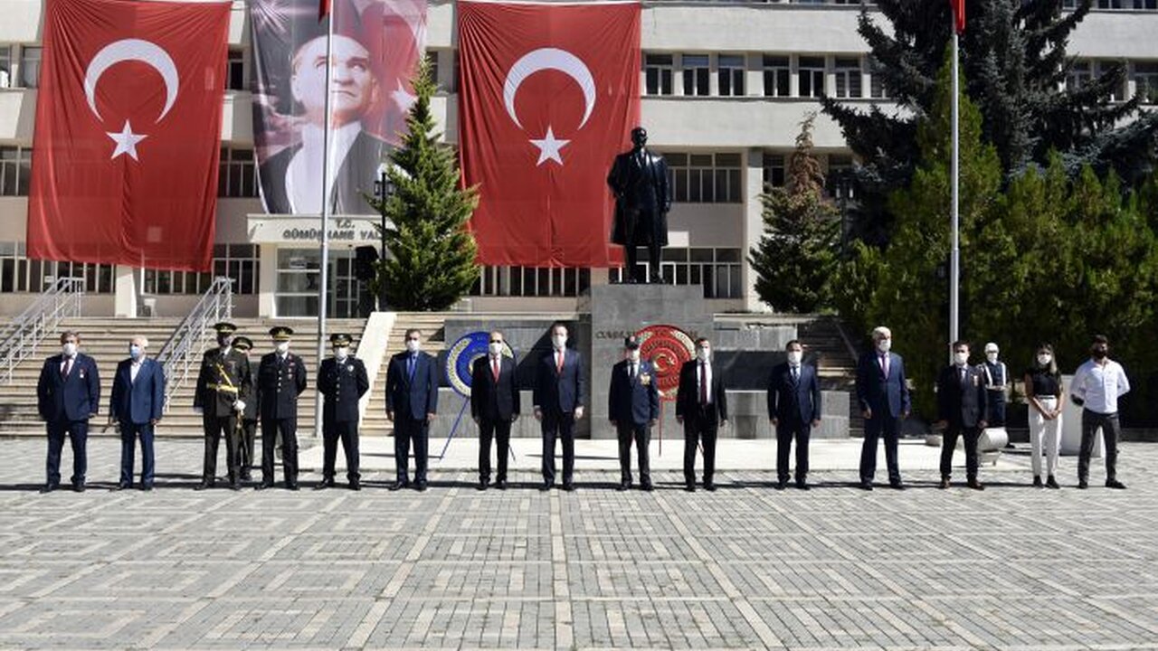 Gümüşhane’de 30 Ağustos Zafer Bayramı’nın 98.yıldönümü sosyal mesafe kurallarına uyularak Atatürk Anıtına çelenk sunulmasıyla kutlandı.