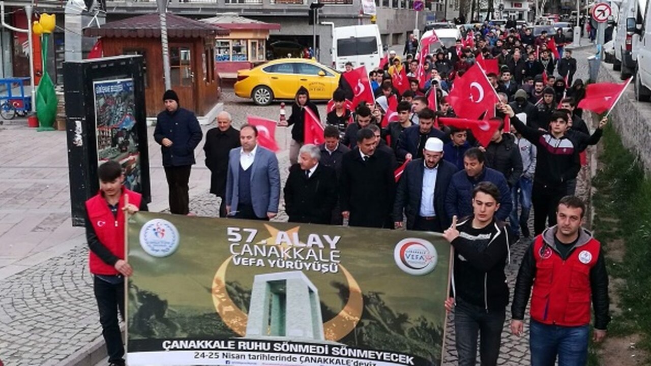 Gümüşhane’de sabah namazı vaktinde tarihe sığmayan kahramanlıklarıyla Çanakkale Zaferi'nde destanlaşan 57. Piyade Alayı şehitleri için anma ve yürüyüş düzenledi.
