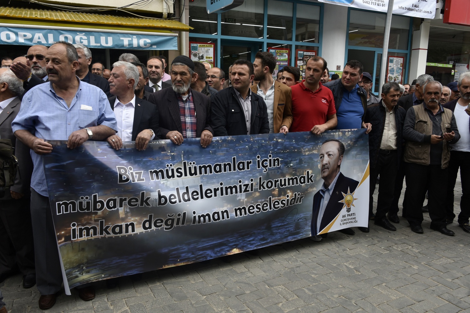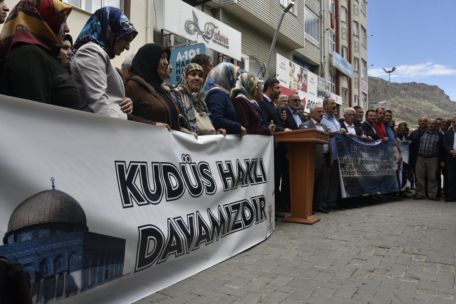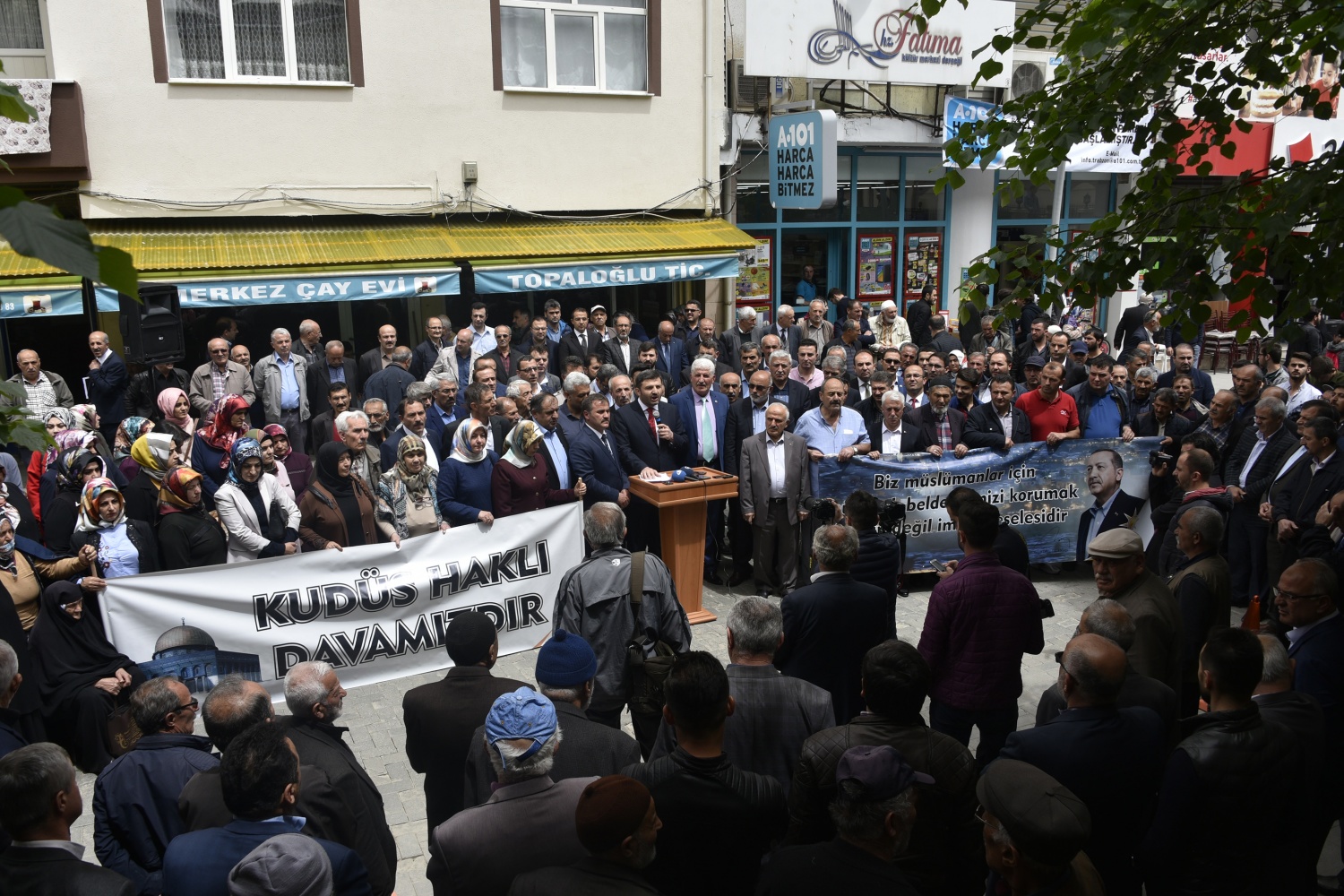 Burada konuşan AK Parti İl Başkanı Av.Celalettin Köse, Amerika Birleşik Devletleri’nin Büyükelçiliğini Kudüs’e taşımasını ve İslam’ın ilk kıblesi kadim Kudüs’ü İsrail’in başkenti olarak tanıma girişimini kabul etmelerinin mümkün olmadığını ve bu girişimin kendileri için yok hükmünde olduğunu söyledi.