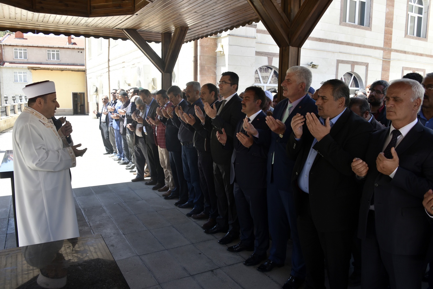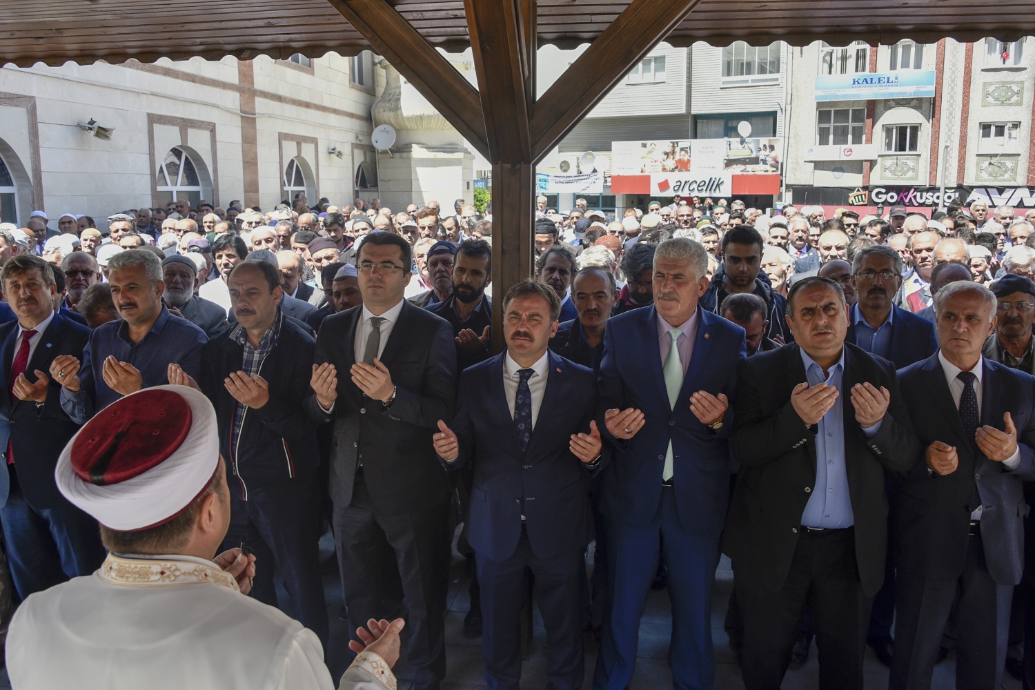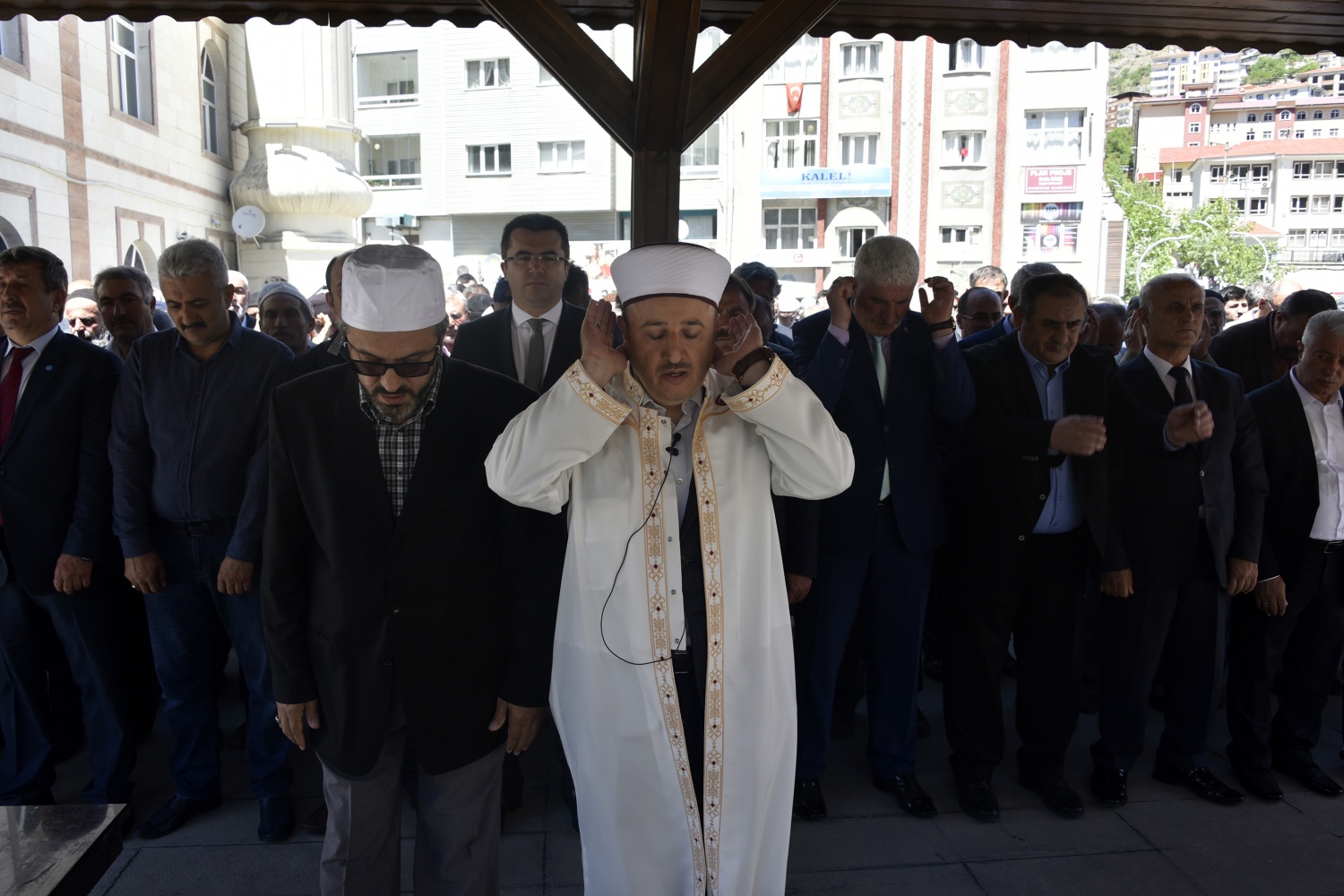 Öğle namazı vakti yaklaştığında salaların okunduğu Gümüşhane’de namazın ardından Vali Okay Memiş, Belediye Başkanı Ercan Çimen, İl Genel Meclisi Başkanı Şerif Bayraktar, AK Parti İl Başkanı Av.Celalettin Köse, MHP İl Başkanı Nadim Aydın, AK Parti, MHP, İYİ Parti milletvekili aday adayları, sivil toplum kuruluşları temsilcileri ve çok sayıda vatandaşın katılımıyla gıyabi cenaze namazı kılındı.