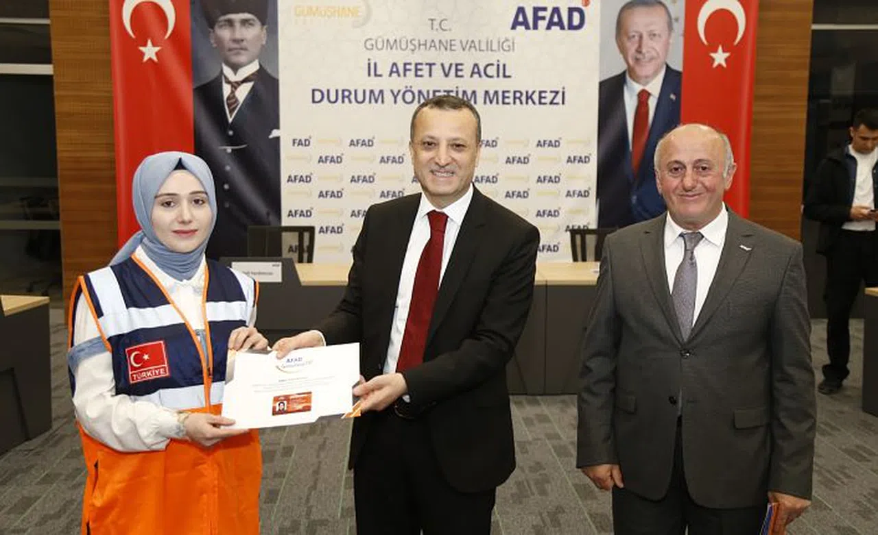 İl Afet ve Acil Durum Müdürlüğü salonunda gerçekleştirilen programda saha eğitimini tamamlayan 12 AFAD Gönüllüsü kursiyere belgeleri de Vali Taşbilek tarafından verildi.