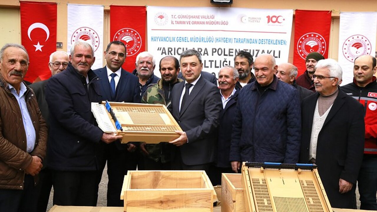 Gümüşhane’de İl Tarım ve Orman Müdürlüğü ve Gümüşhane Arı Yetiştiriciliği Birliği tarafından ve Hayvancılık Genel Müdürlüğü (HEYGEM) tarafından da desteklenen 'Polen Tuzaklı Kovan Altlığı Desteği Projesi' kapsamında Gümüşhane Valisi Alper Tanrısever’in de katılımıyla kovan altlığı dağıtımı gerçekleştirildi.