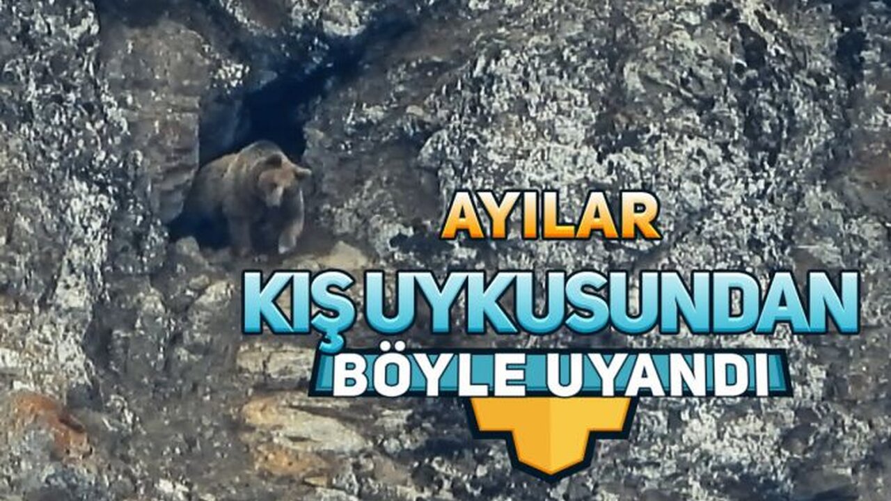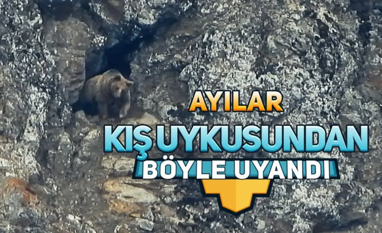 Oldukça yüksek ve sarp kayalıklar içerisindeki mağarasından 3 yavrusuyla birlikte çıkan dev anne ayının yavrularıyla oynaması ve otlaması kameralara takıldı.