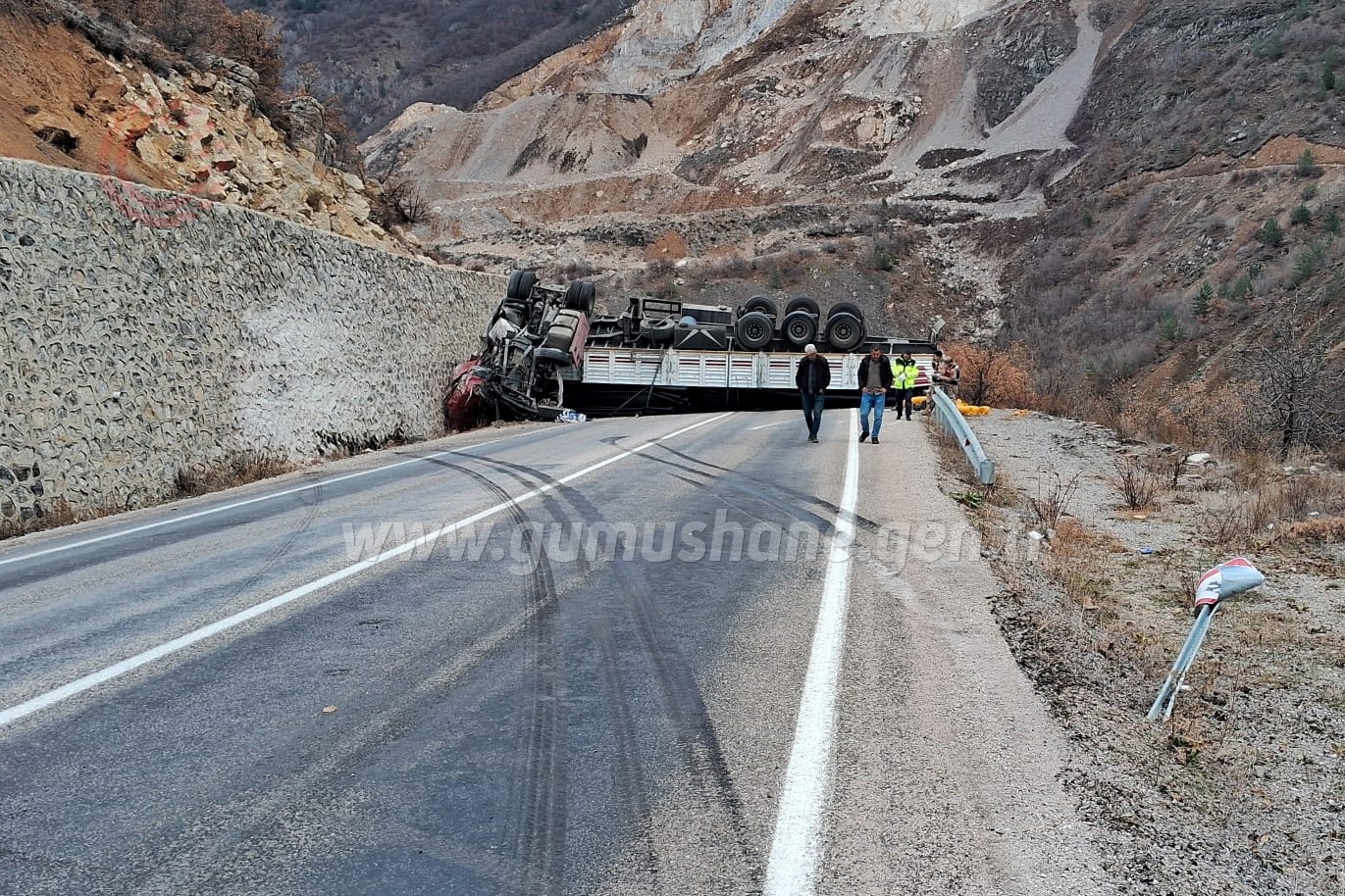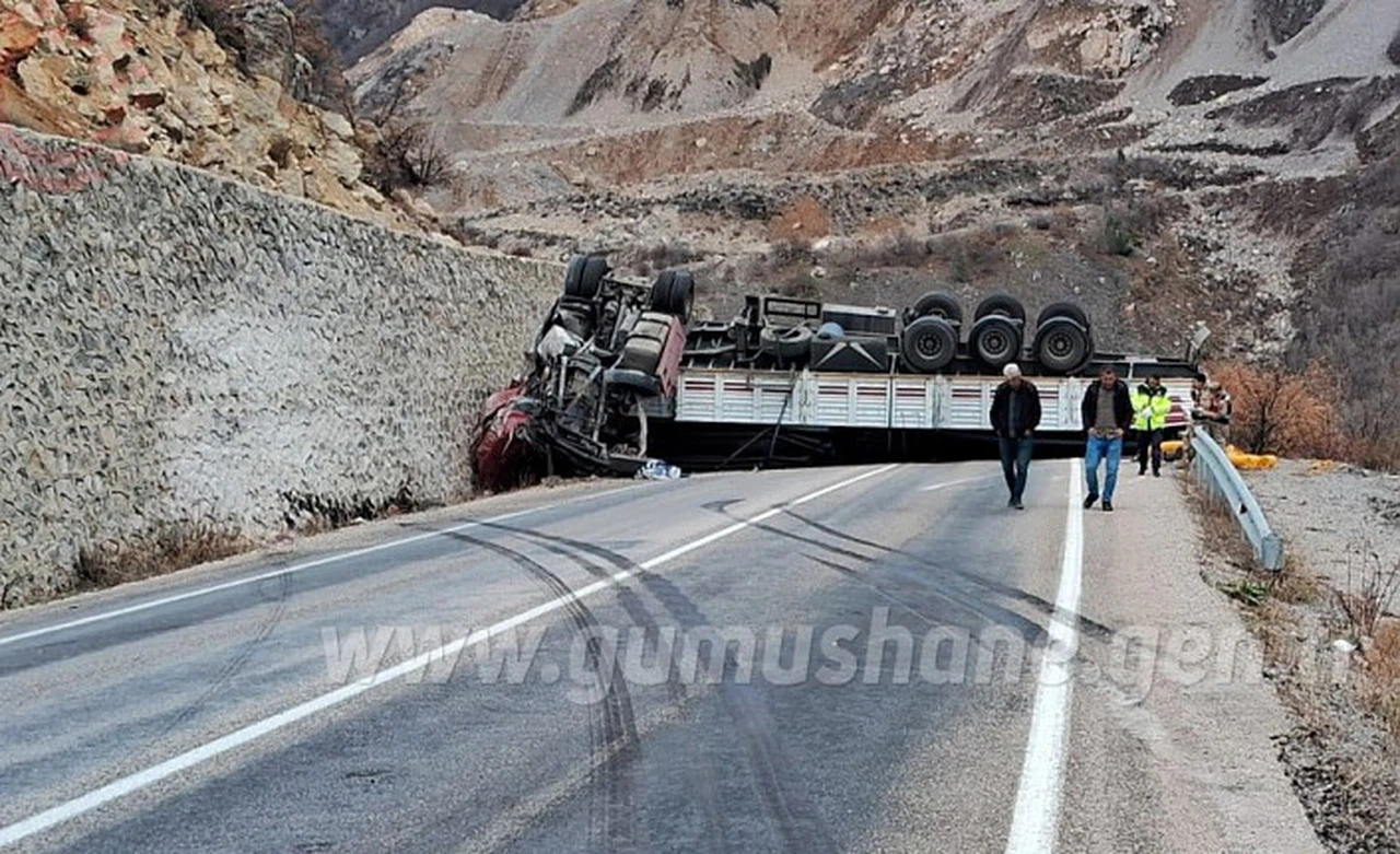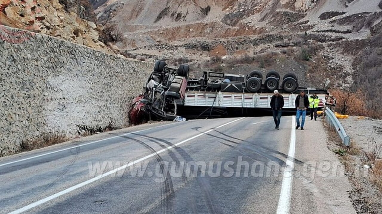 Kaza nedeniyle devrilen tır karayolunu ulaşıma kapatırken ağır yaralanan sürücü Özdemir, 112 Acil Sağlık ekiplerinin olay yerindeki ilk müdahalesinin ardından Gümüşhane Devlet Hastanesi yoğun bakım servisinde tedavi altına alındı.