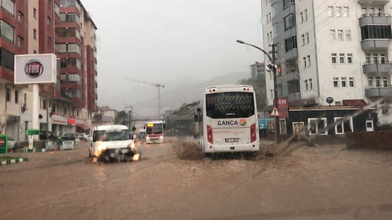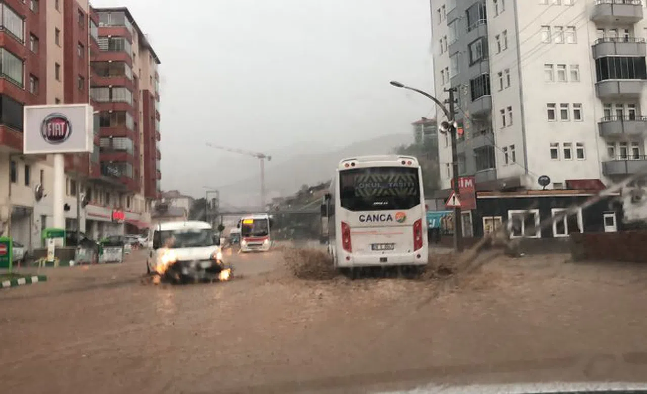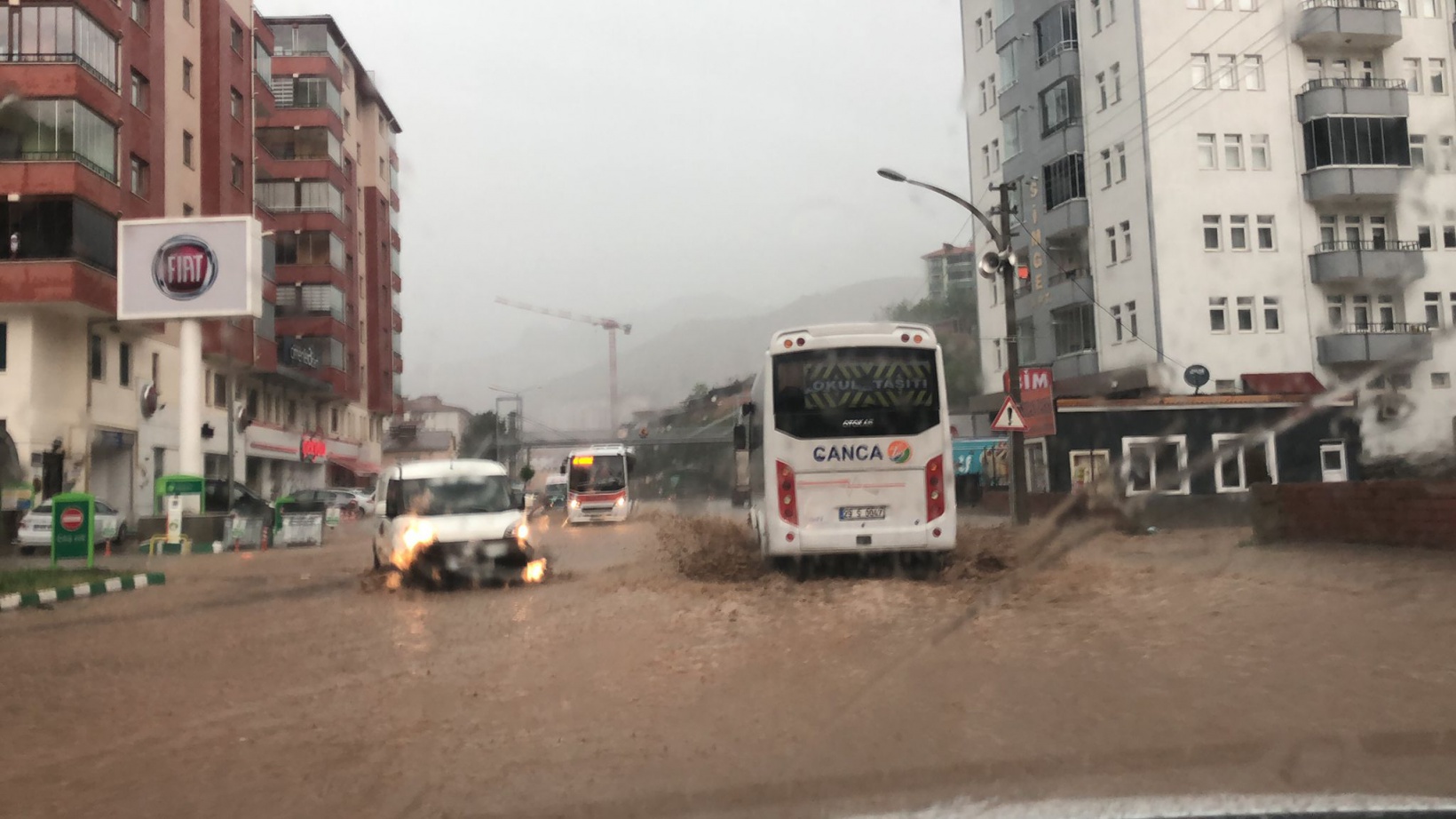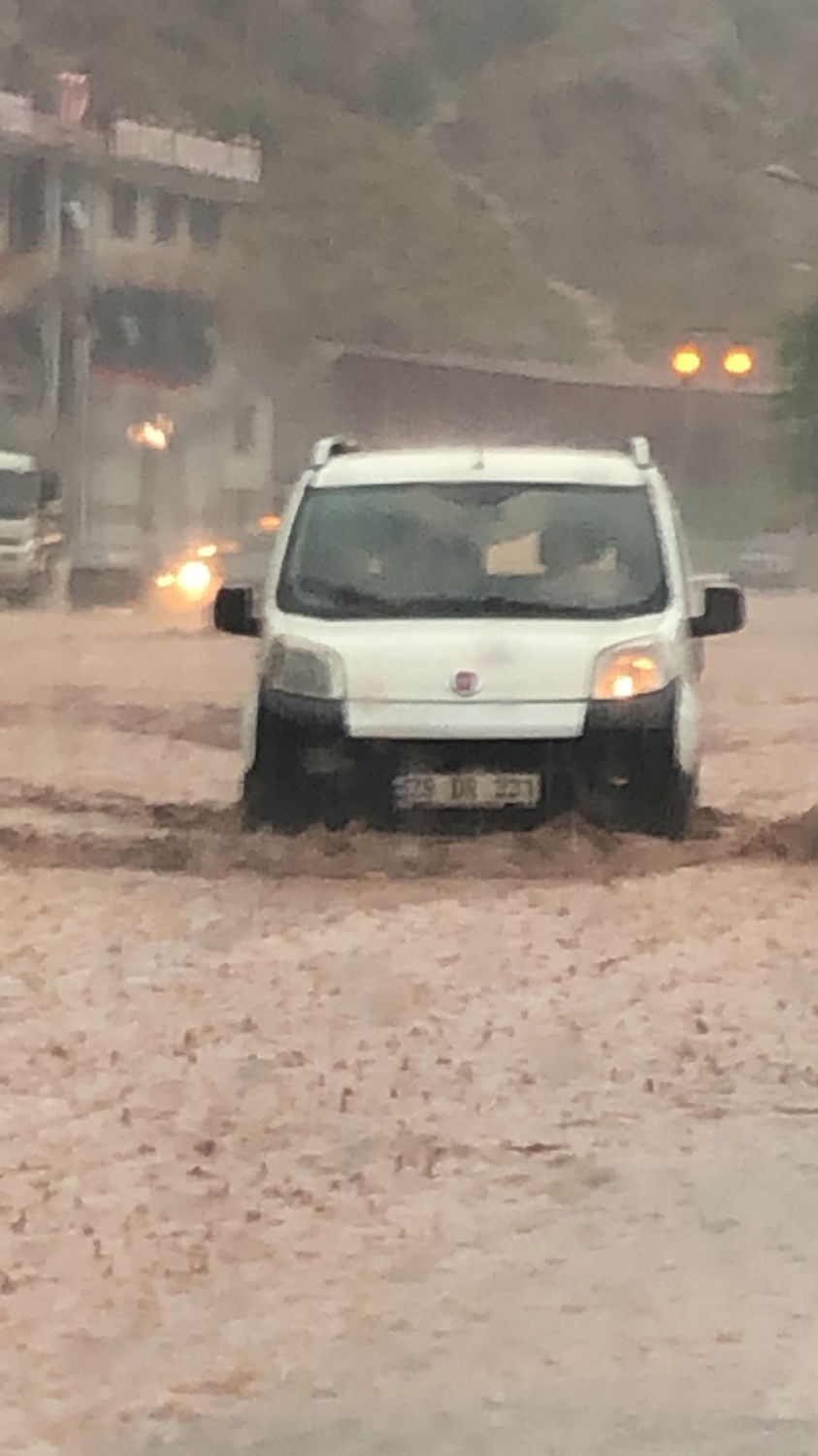 Kent merkezinde etkili olan şiddetli yağmur yağışı nedeniyle başta şehir içinden geçen karayolu olmak üzere caddeler göle dönerken, transit yolda ulaşım bir süre durdu, caddelerdeki dükkanları da su bastı.