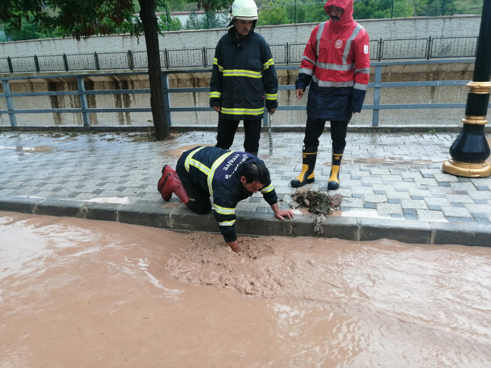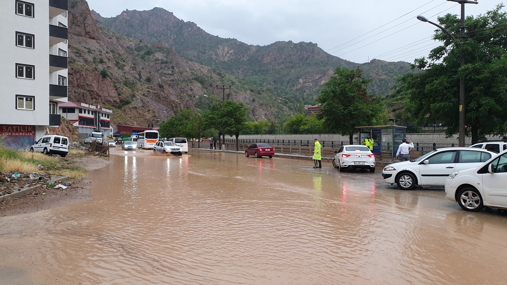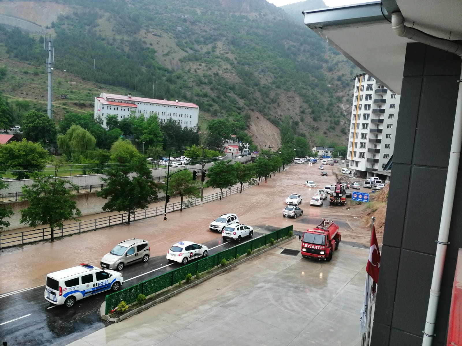 Merkezdeki caddelerde de manzara aynı olurken dükkanlarını su basan esnaflar uzun uğraşlar verirken, derin bir vadide yer alan kent merkezinin yüksek mahallelerinden aşağıya doğru dereye dönen yollardan taş, çamur aktı.