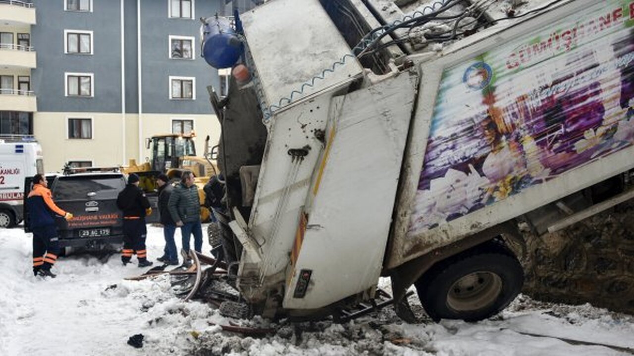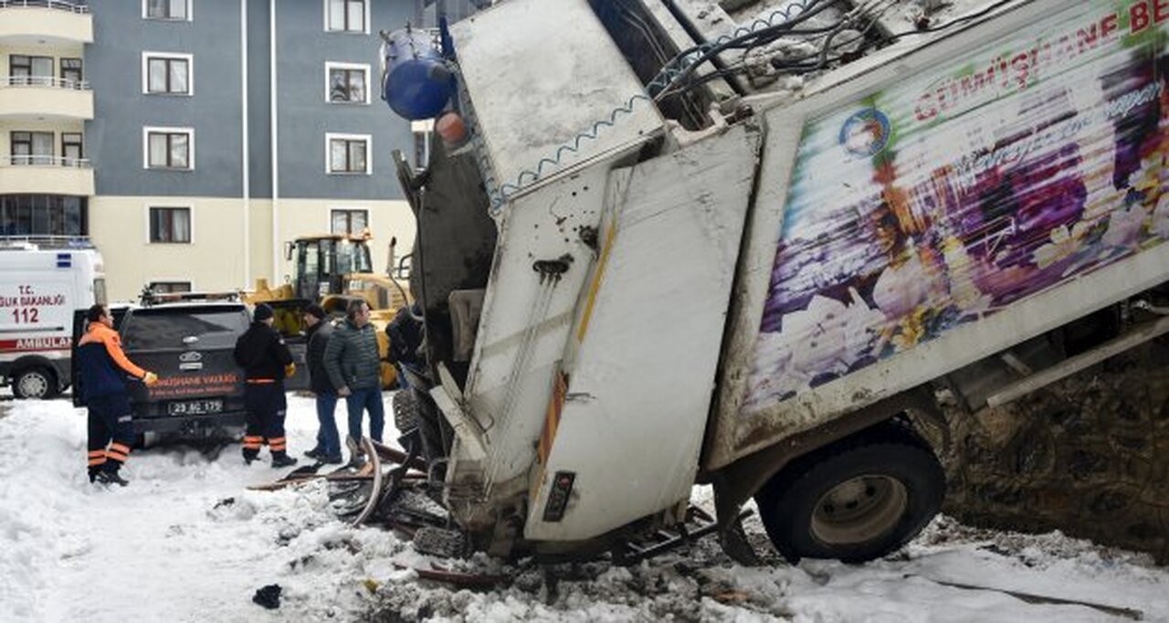 Gümüşhane’de sabah saatlerinde kaygan yolda kontrolden çıkan çöp toplama kamyonu devrildi. Kazada aracın arkasında asılı duran temizlik personeli yaralandı.