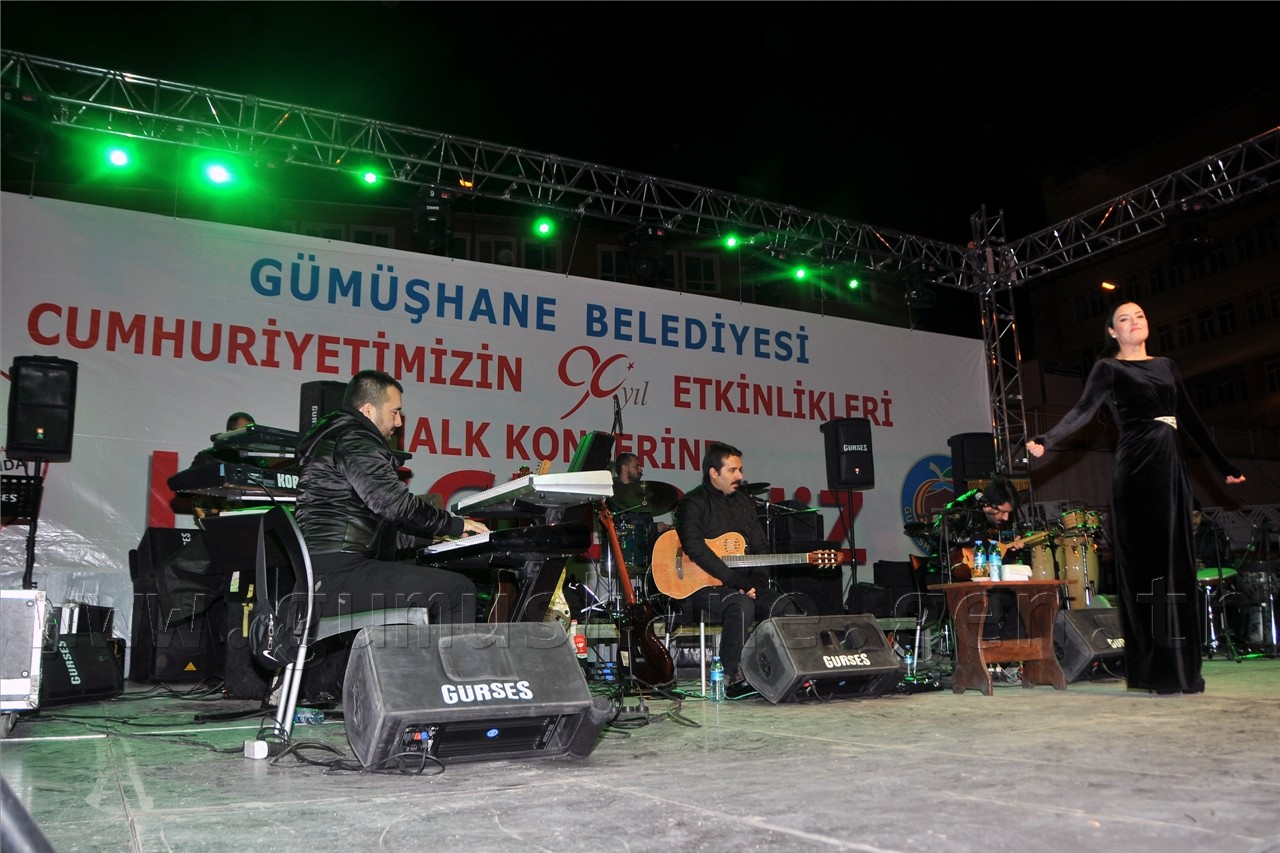 Gümüşhane Belediye Başkanlığı’nın Cumhuriyetin 90.yılı nedeniyle düzenlediği açıkhava konseri soğuk havaya rağmen özellikle üniversite öğrencileri tarafından büyük ilgi gördü.