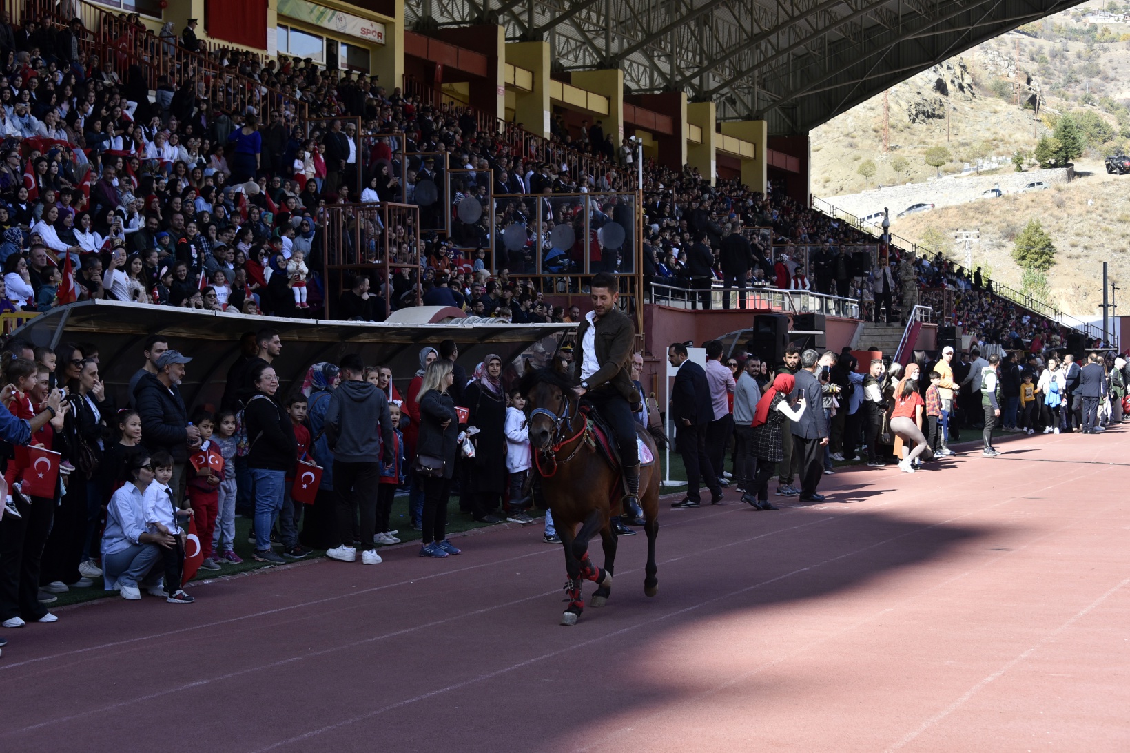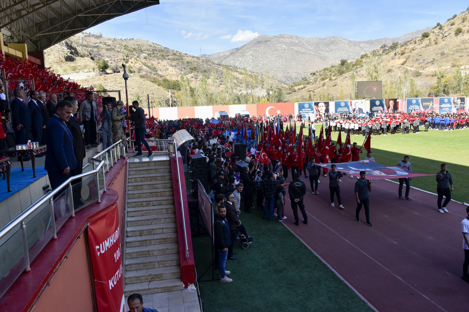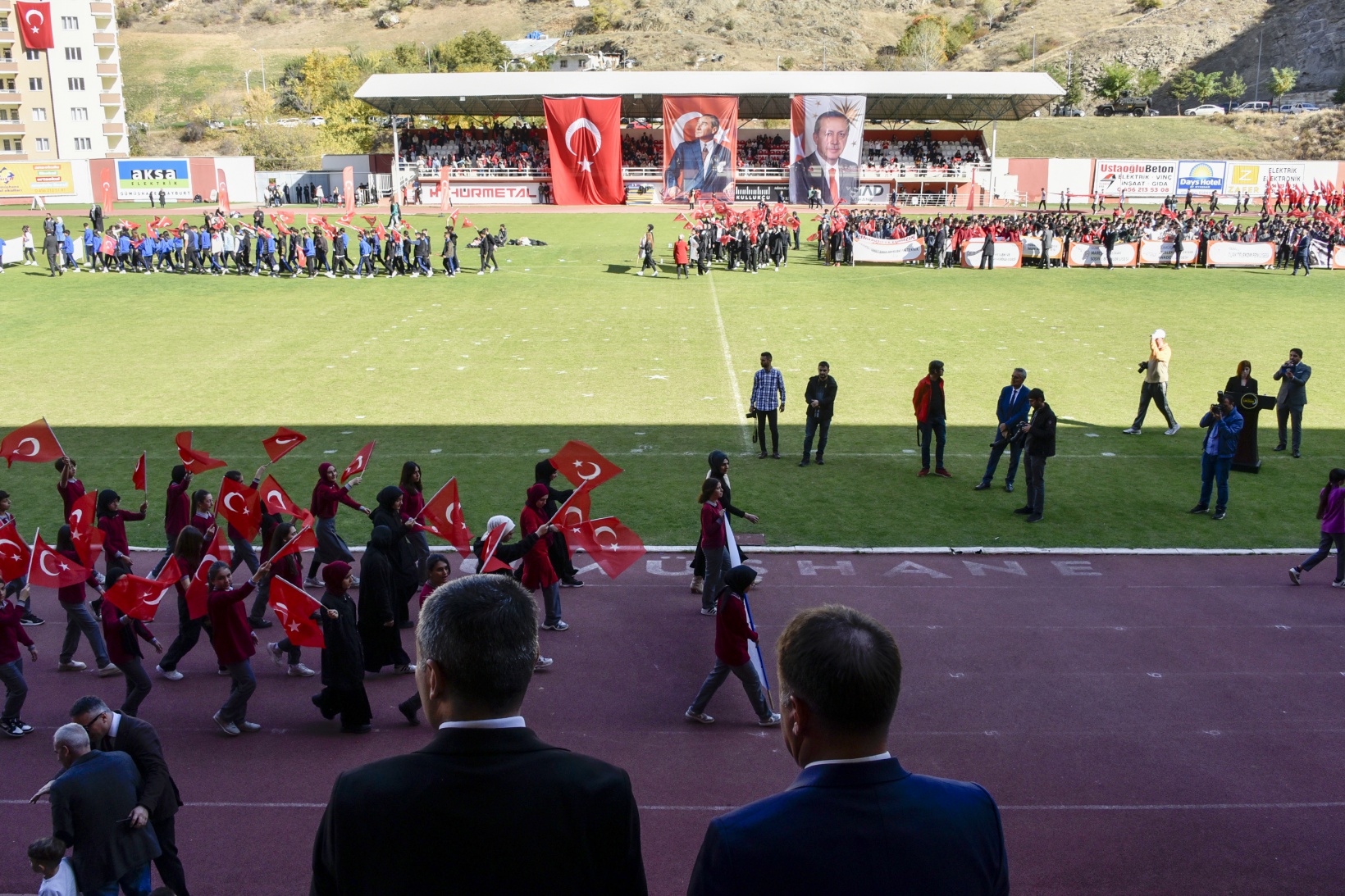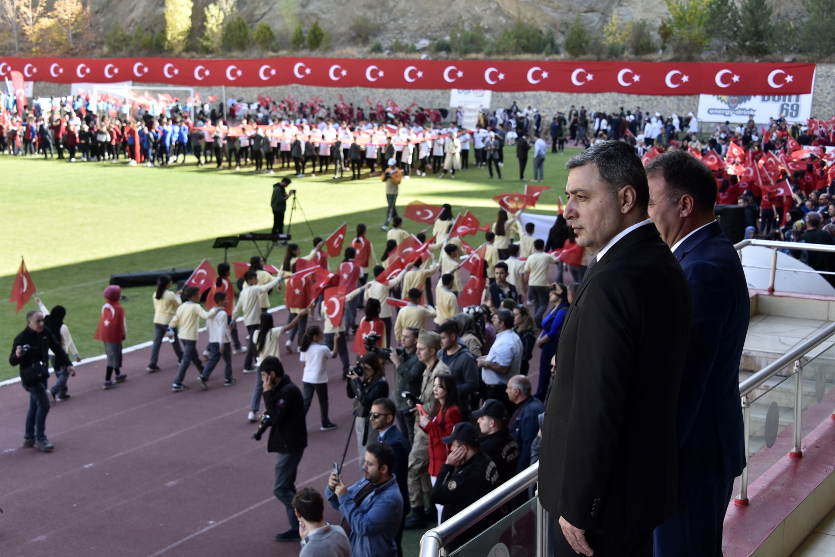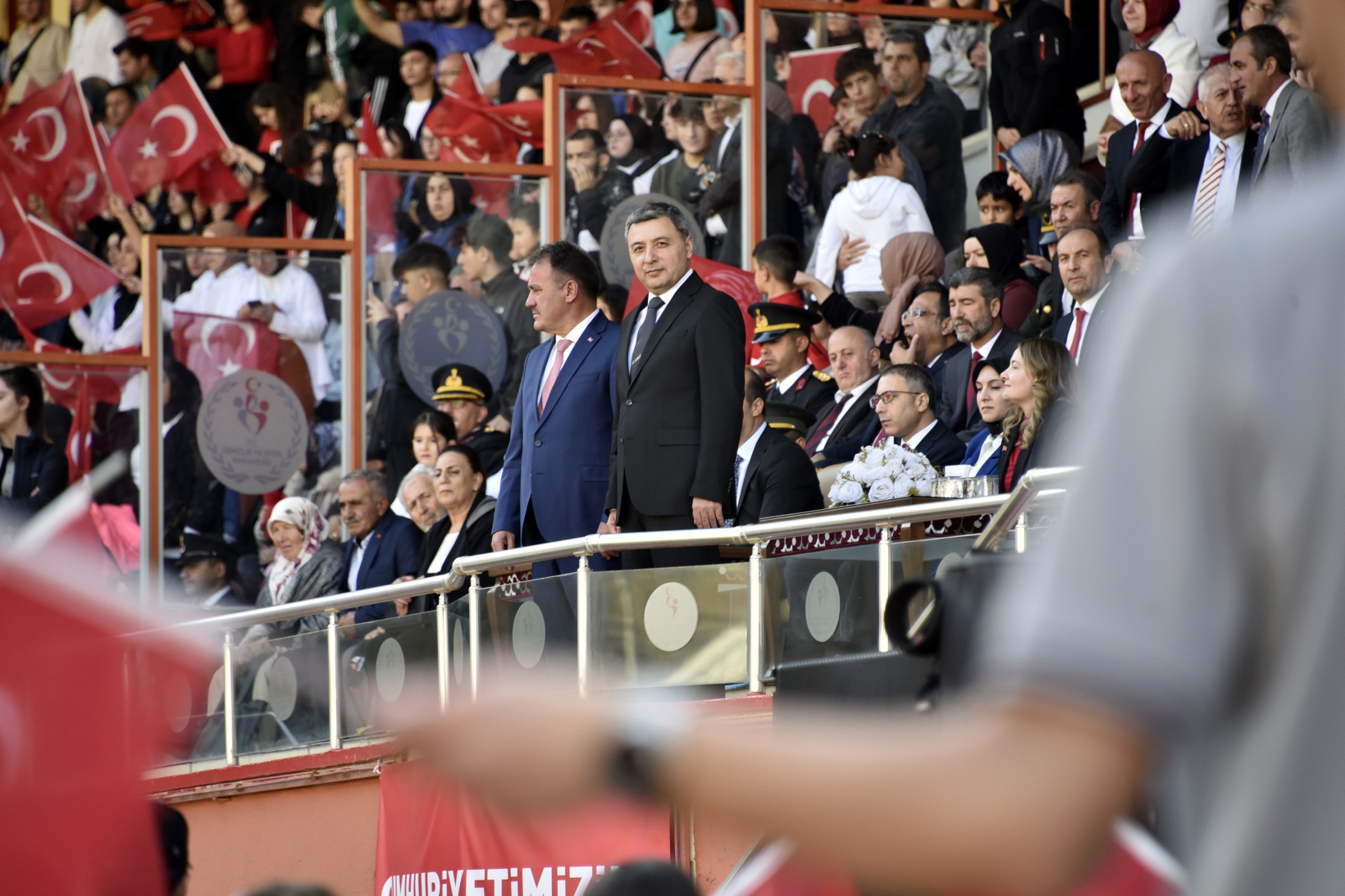 Burada öğrencileri ve stadı dolduran vatandaşları selamlayan Vali Tanrısever, öğrenciler ve vatandaşların 29 Ekim Cumhuriyet Bayramı’nı kutladı.