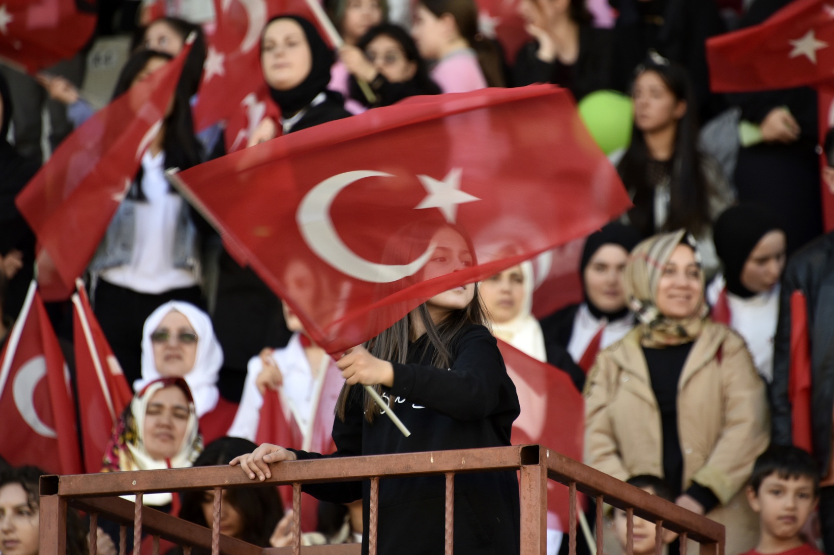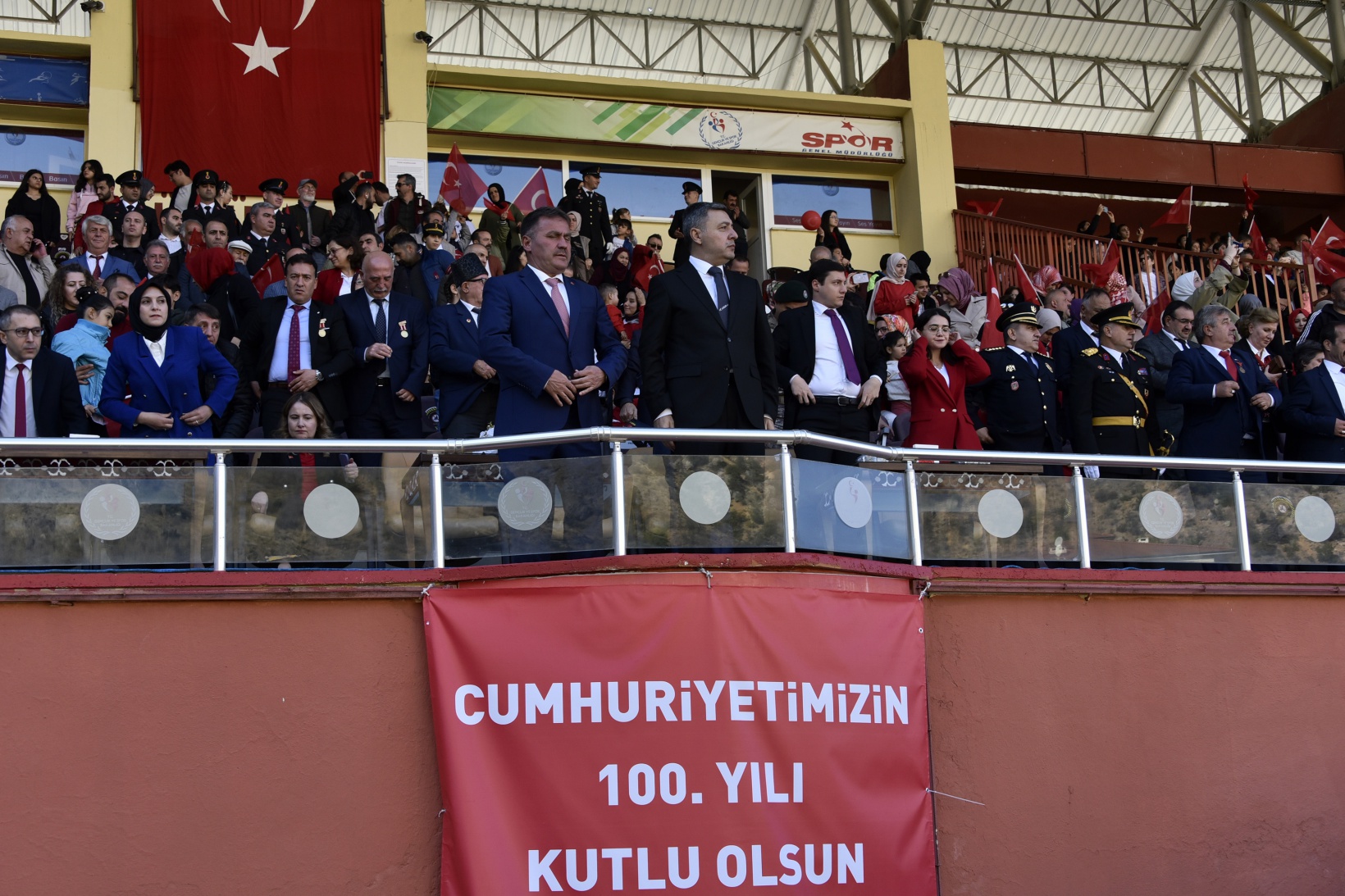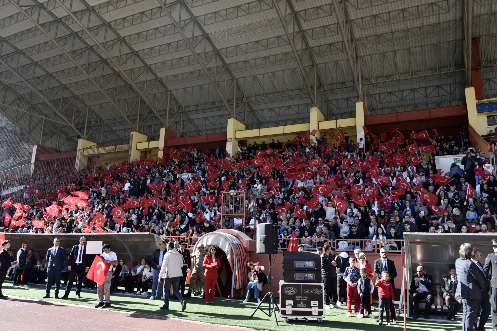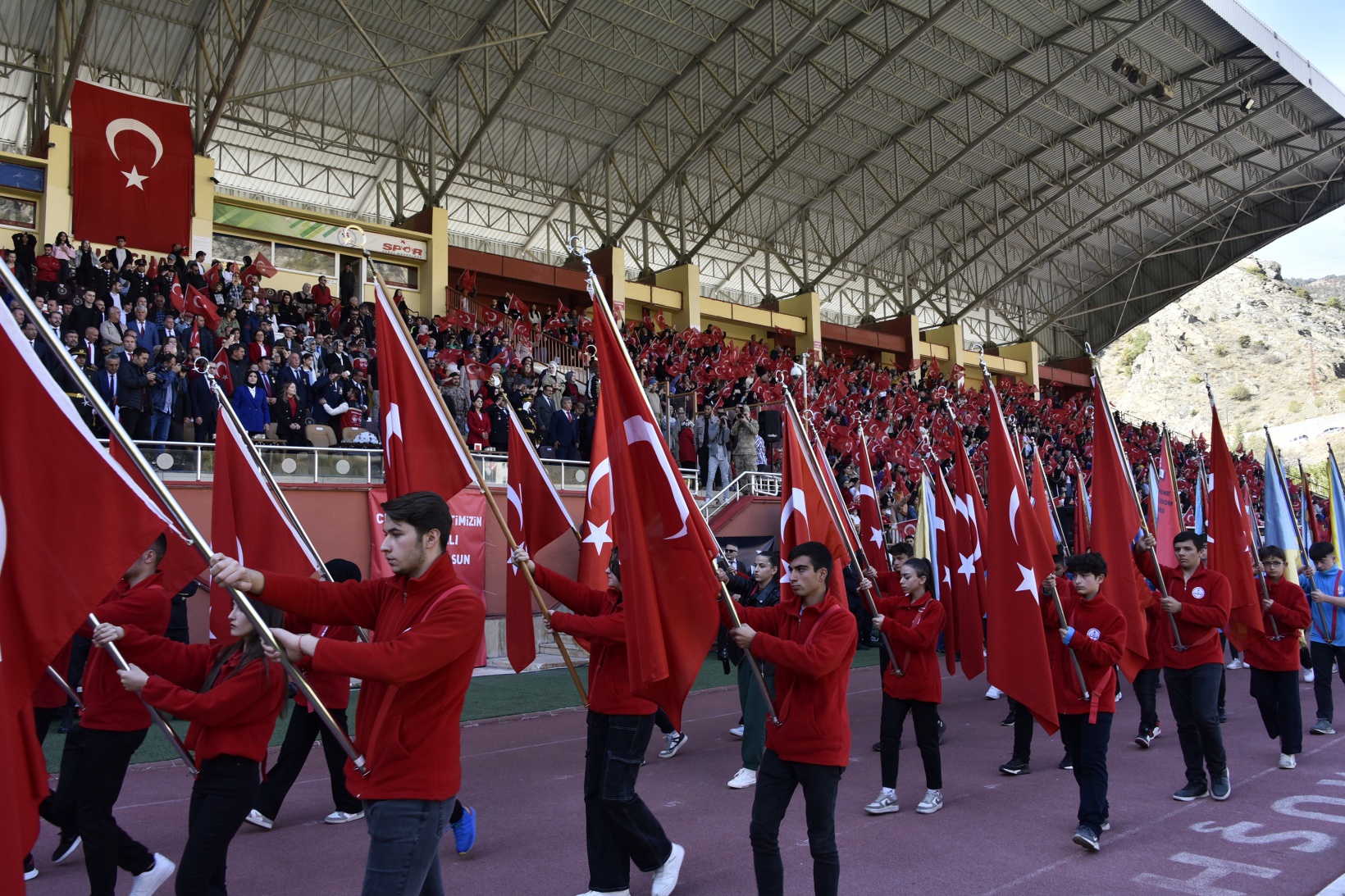 Burada öğrencileri ve stadı dolduran vatandaşları selamlayan Vali Tanrısever, öğrenciler ve vatandaşların 29 Ekim Cumhuriyet Bayramı’nı kutladı.