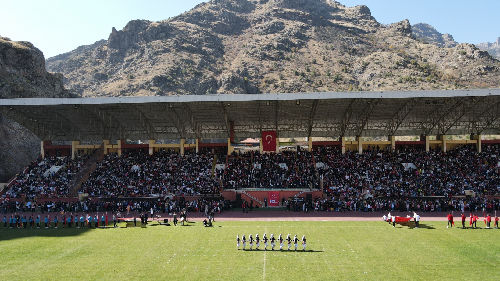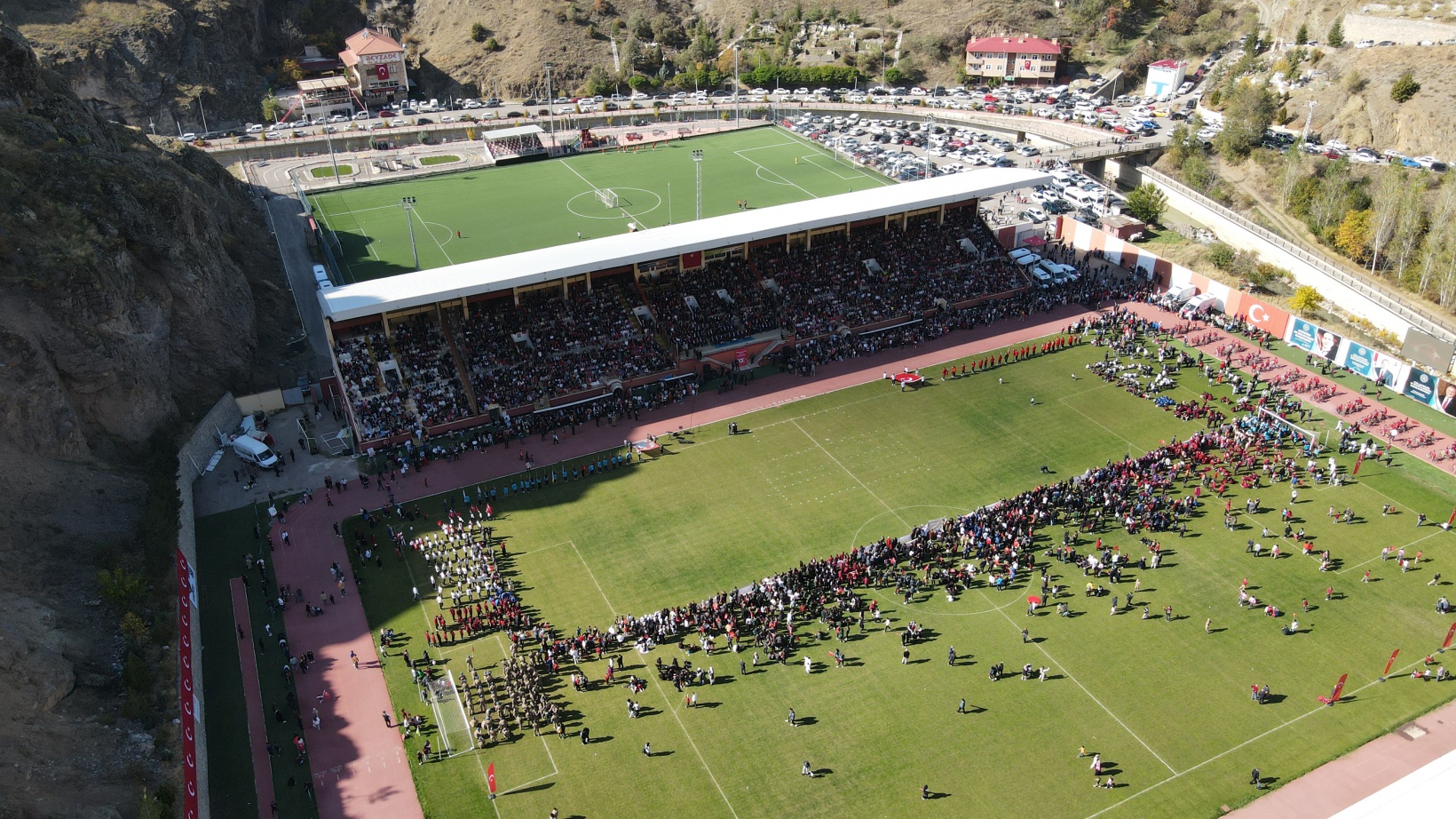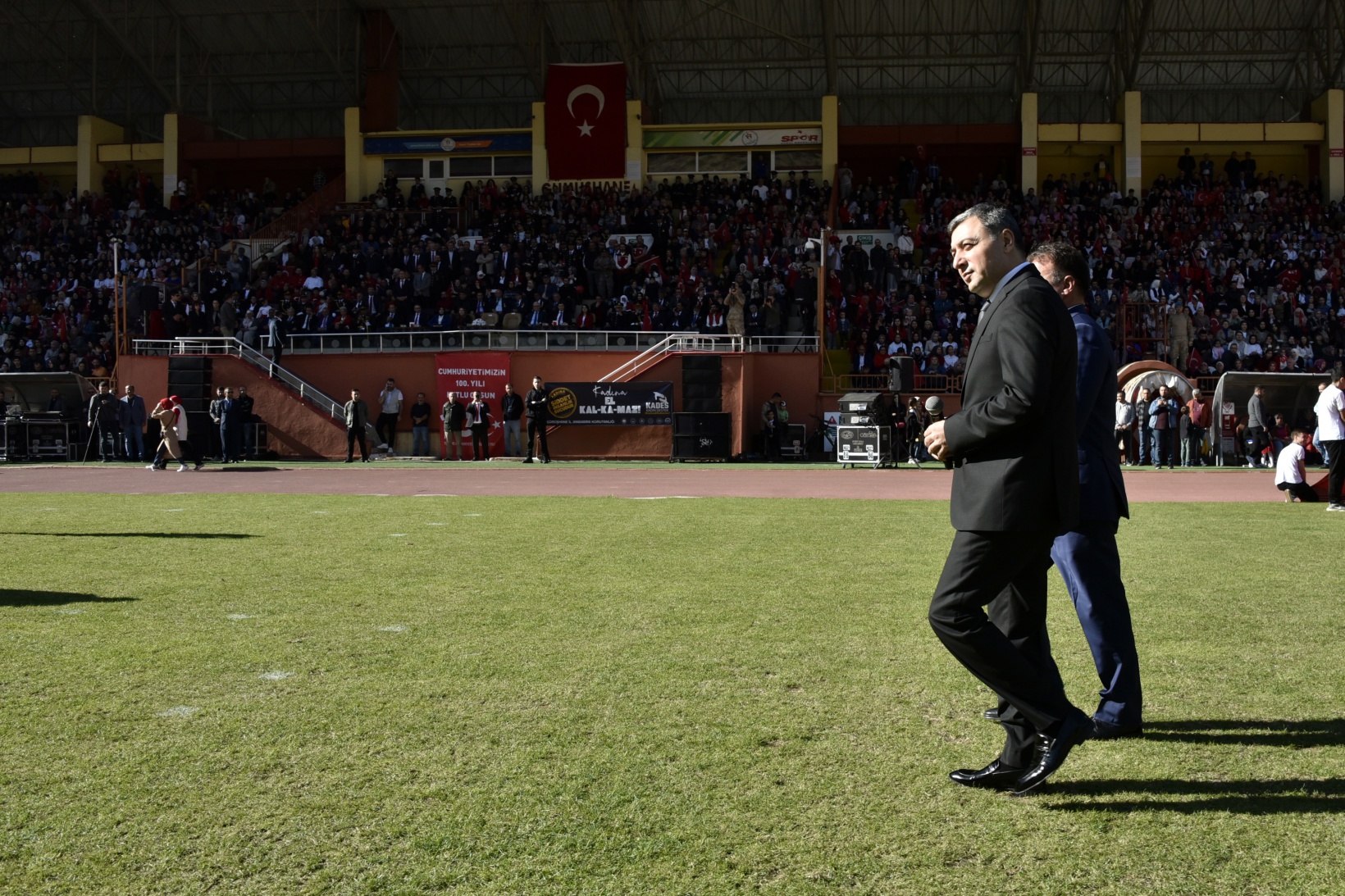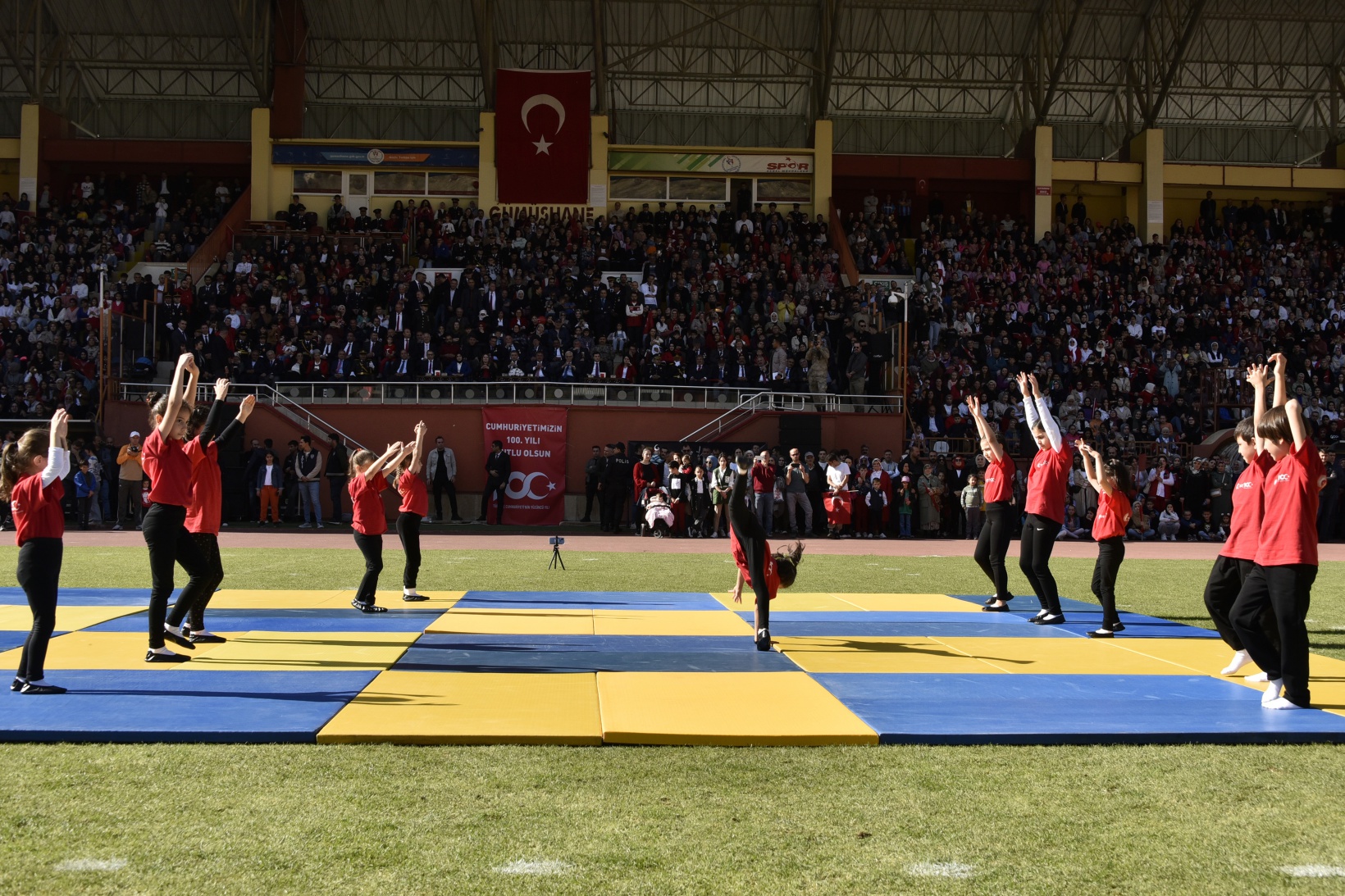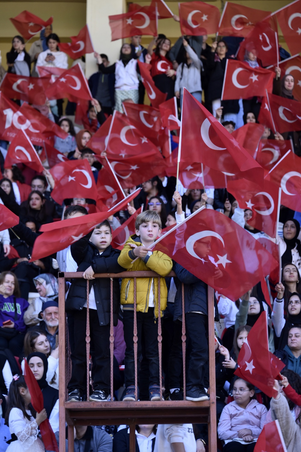 Burada öğrencileri ve stadı dolduran vatandaşları selamlayan Vali Tanrısever, öğrenciler ve vatandaşların 29 Ekim Cumhuriyet Bayramı’nı kutladı.