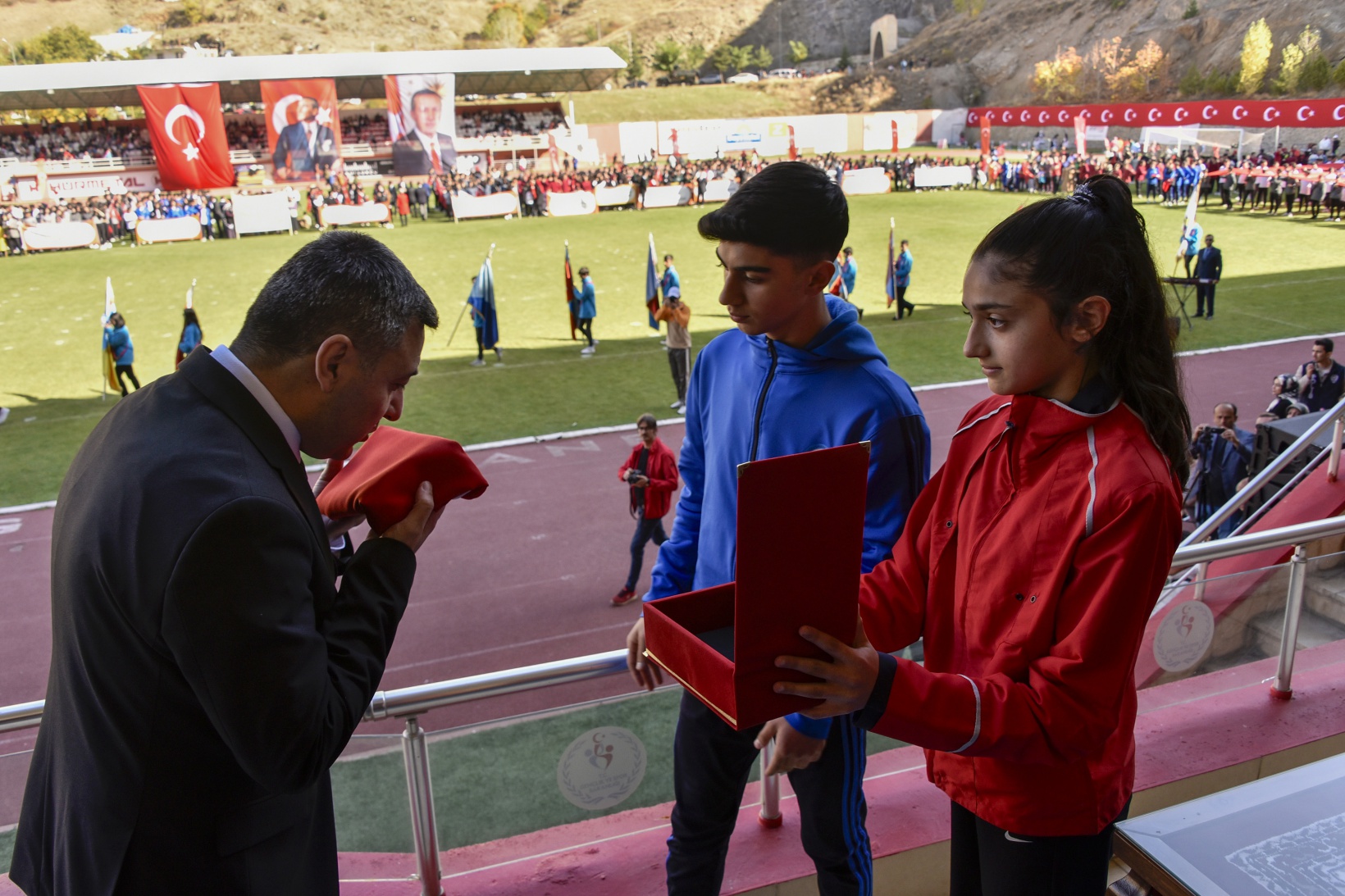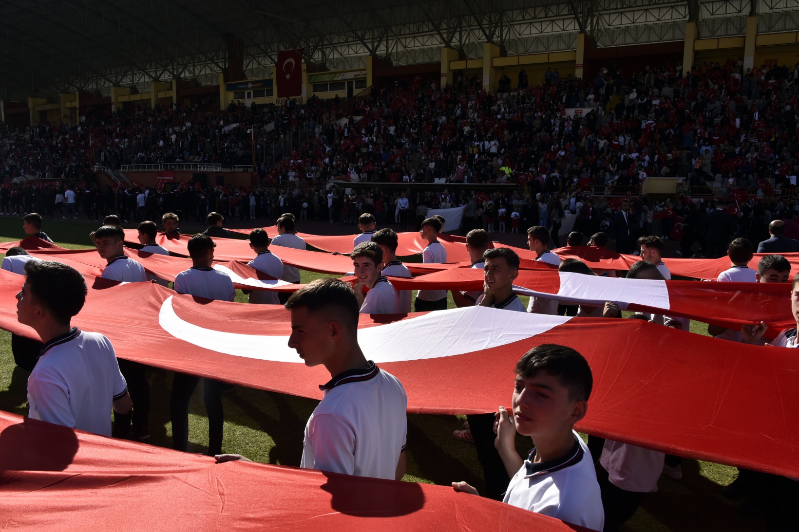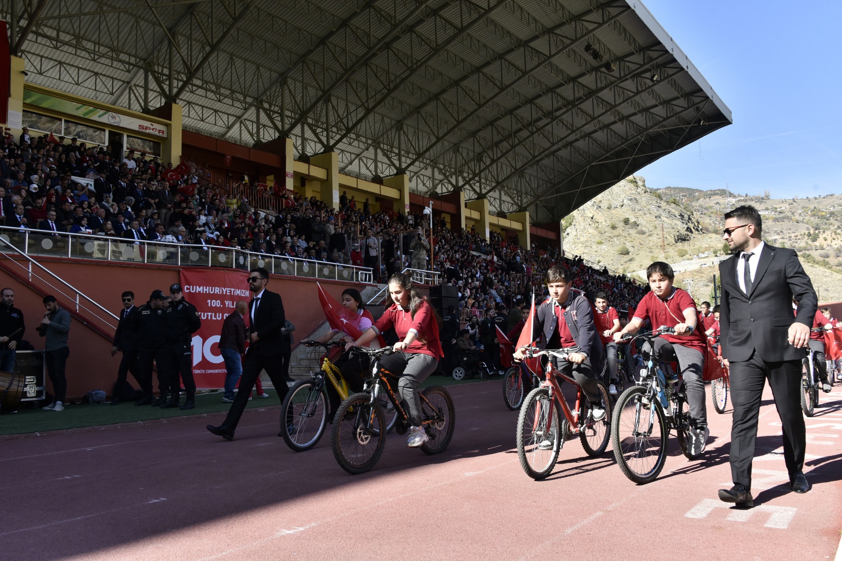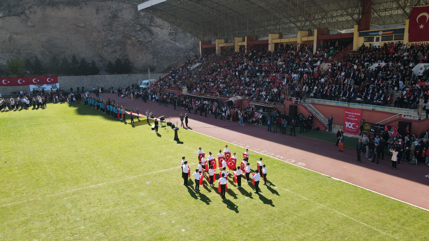 Burada öğrencileri ve stadı dolduran vatandaşları selamlayan Vali Tanrısever, öğrenciler ve vatandaşların 29 Ekim Cumhuriyet Bayramı’nı kutladı.
