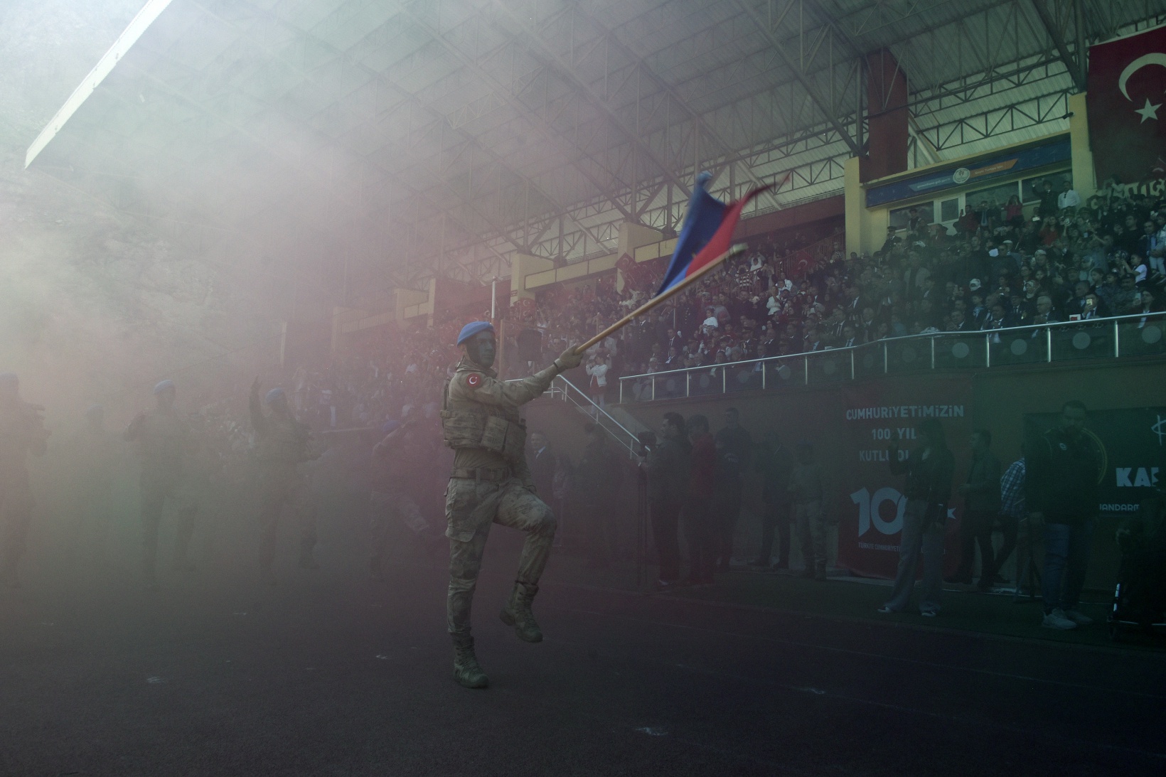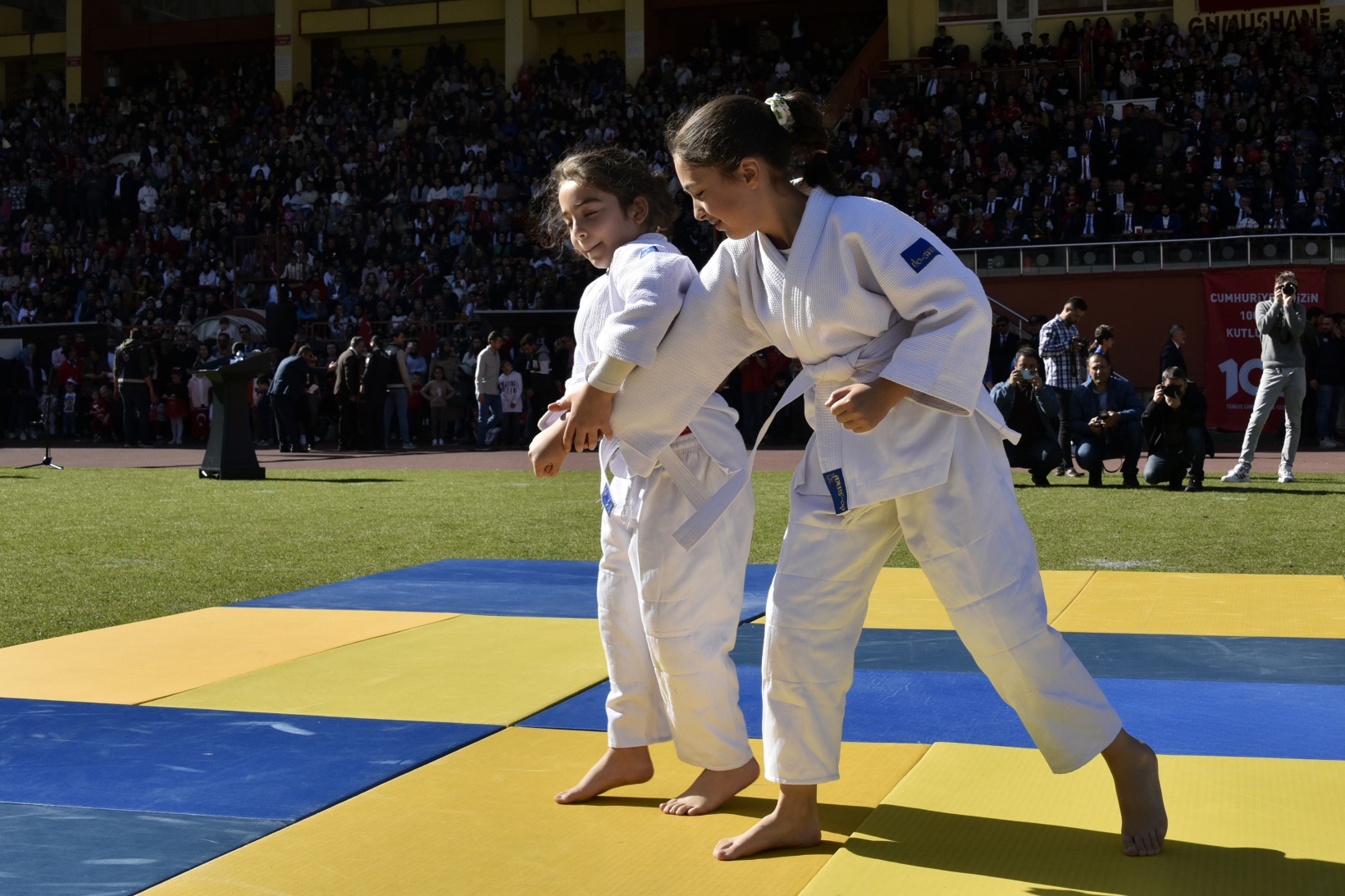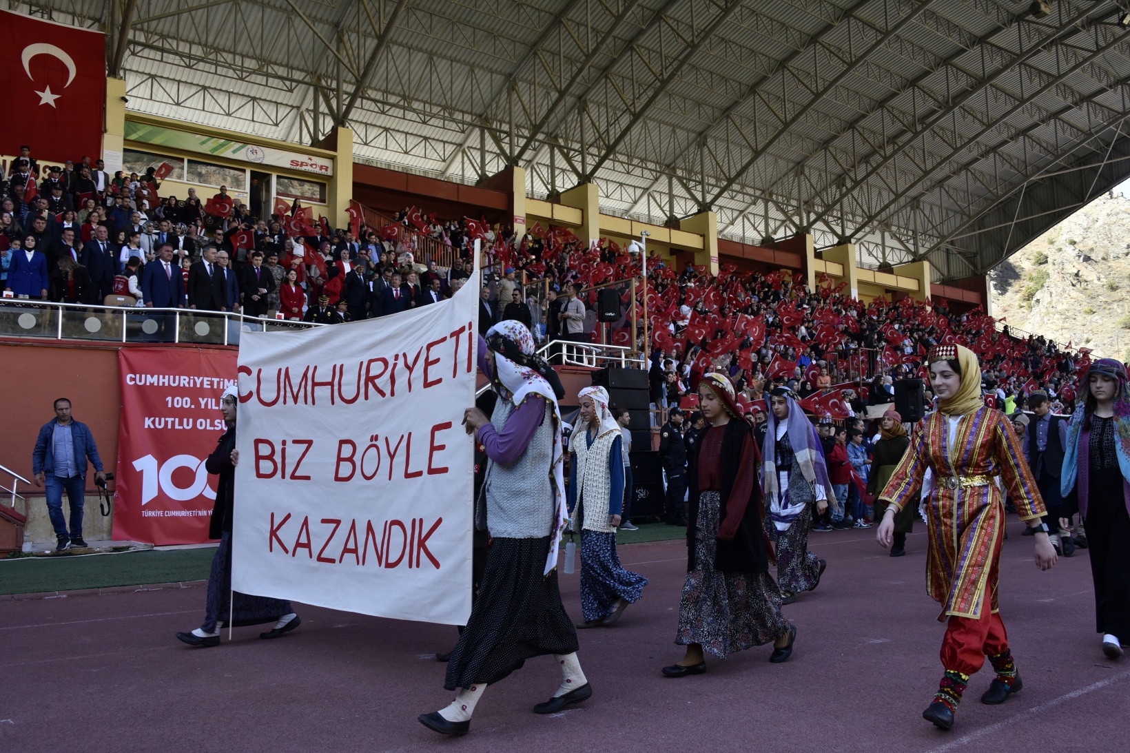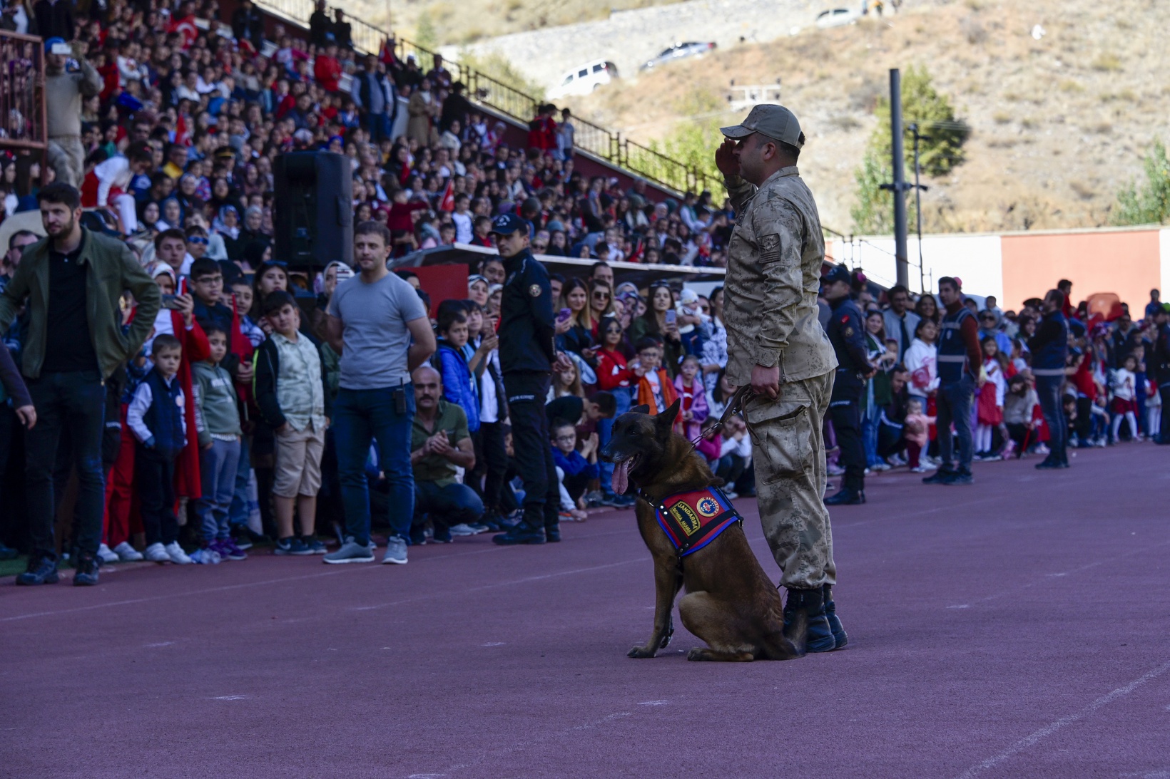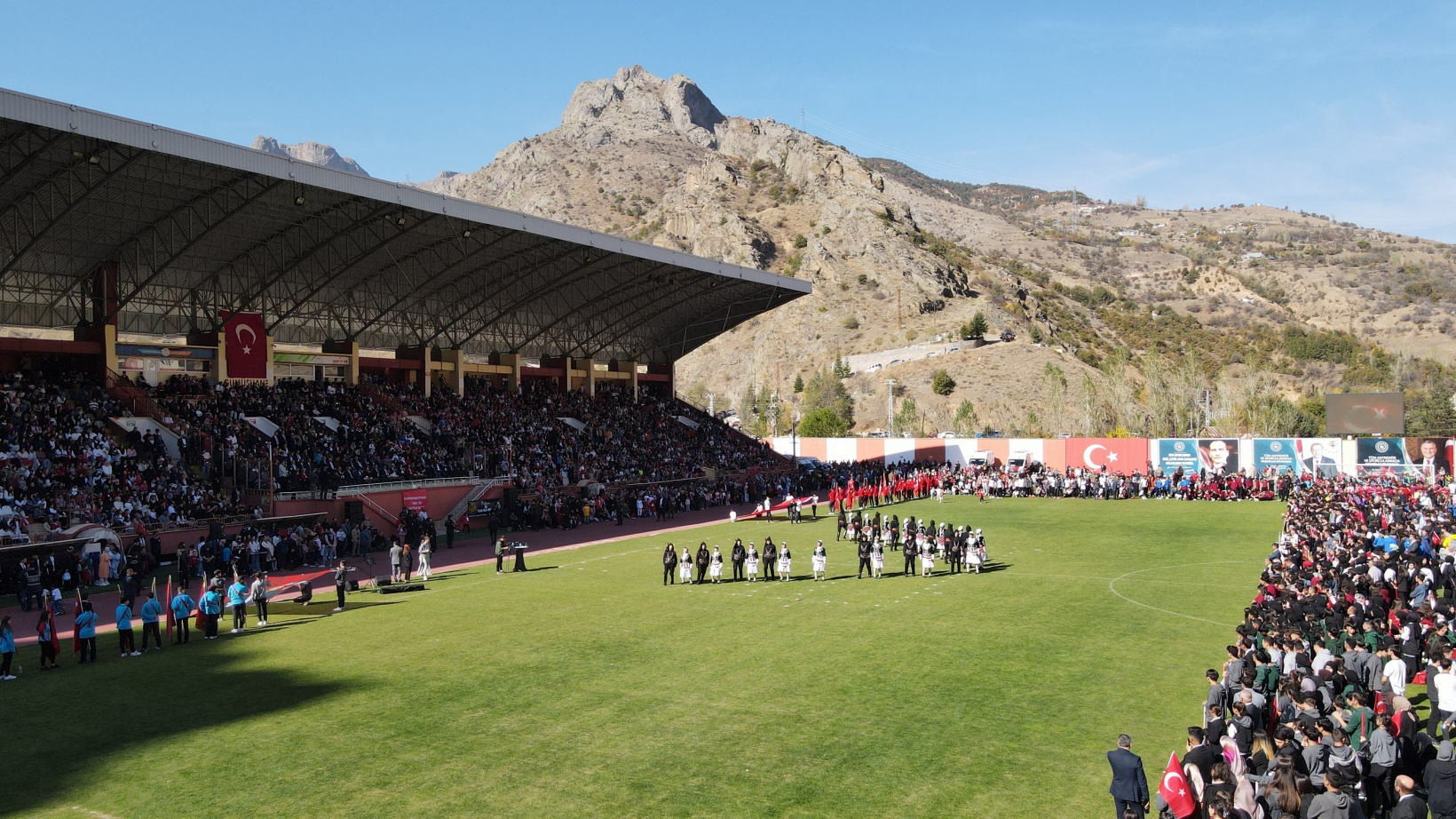 Burada öğrencileri ve stadı dolduran vatandaşları selamlayan Vali Tanrısever, öğrenciler ve vatandaşların 29 Ekim Cumhuriyet Bayramı’nı kutladı.