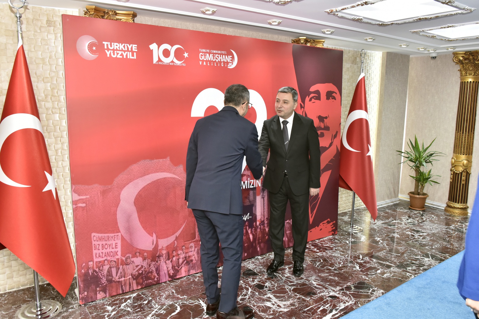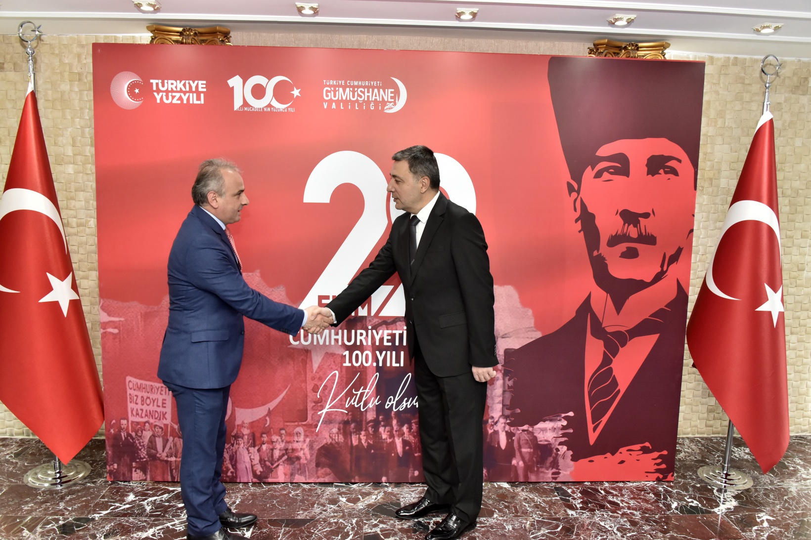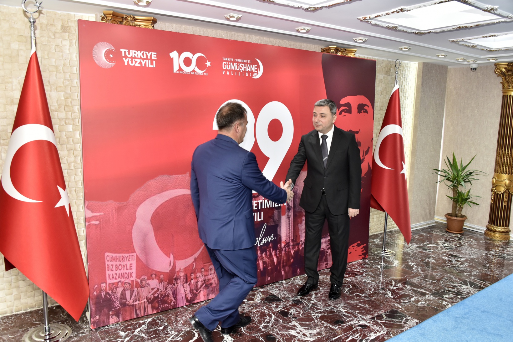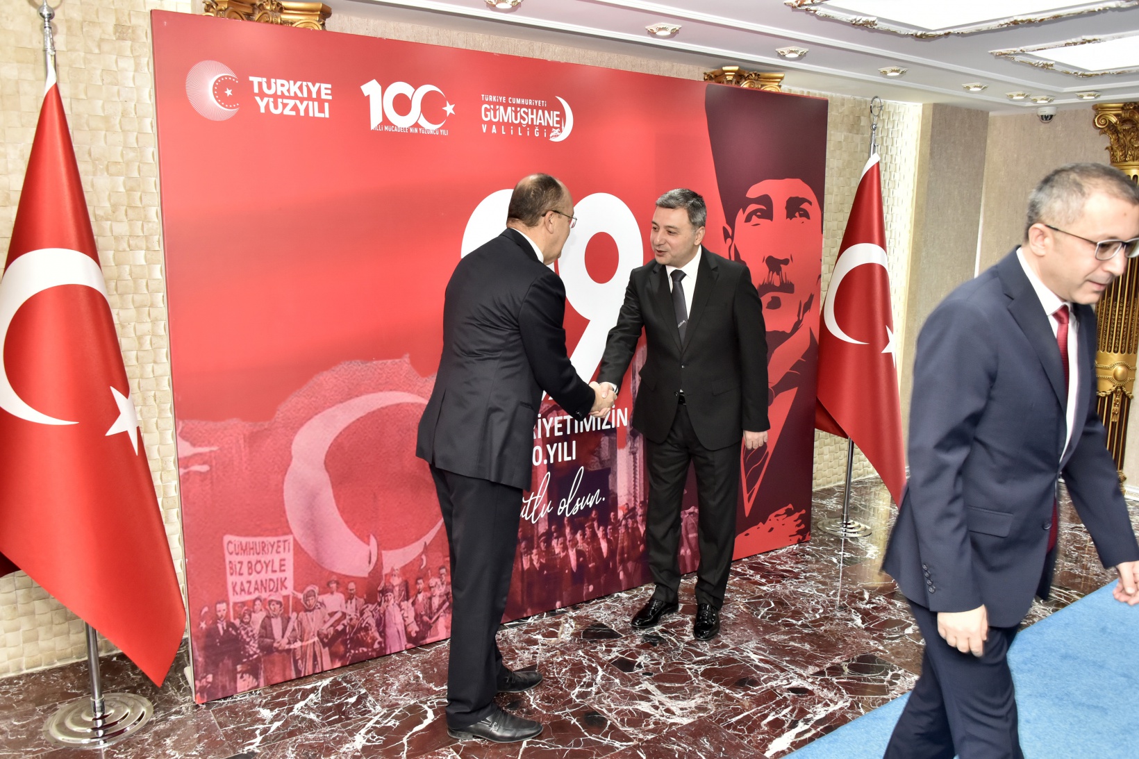 Cumhuriyetin 100. yılı için düzenlenen etkinliklerde ilk olarak Gümüşhane Valisi Alper Tanrısever makamında tebrikleri kabul etti. Vali Tanrısever daha sonra Gümüşhane Belediye Başkanı Ercan Çimen ile Yenişehir Stadyumu’nda gerçekleştirilen kutlama programına katıldı.