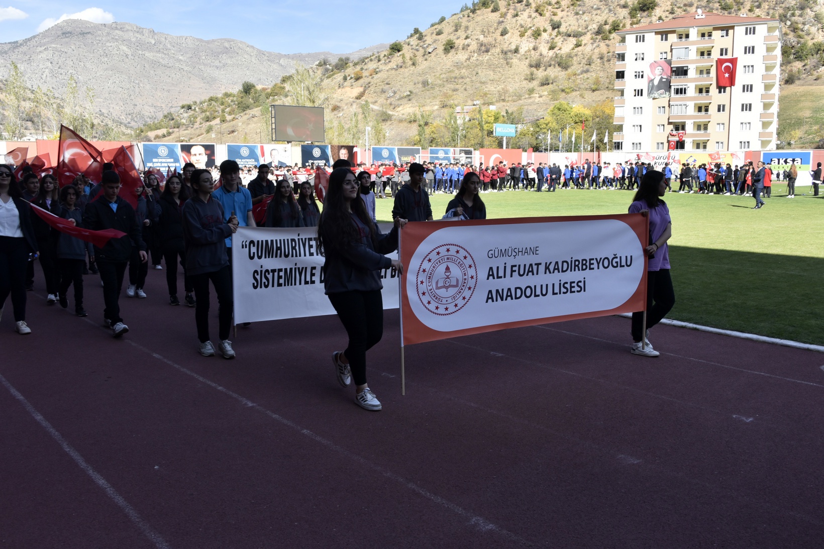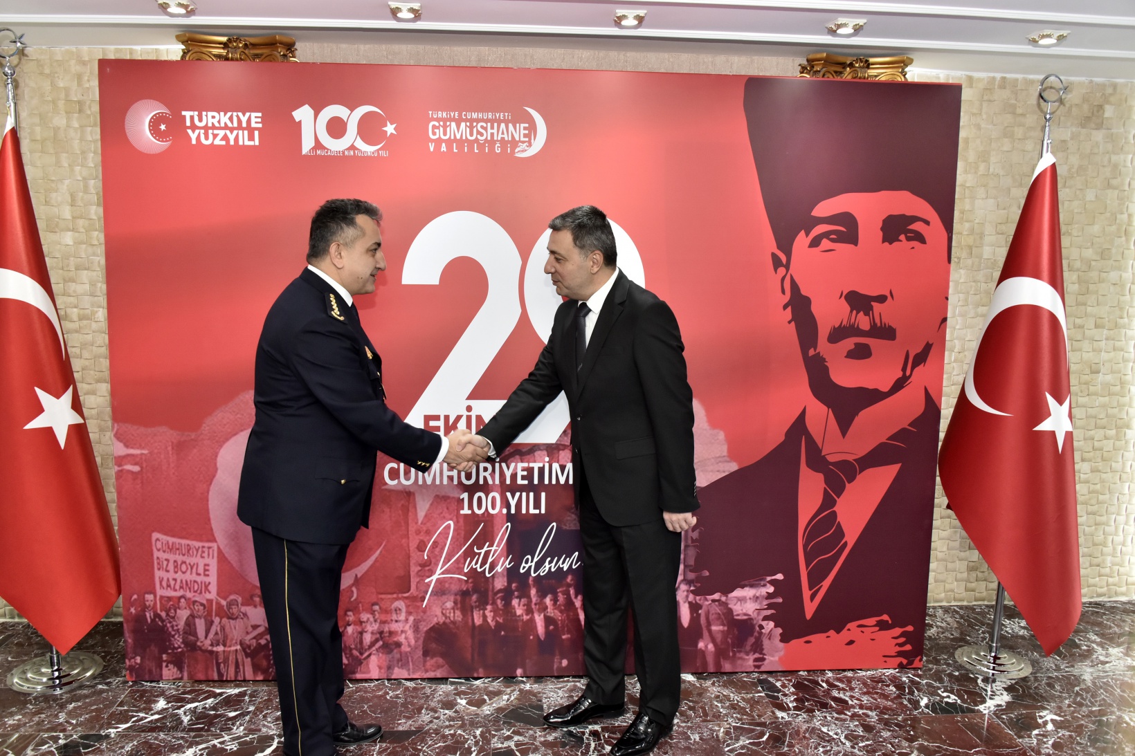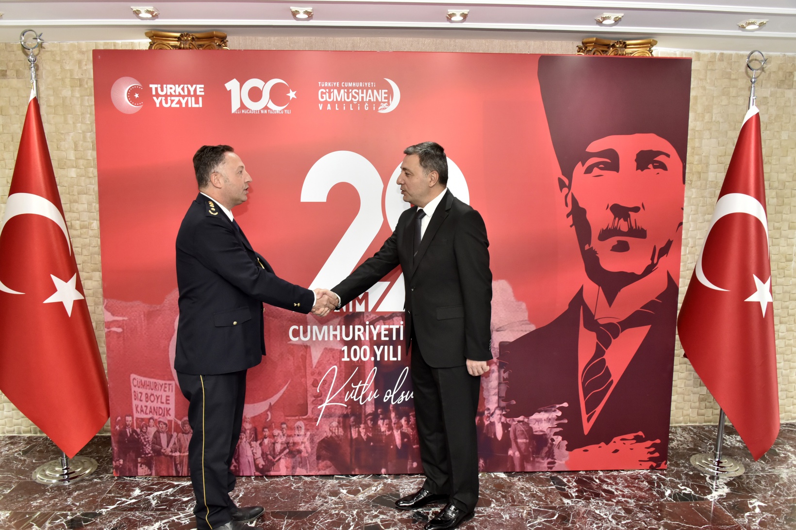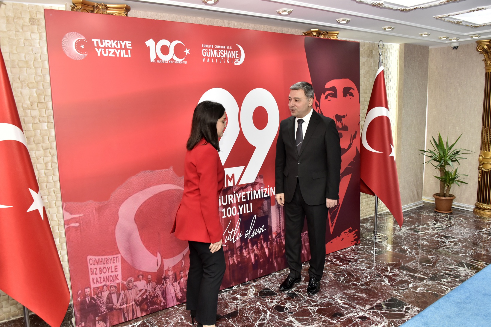Cumhuriyetin 100. yılı için düzenlenen etkinliklerde ilk olarak Gümüşhane Valisi Alper Tanrısever makamında tebrikleri kabul etti. Vali Tanrısever daha sonra Gümüşhane Belediye Başkanı Ercan Çimen ile Yenişehir Stadyumu’nda gerçekleştirilen kutlama programına katıldı.