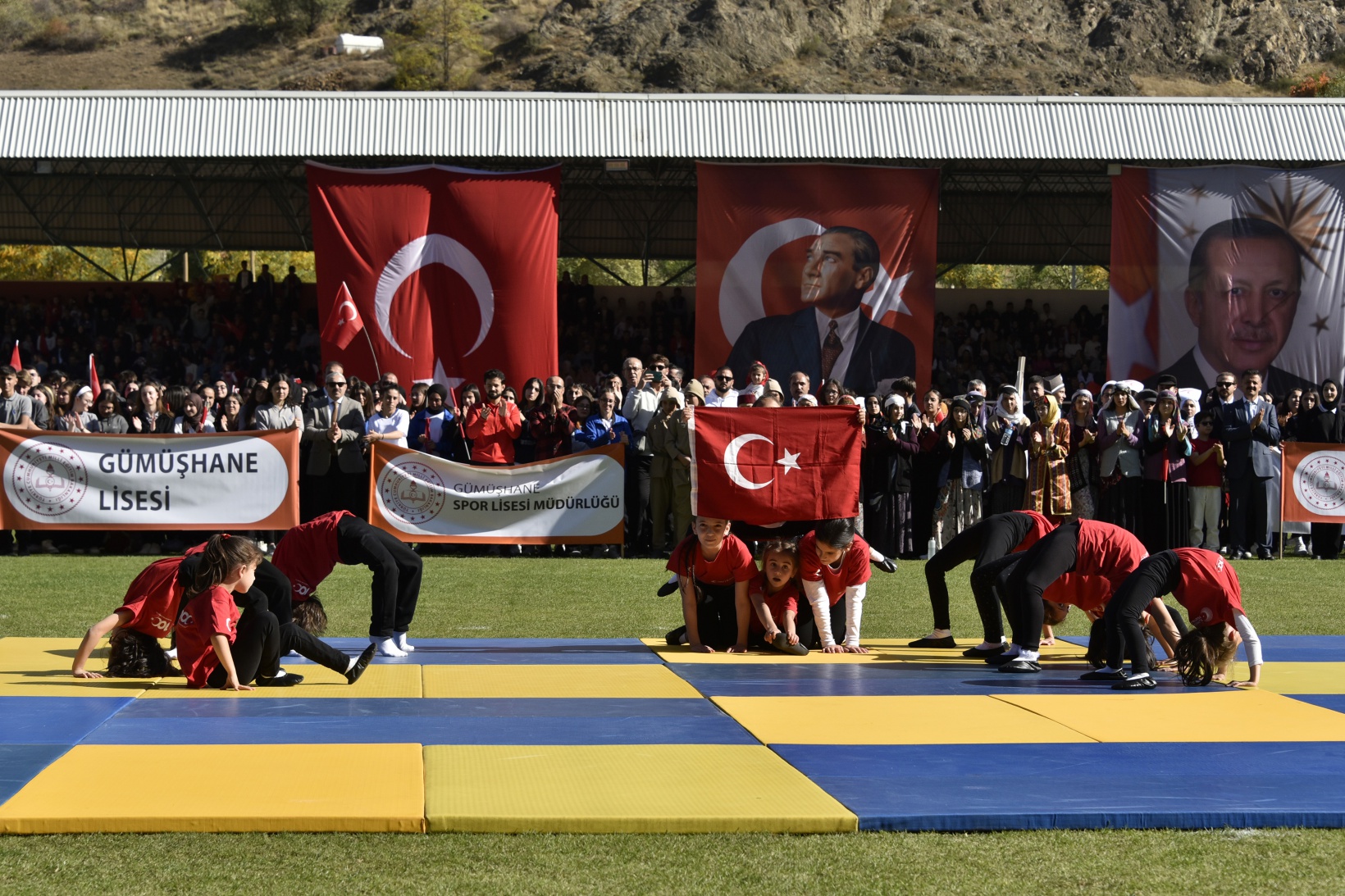 Programın sonunda Cumhuriyet koşusunda dereceye giren öğrenciler tarafından Gümüşhane Valisi Alper Tanrısever’e Türk bayrağı takdimi yapıldı. Program gerçekleştirilen geçit töreninin ardından sona erdi.