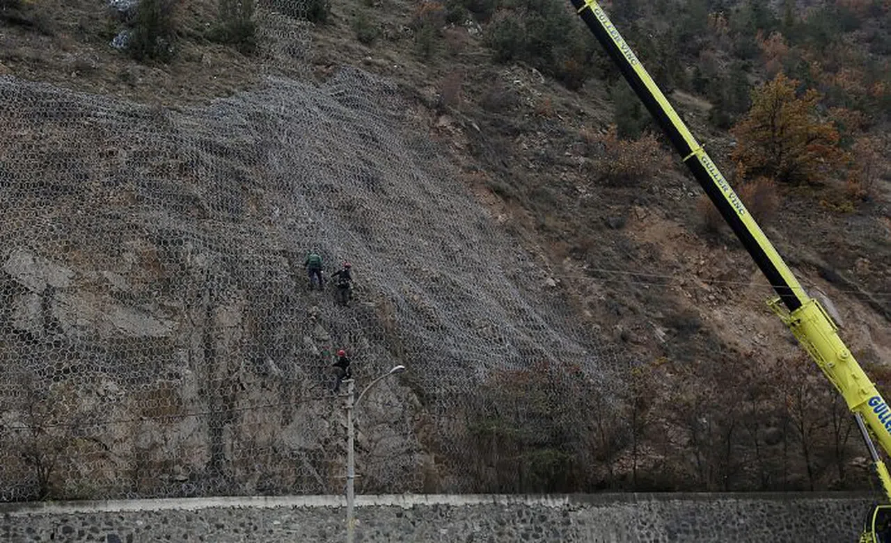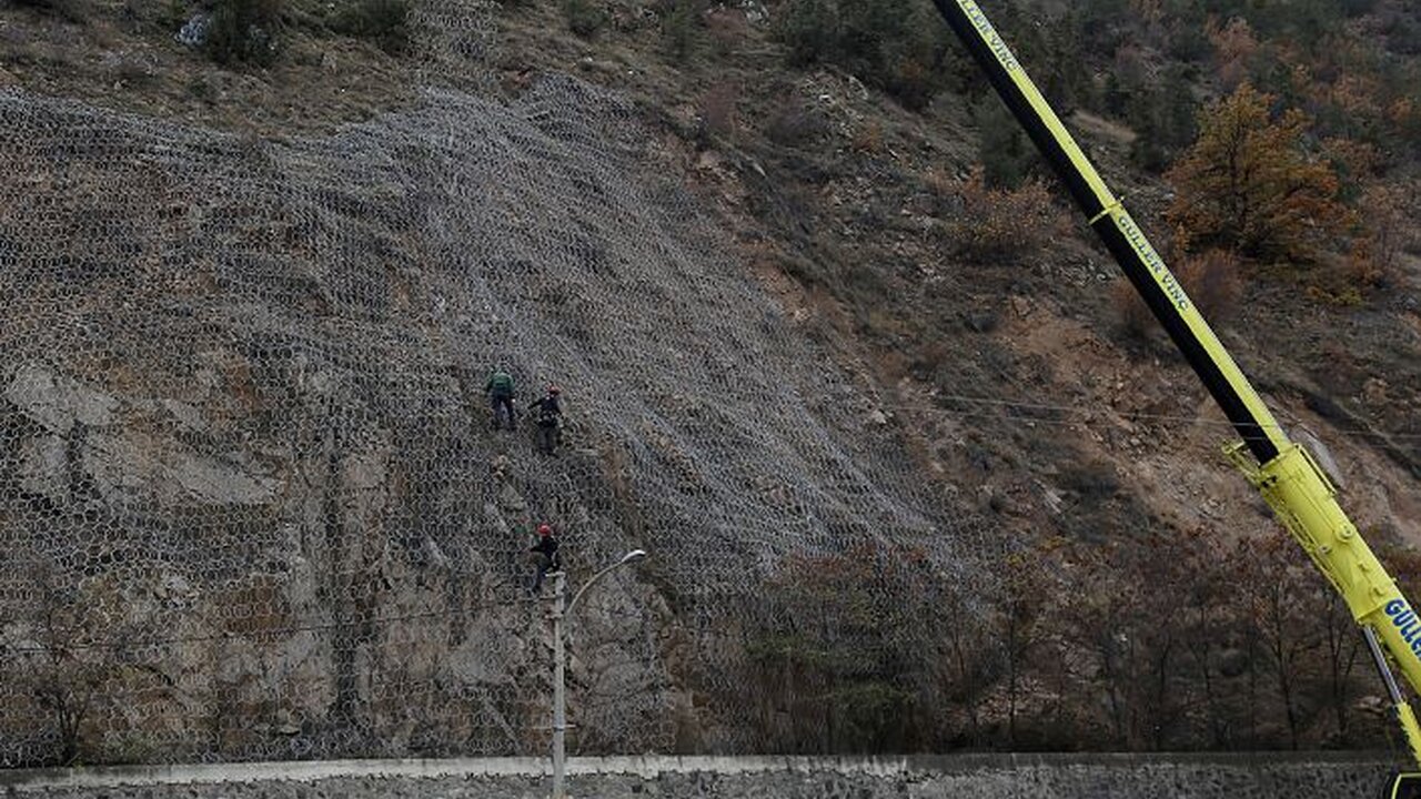 Erzurum-Trabzon karayolunun Gümüşhane şehir geçişinde dağ yamacının bir kilometre uzunluğundaki riskli alanı tel kafese alınıyor. Önceki yıllarda meydana kaya düşmesi sonucunda 2 kişinin yaralandığı, bir kamu aracının da maddi hasar gördüğü alanda bazı noktalara bariyer de yapılacak.