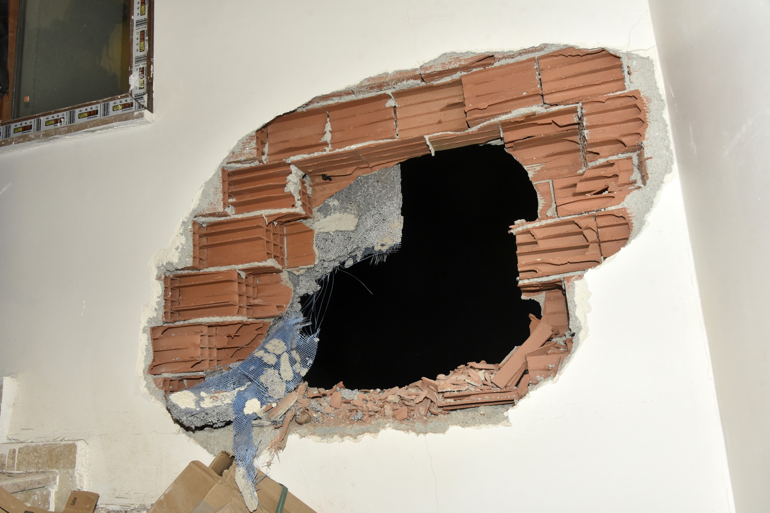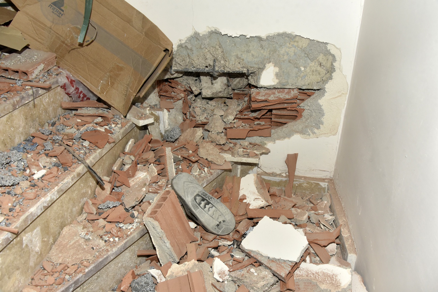 Bazı katlarda küçük yarıklar açan kayalar bir dairenin de açık olan camından odaya girdi. En büyük kaya kütlesinin yangın merdiveni boşluğuna vurarak duvarını yıktığı olayın ardından bölgede Belediye ve İl Afet ve Acil Durum Müdürlüğü ekipleri tarafından incelemelerde bulunuldu.