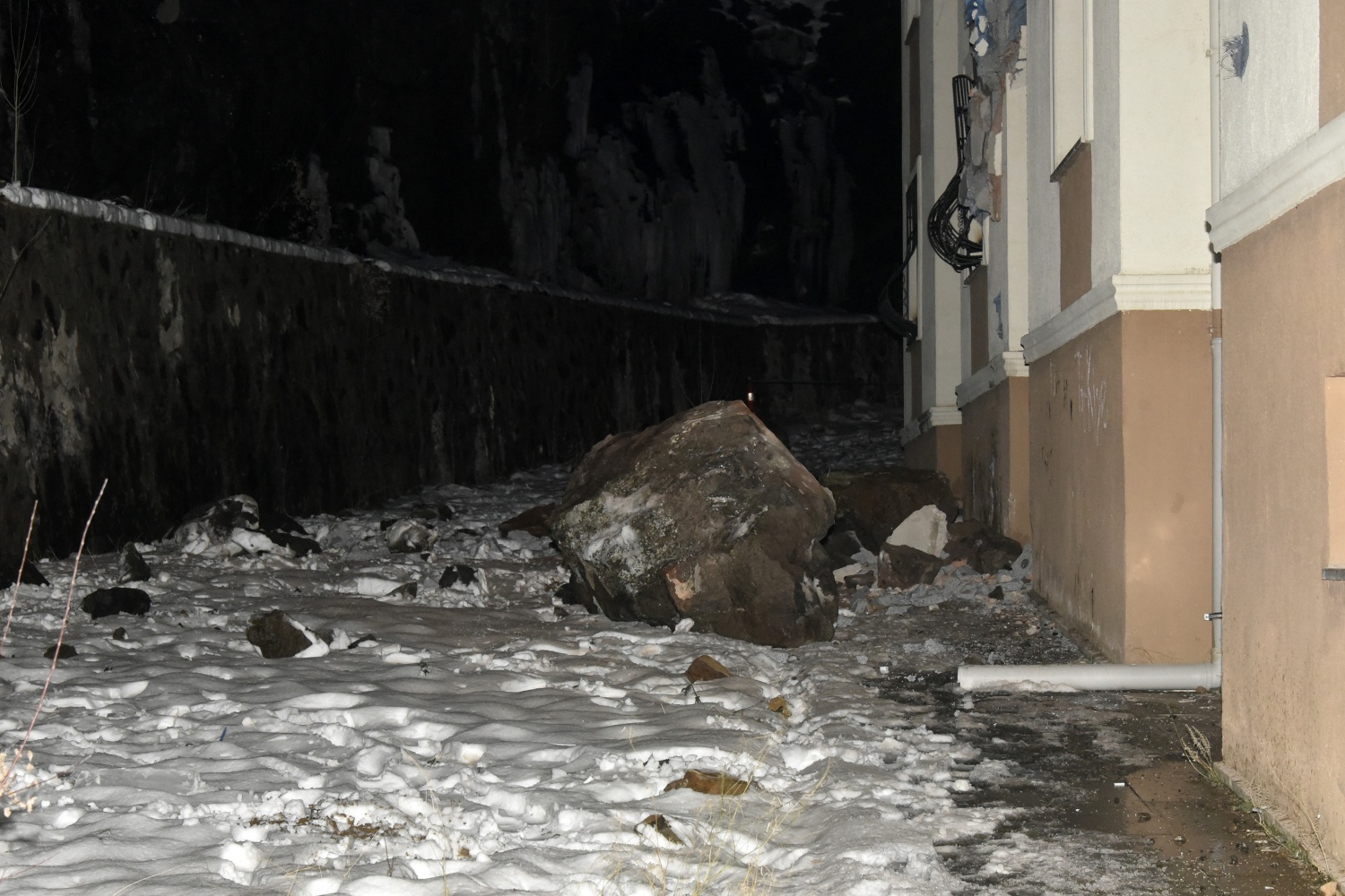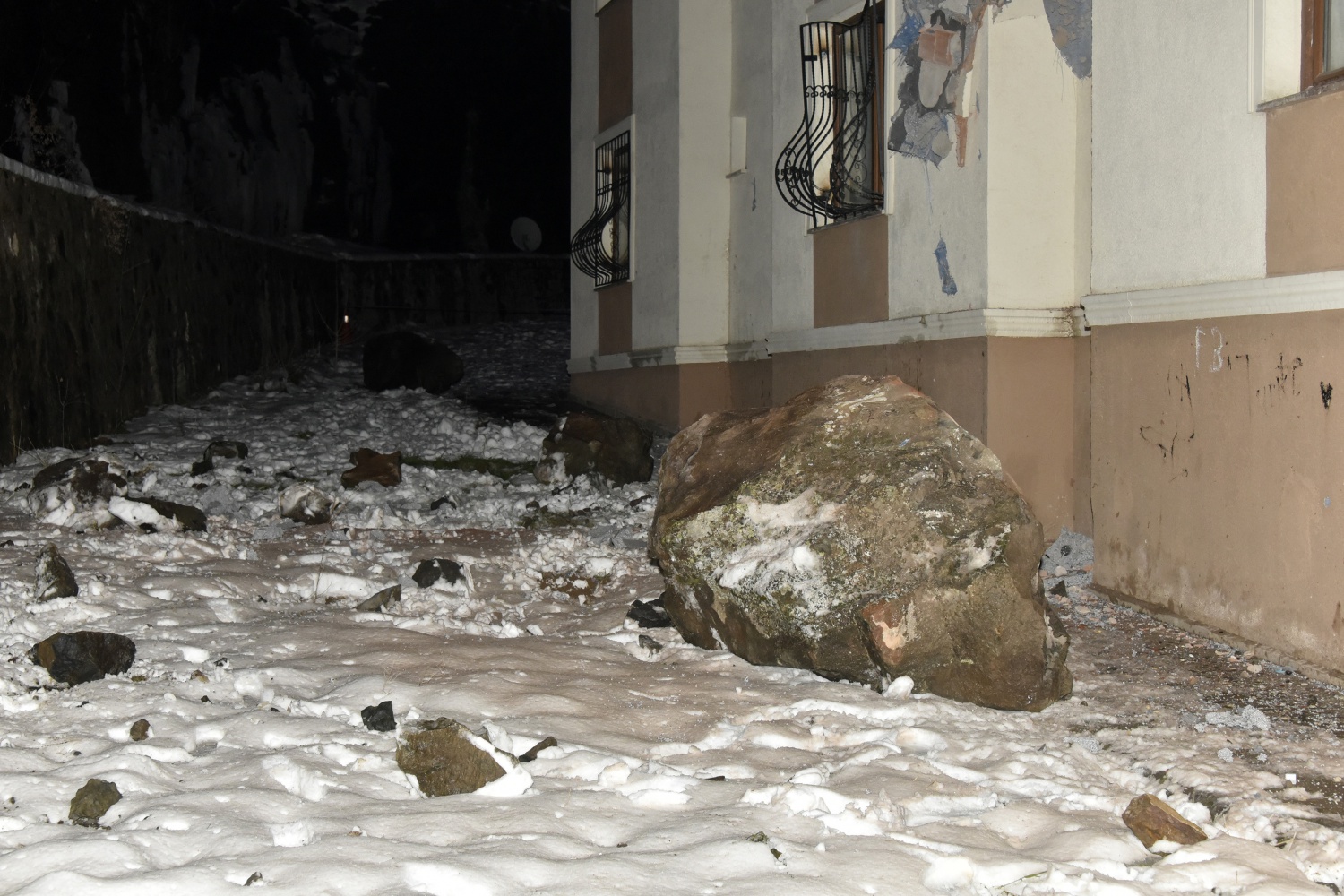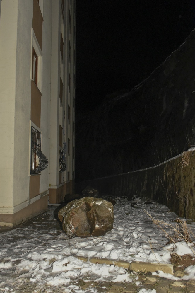 Önceki yıllarda alt caddede gerçekleşen olay bu kez en üst caddede bulunan Müze Evleri Bloklarında meydana geldi. E Bloğun arka cephesinde bulunan dağdan kopan dev kayalar, büyük bir gürültüyle 10 katlı binanın üzerine düştü.