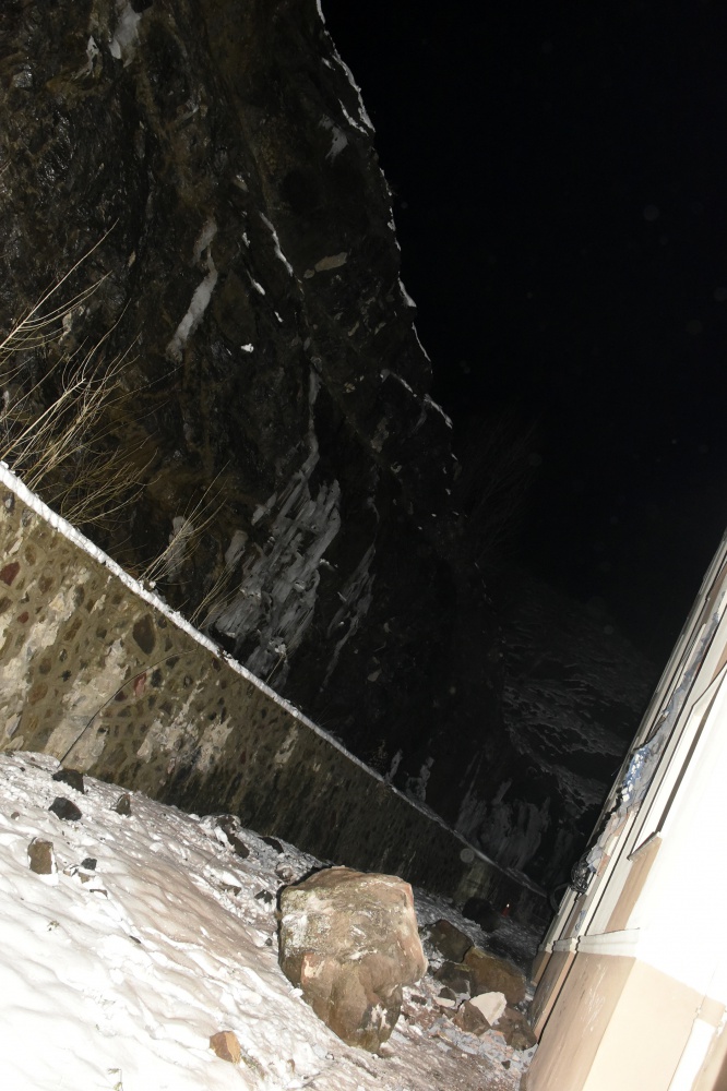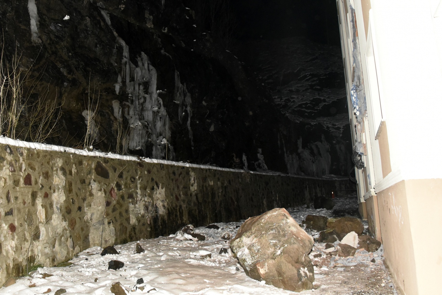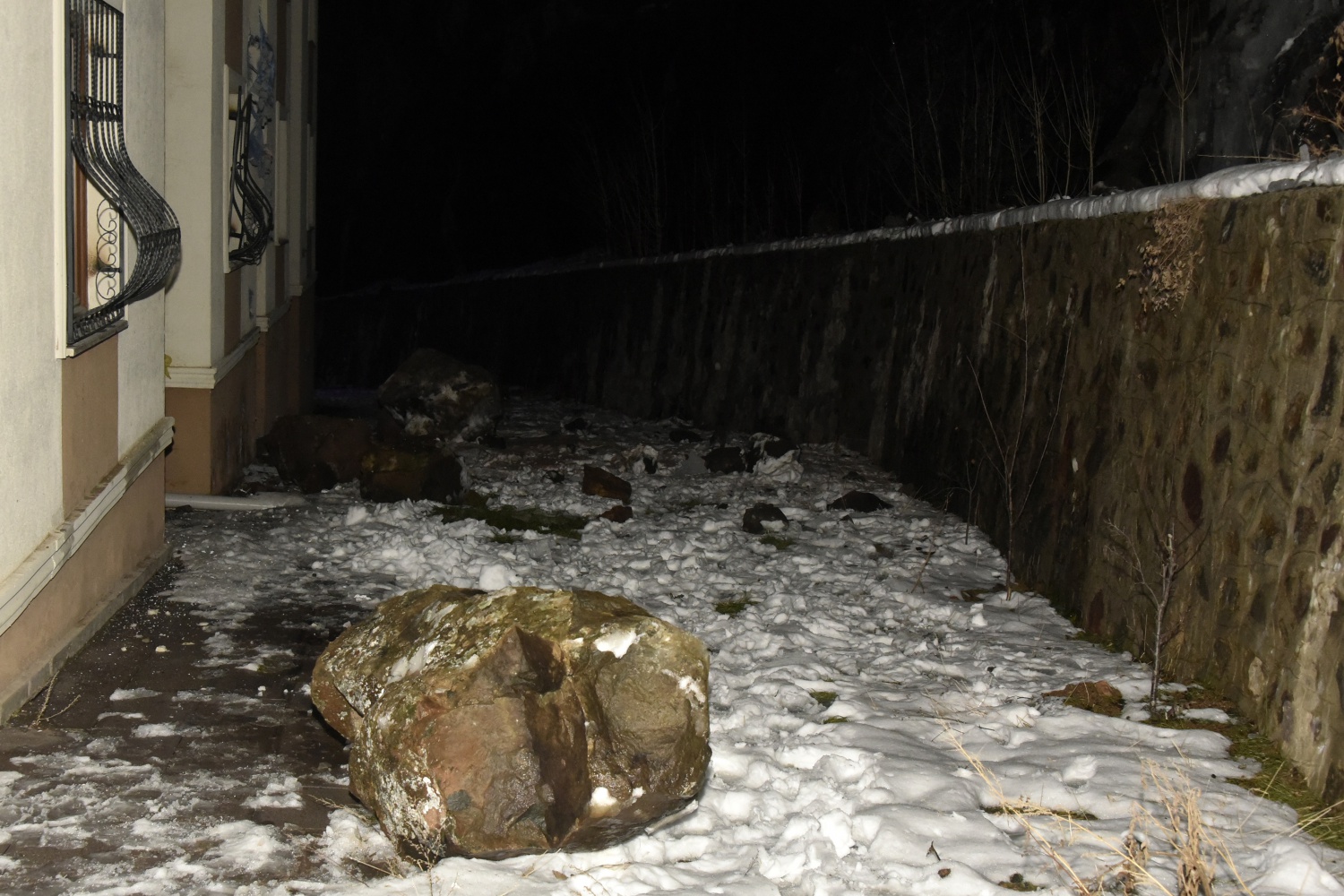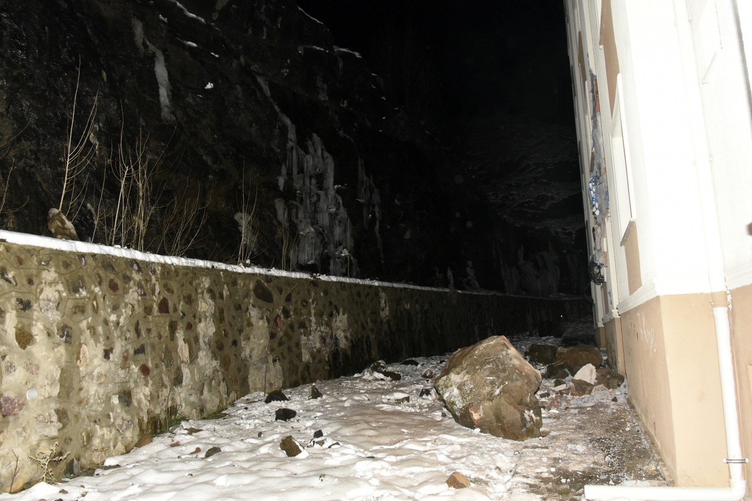 Önceki yıllarda alt caddede gerçekleşen olay bu kez en üst caddede bulunan Müze Evleri Bloklarında meydana geldi. E Bloğun arka cephesinde bulunan dağdan kopan dev kayalar, büyük bir gürültüyle 10 katlı binanın üzerine düştü.