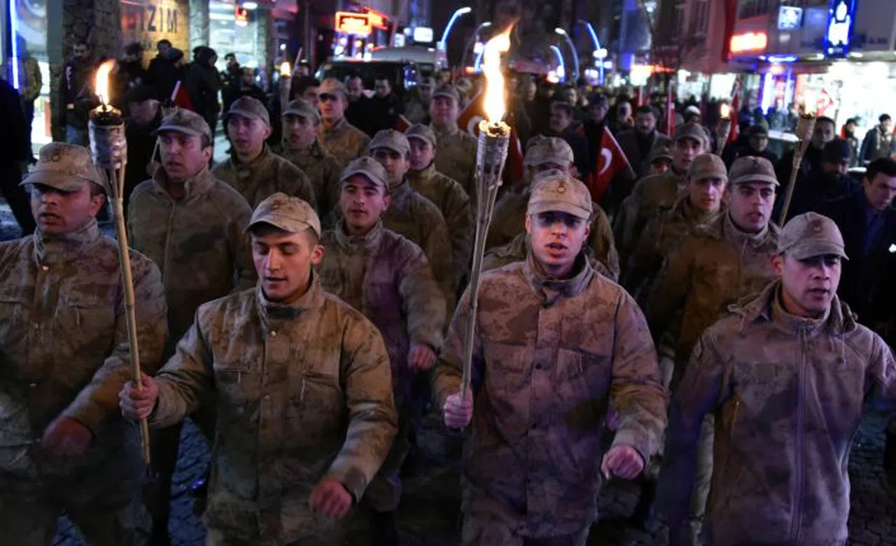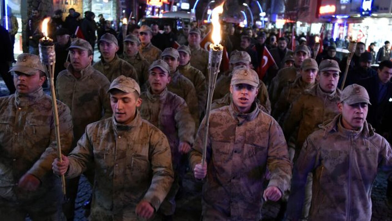 Askerler ve vatandaşların hazır bulunduğu yürüyüşte askerler “Her Türk asker doğar”, “Vatan sana canım feda” sloganları atarken, vatandaşlarda ellerinde taşıdıkları Türk bayraklarını dalgalandırdı.