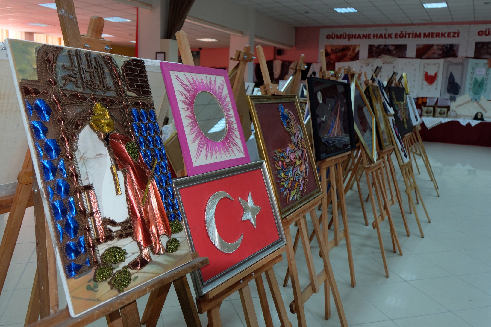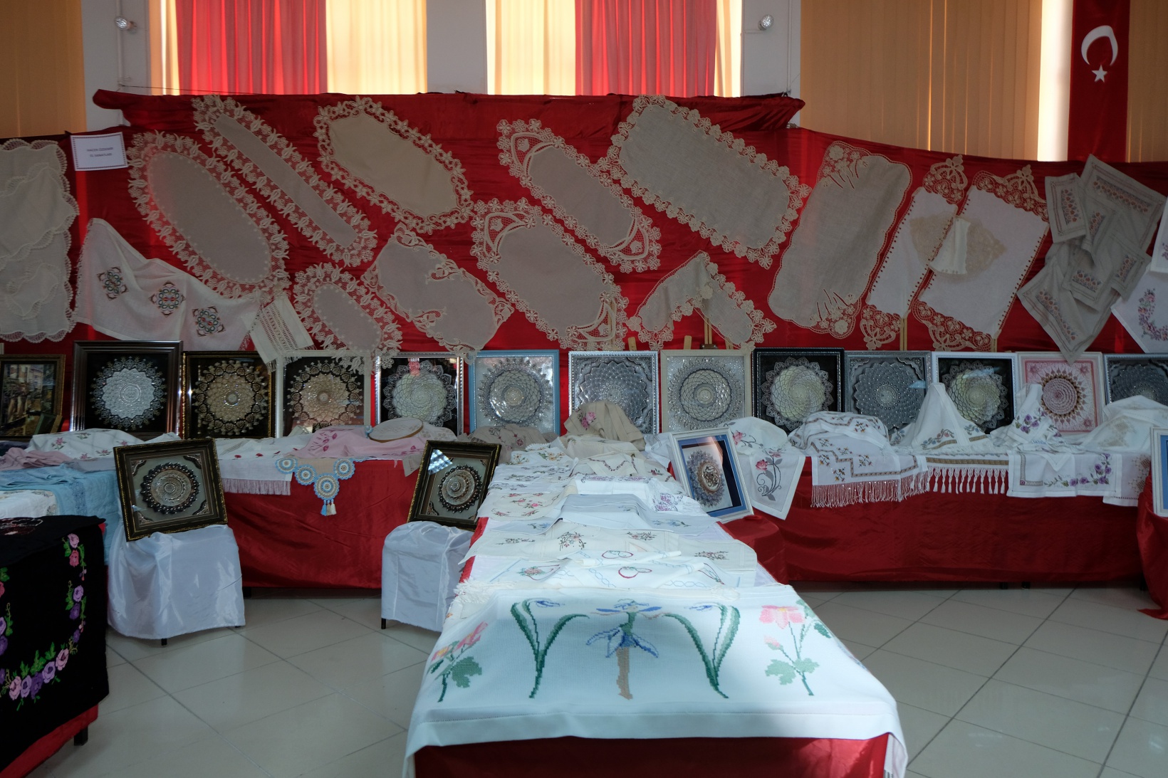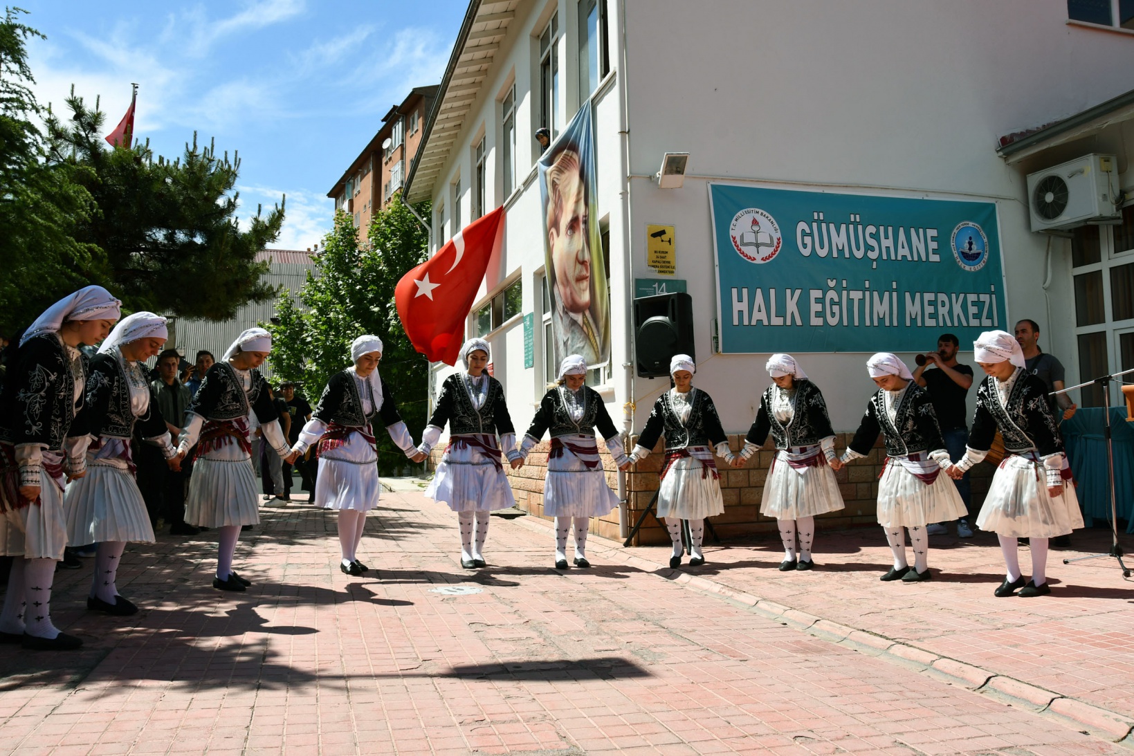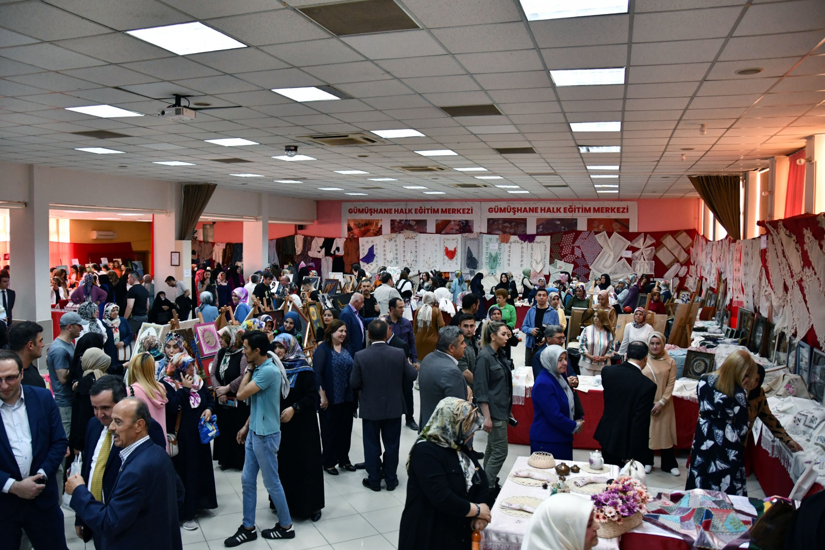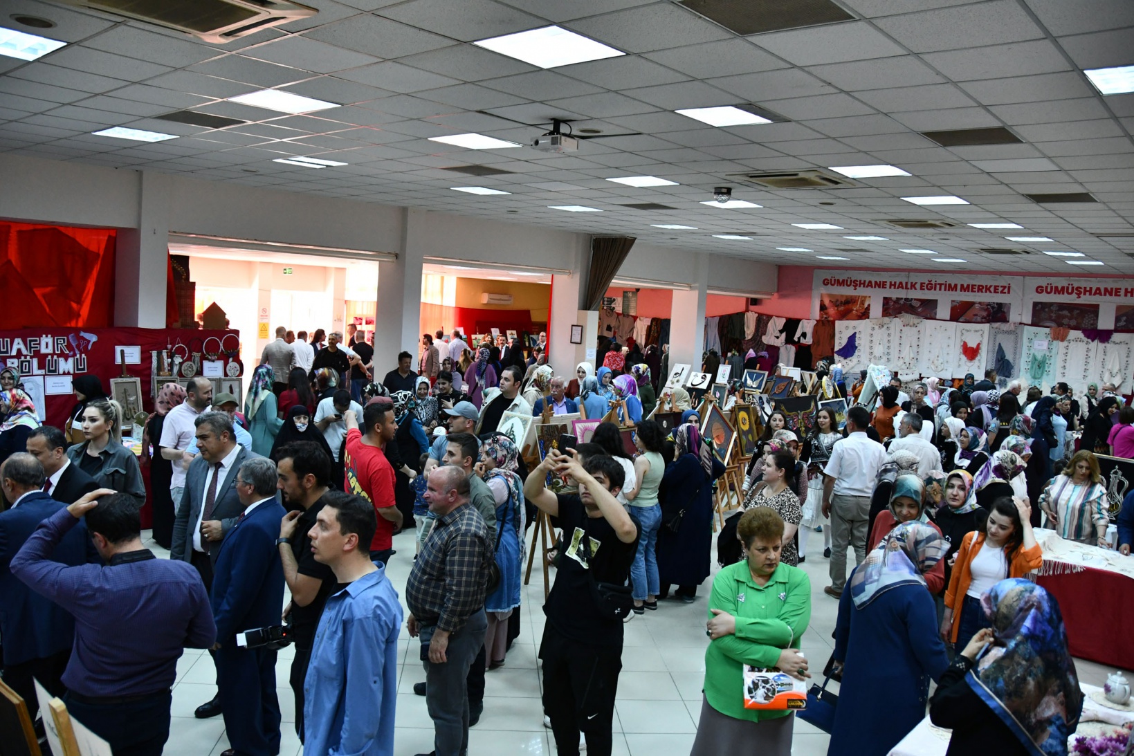 Halk oyunları gösterilerinin ardından makine nakışı, el sanatları, gümüş kilim, giyim, iğne oyası, geleneksel el nakışları, filografi, dekoratif süsleme, hüsn-i hat, gümüş takı işlemeciliği kurslarının ürünlerinden oluşan yılsonu sergisinin açılışı gerçekleştirildi.