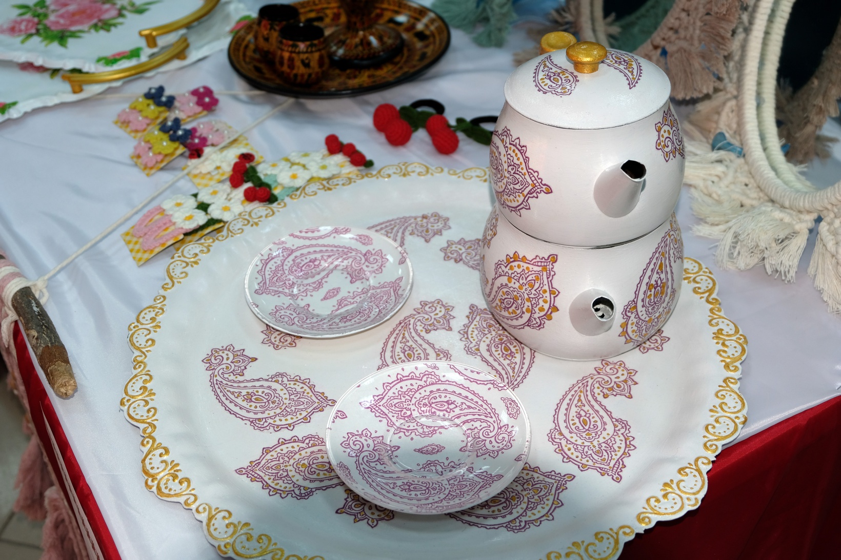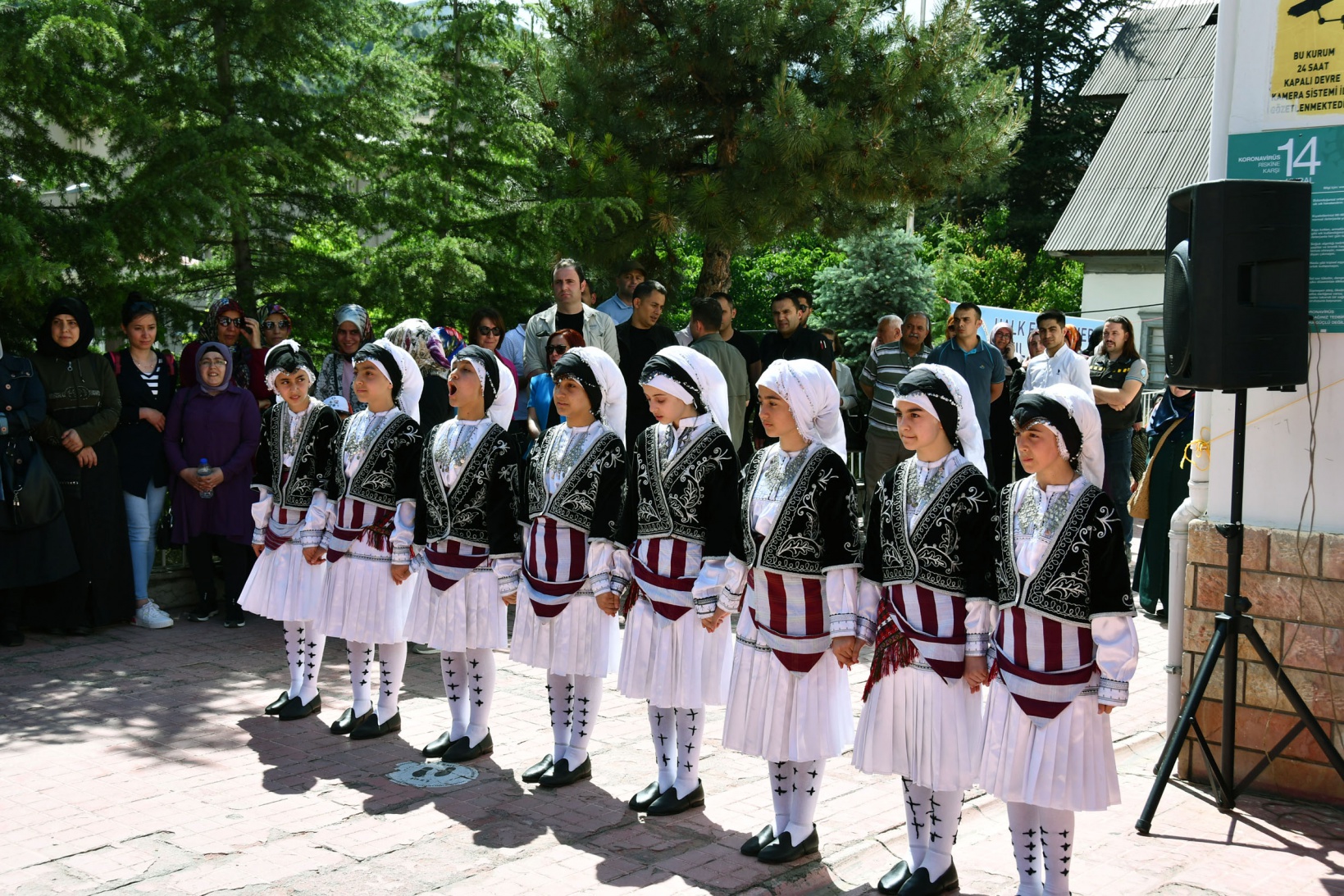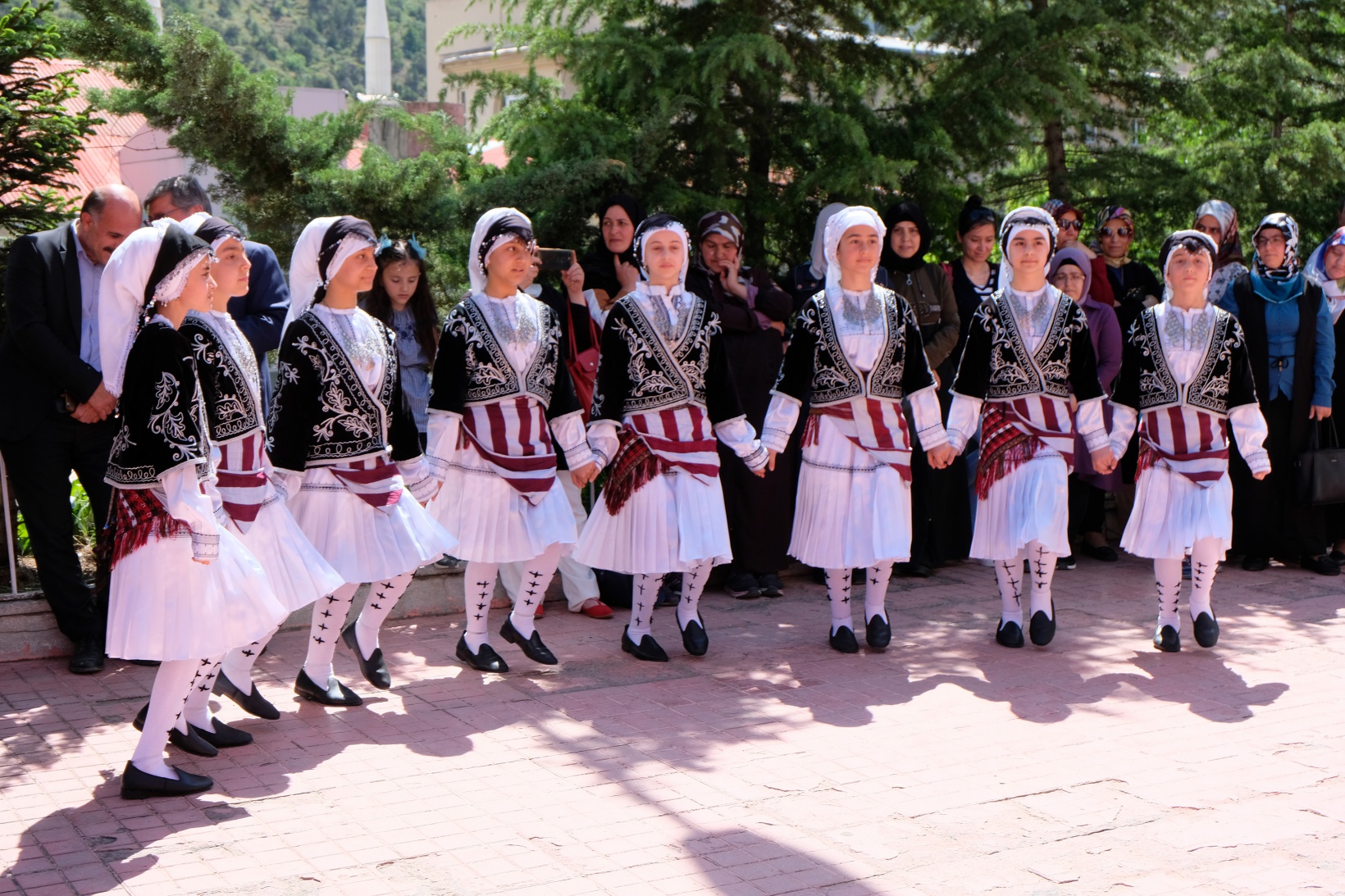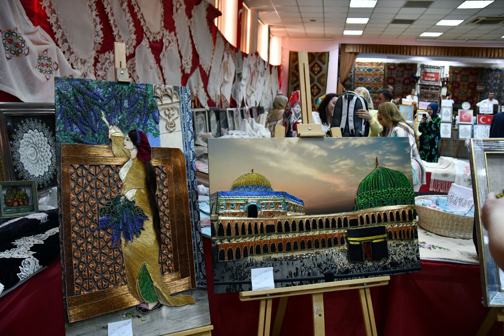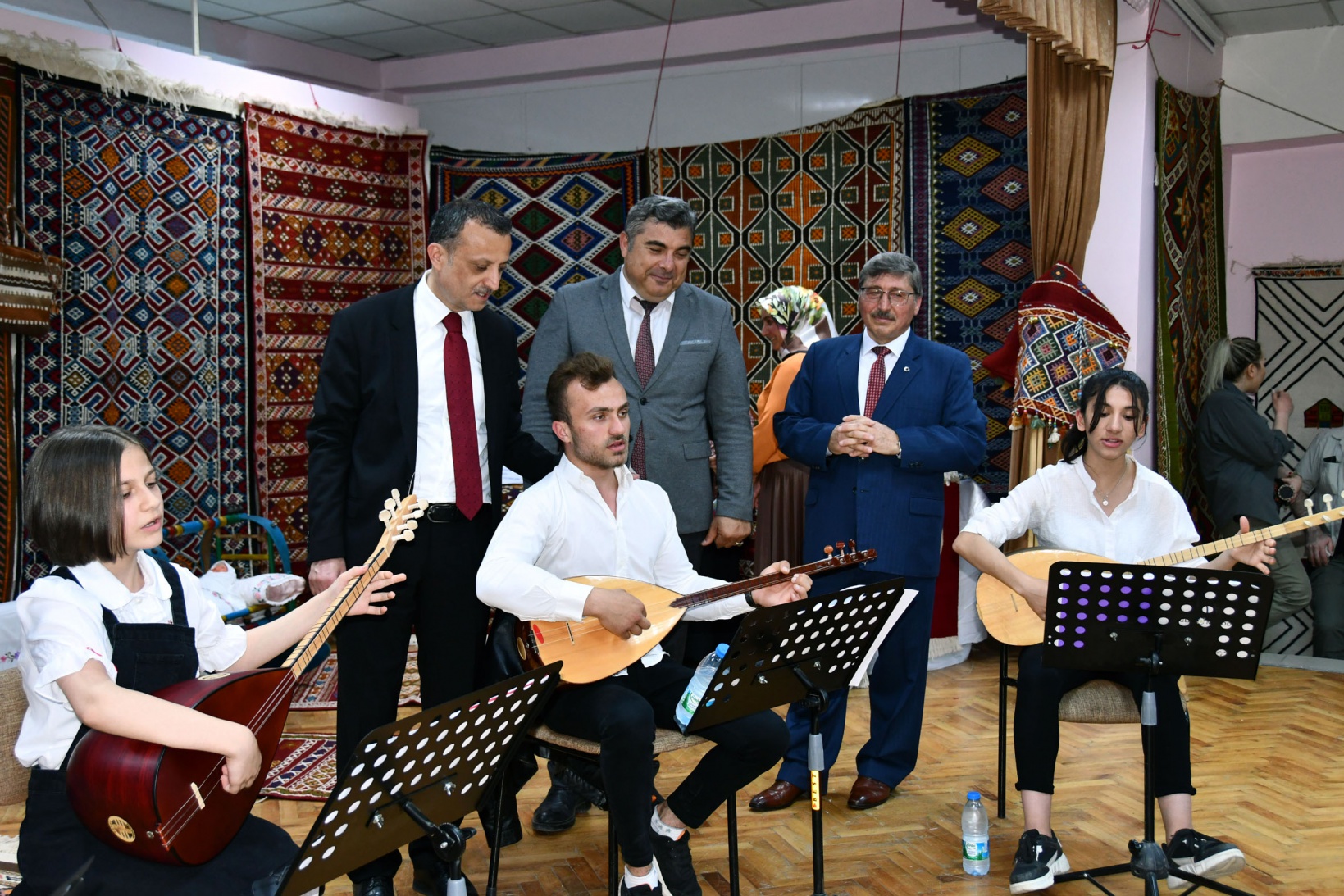 Halk oyunları gösterilerinin ardından makine nakışı, el sanatları, gümüş kilim, giyim, iğne oyası, geleneksel el nakışları, filografi, dekoratif süsleme, hüsn-i hat, gümüş takı işlemeciliği kurslarının ürünlerinden oluşan yılsonu sergisinin açılışı gerçekleştirildi.