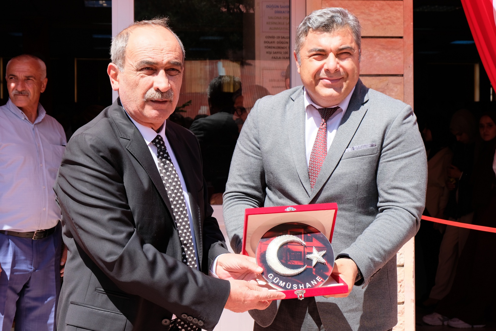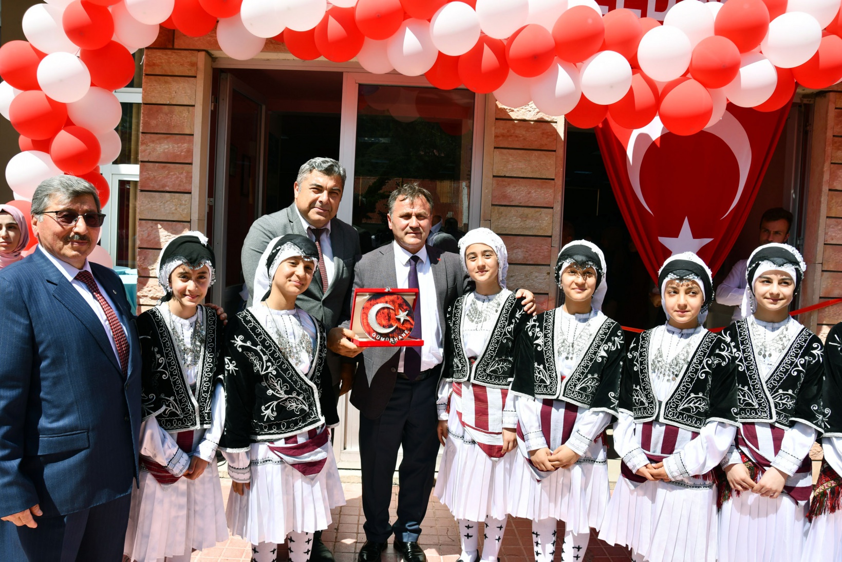 Konuşmaların ardından İl Milli Eğitim Müdürü Miraç Sünnetci, protokol üyelerine Halk -Eğitimi Merkezinde kursiyerler tarafından üretilen ürünlerden oluşan hediye takdim etti.