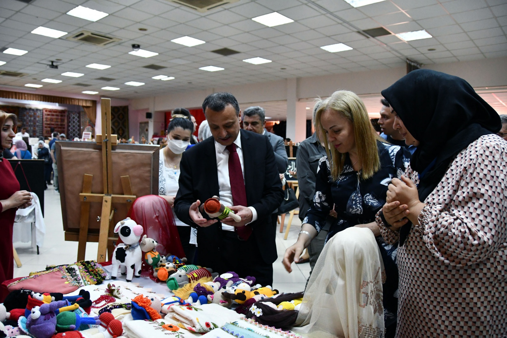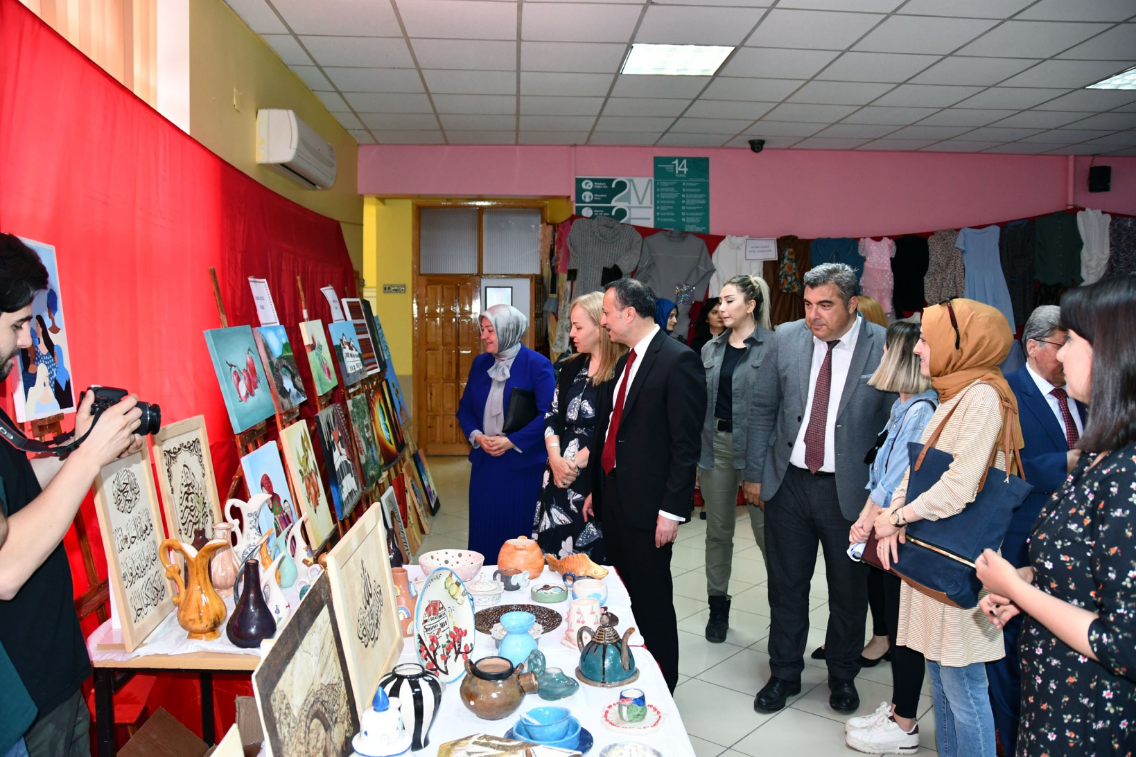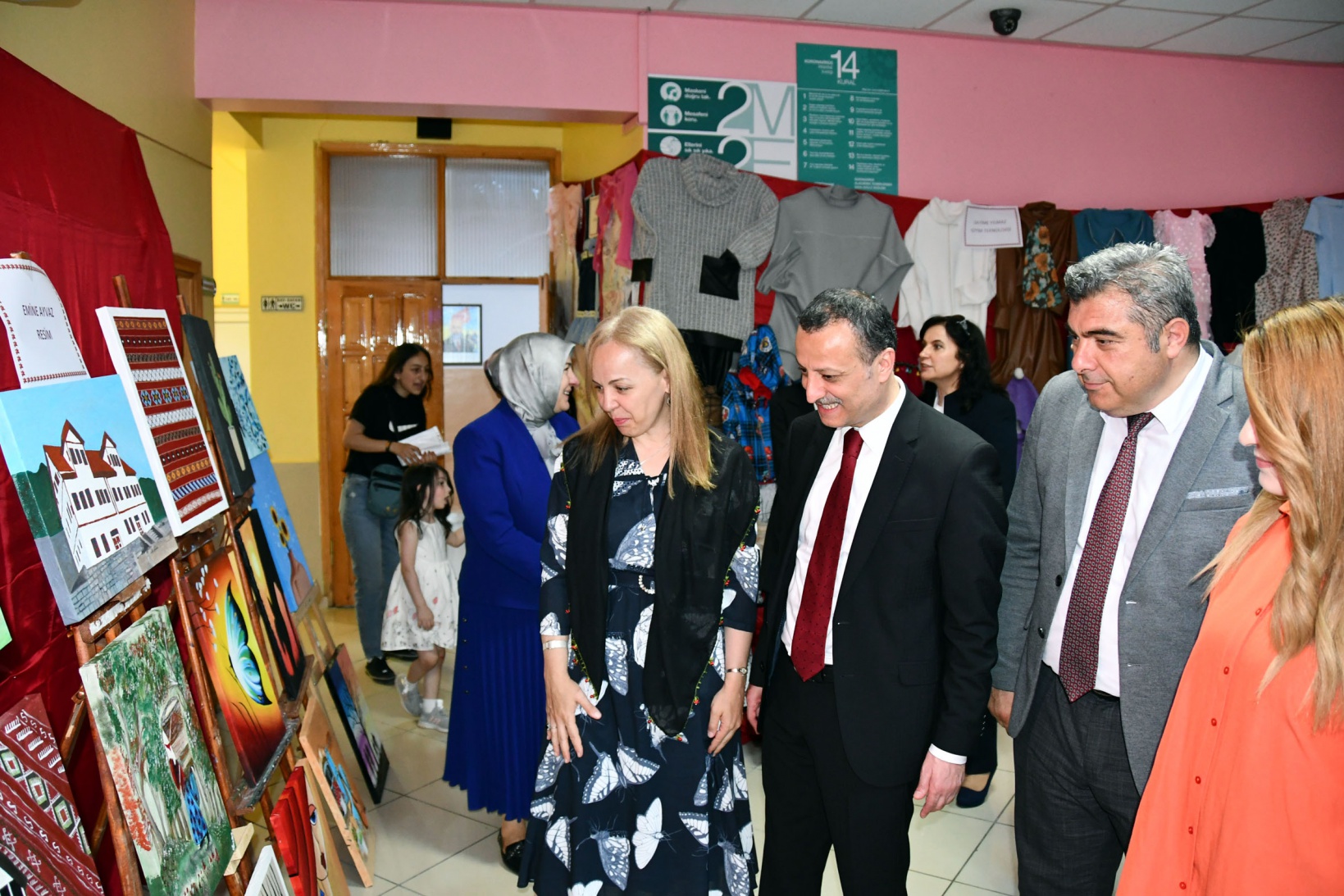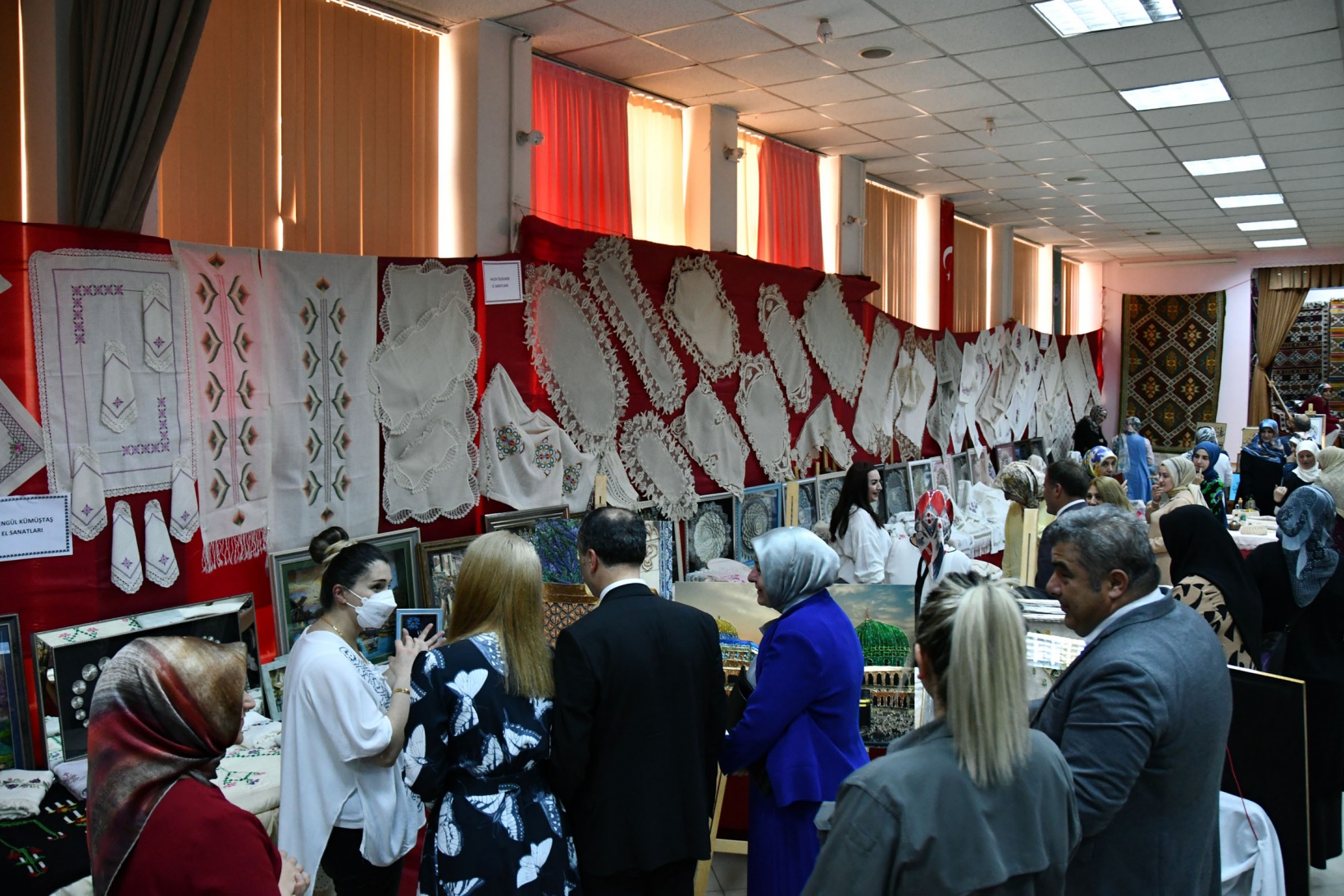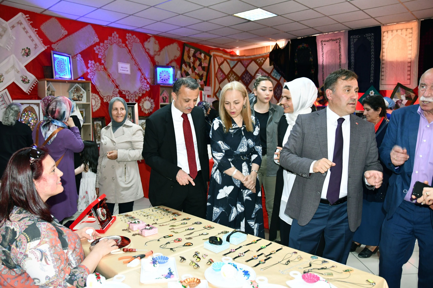 Vali Kamuran Taşbilek, eşi Sibel Taşbilek, Belediye Başkanı Ercan Çimen, İl Emniyet Müdürü Celal Taşci, İl Jandarma Komutanı Albay İsmail Gökcek, İl Milli Eğitim Müdürü Miraç Sünnetci ve davetliler açılışın ardından sergiyi gezerek tüm stantlarda hem kursiyerler hem de usta öğreticilerden bilgi aldı.