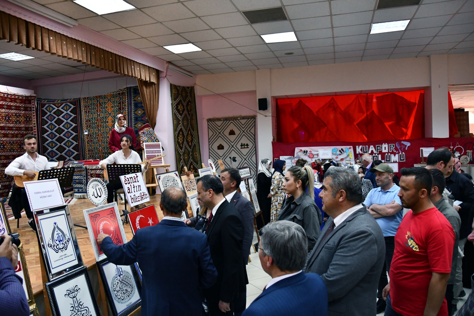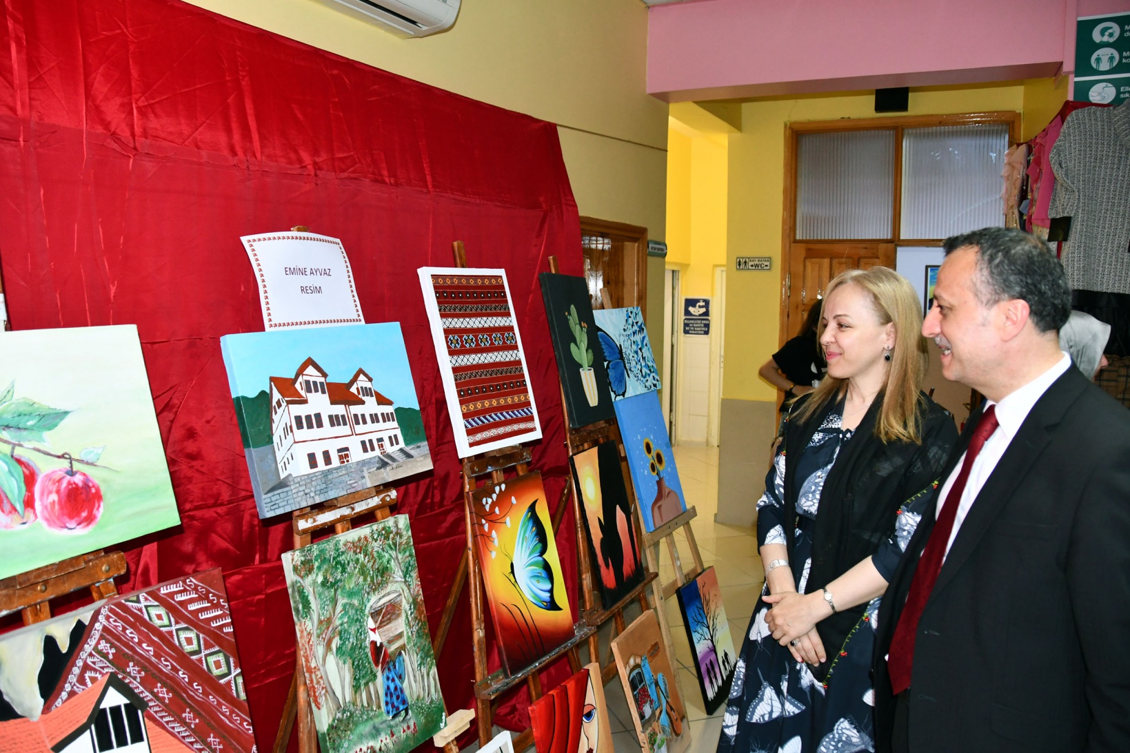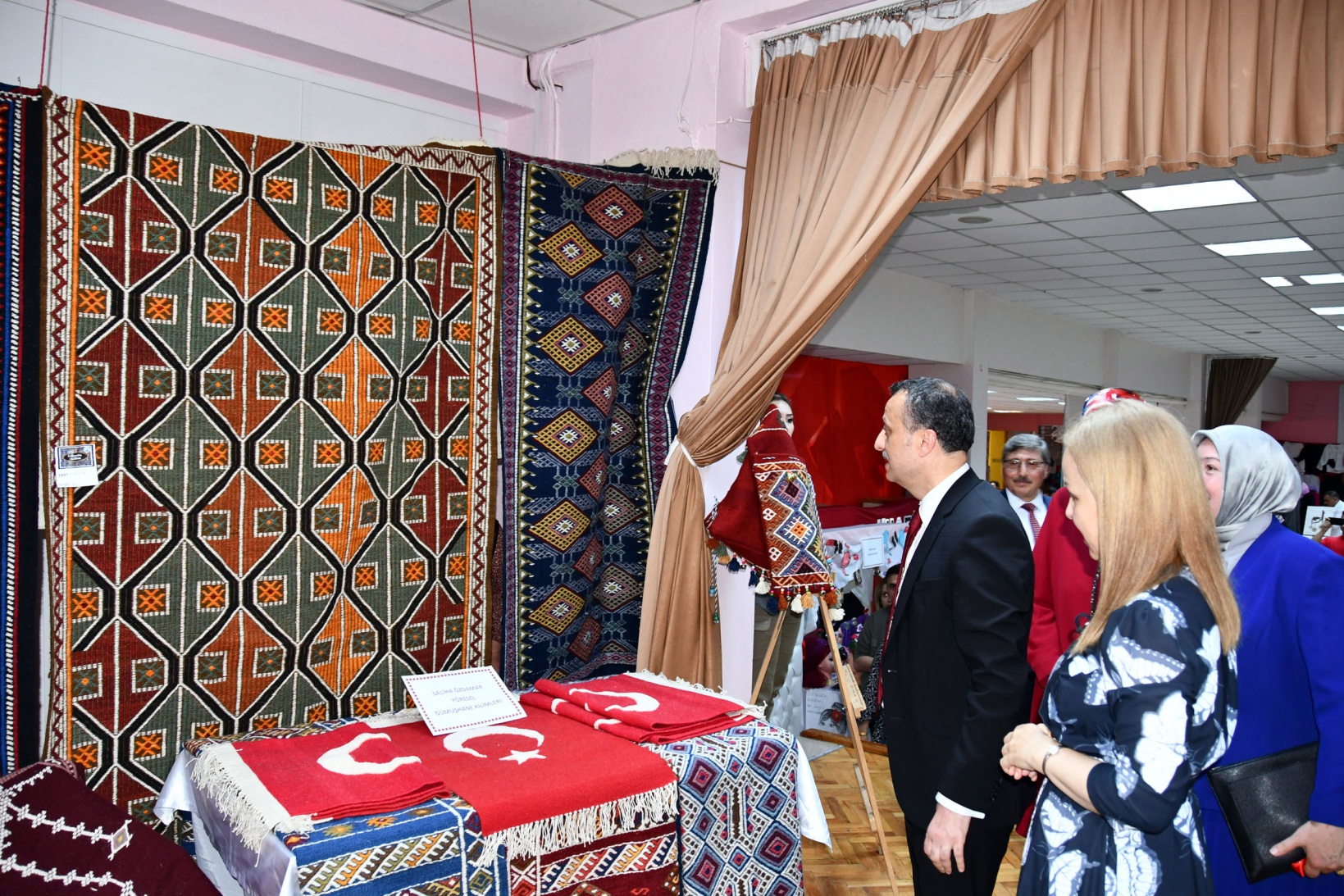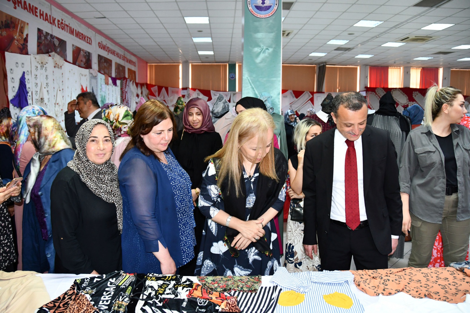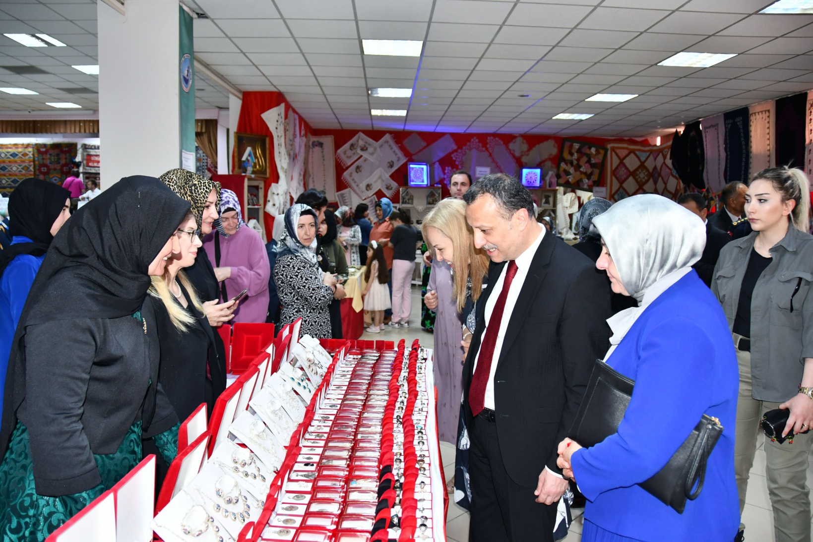 Vali Kamuran Taşbilek, eşi Sibel Taşbilek, Belediye Başkanı Ercan Çimen, İl Emniyet Müdürü Celal Taşci, İl Jandarma Komutanı Albay İsmail Gökcek, İl Milli Eğitim Müdürü Miraç Sünnetci ve davetliler açılışın ardından sergiyi gezerek tüm stantlarda hem kursiyerler hem de usta öğreticilerden bilgi aldı.