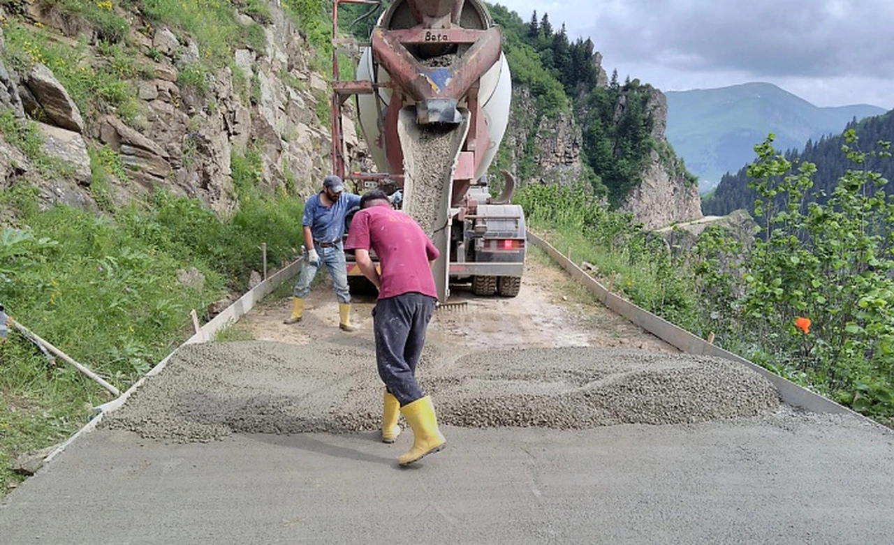 Gümüşhane kent merkezinin en uzak köylerinden birisi olan Alçakdere köyünde beton yol çalışmaları devam ediyor.