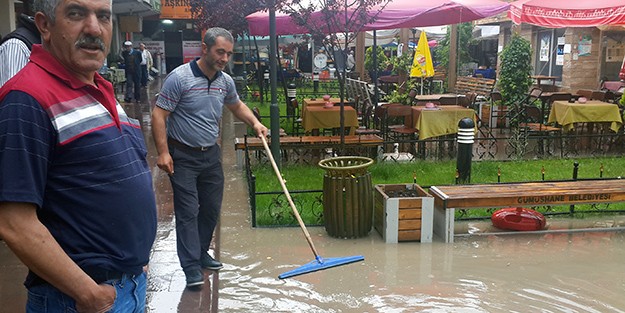 Bölgedeki işletmeciler su tahliyesi yetersiz olan bölgede ellerindeki fırçalarla suyun akışını hızlandırırken, yağış nedeniyle Karaer Mahallesinden Atatürk Caddesine ulaşan dik rampalı yoldan adeta sel geldiği gözlendi.