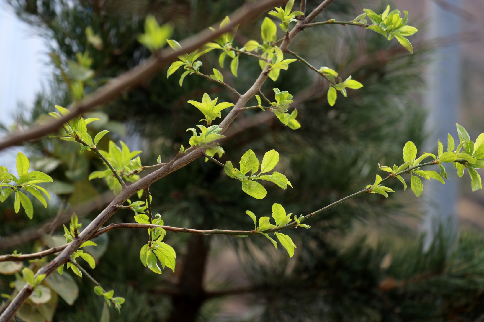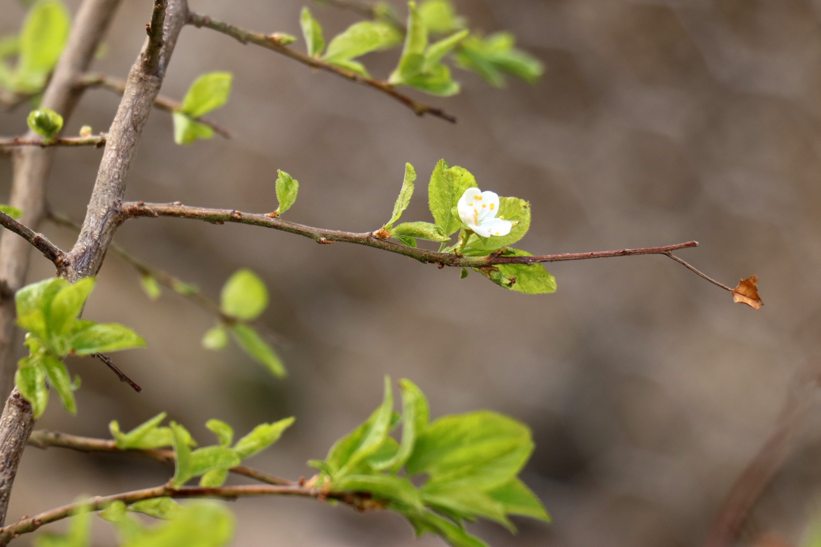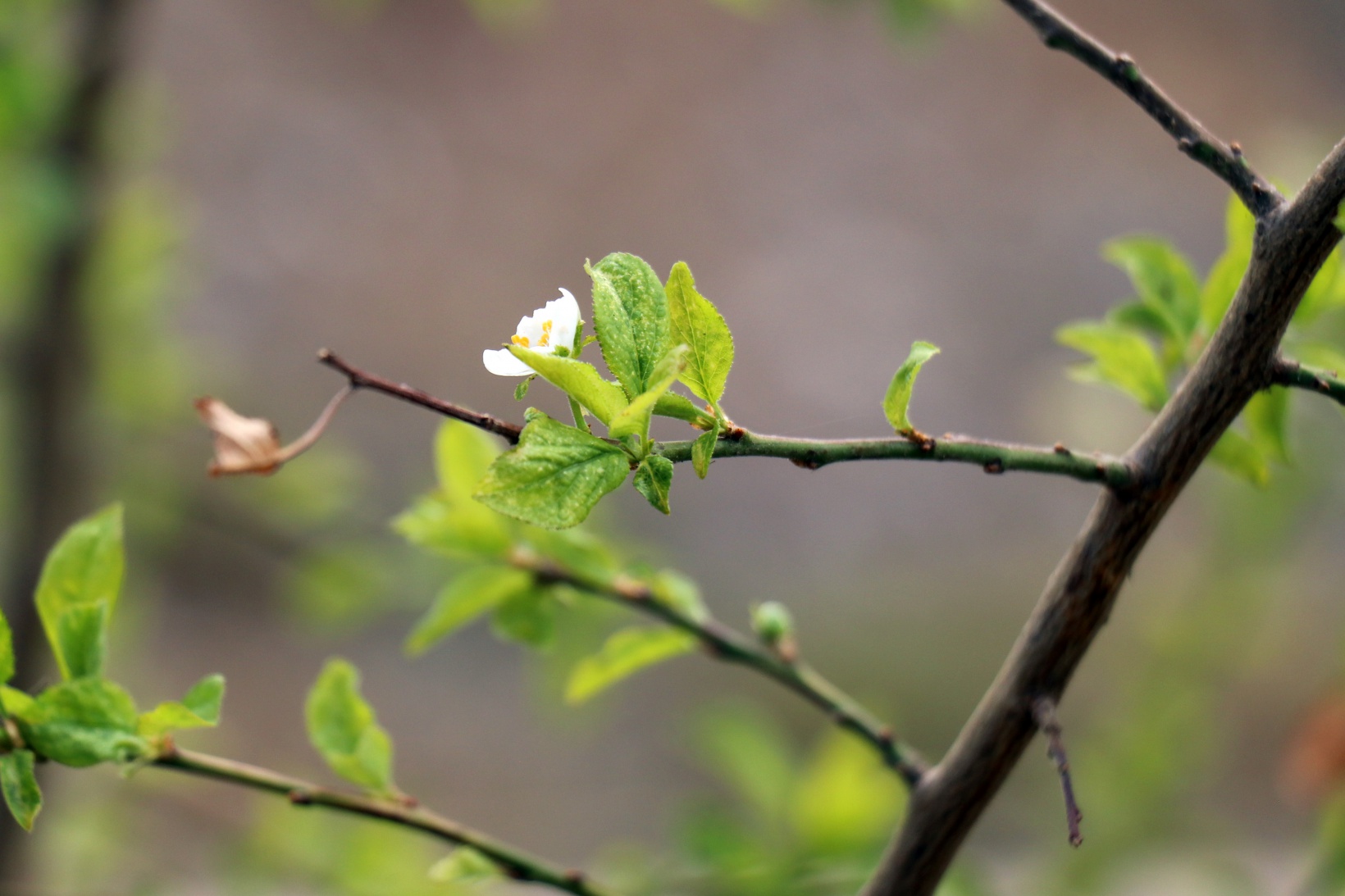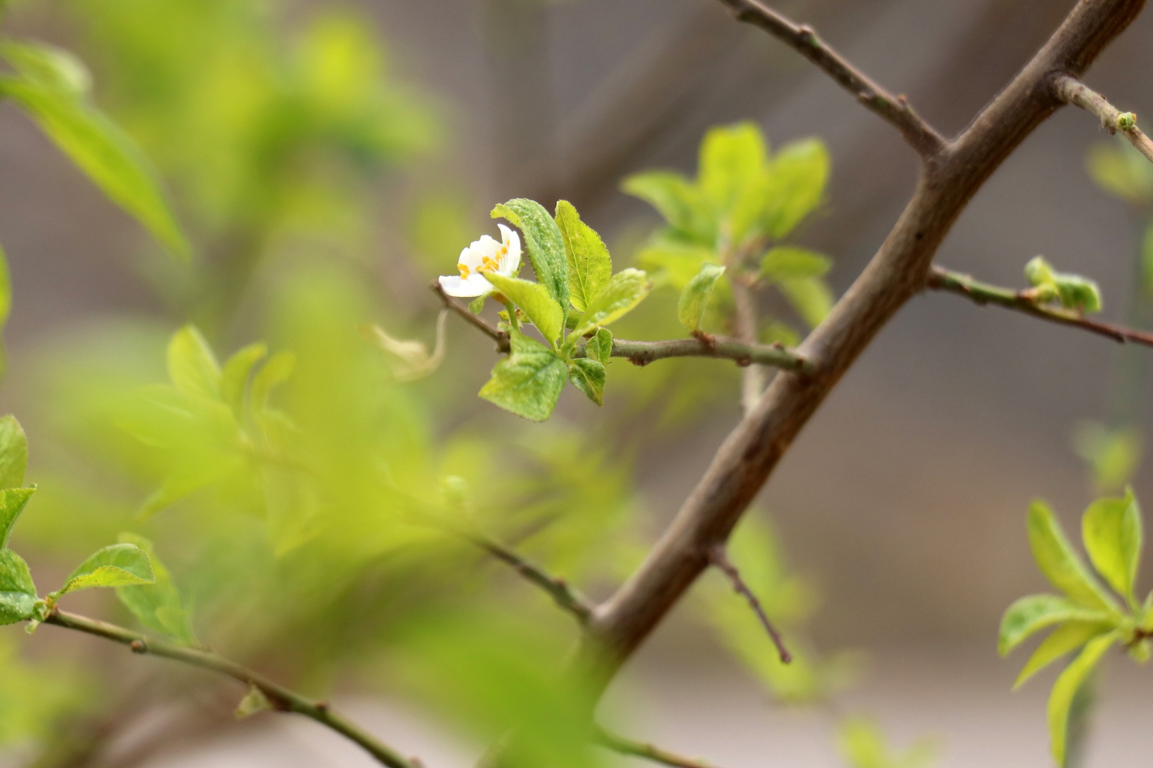 Genç erik ağacı mevsimleri şaşırdı, taze yapraklar ve çiçek açan erik ağacı görenleri şaşırttı.