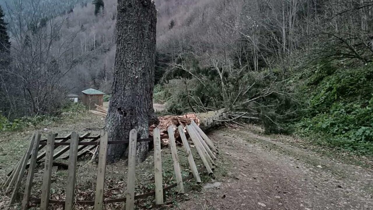 Gümüşhane'nin Kürtün ilçesi sınırlarında, doğanın eşsiz güzelliklerinden biri olarak kabul edilen Örümcek Ormanları Tabiatı Koruma alanında, yüzyıllardır ayakta duran anıt ağaç şiddetli fırtınanın etkisiyle devrildi.