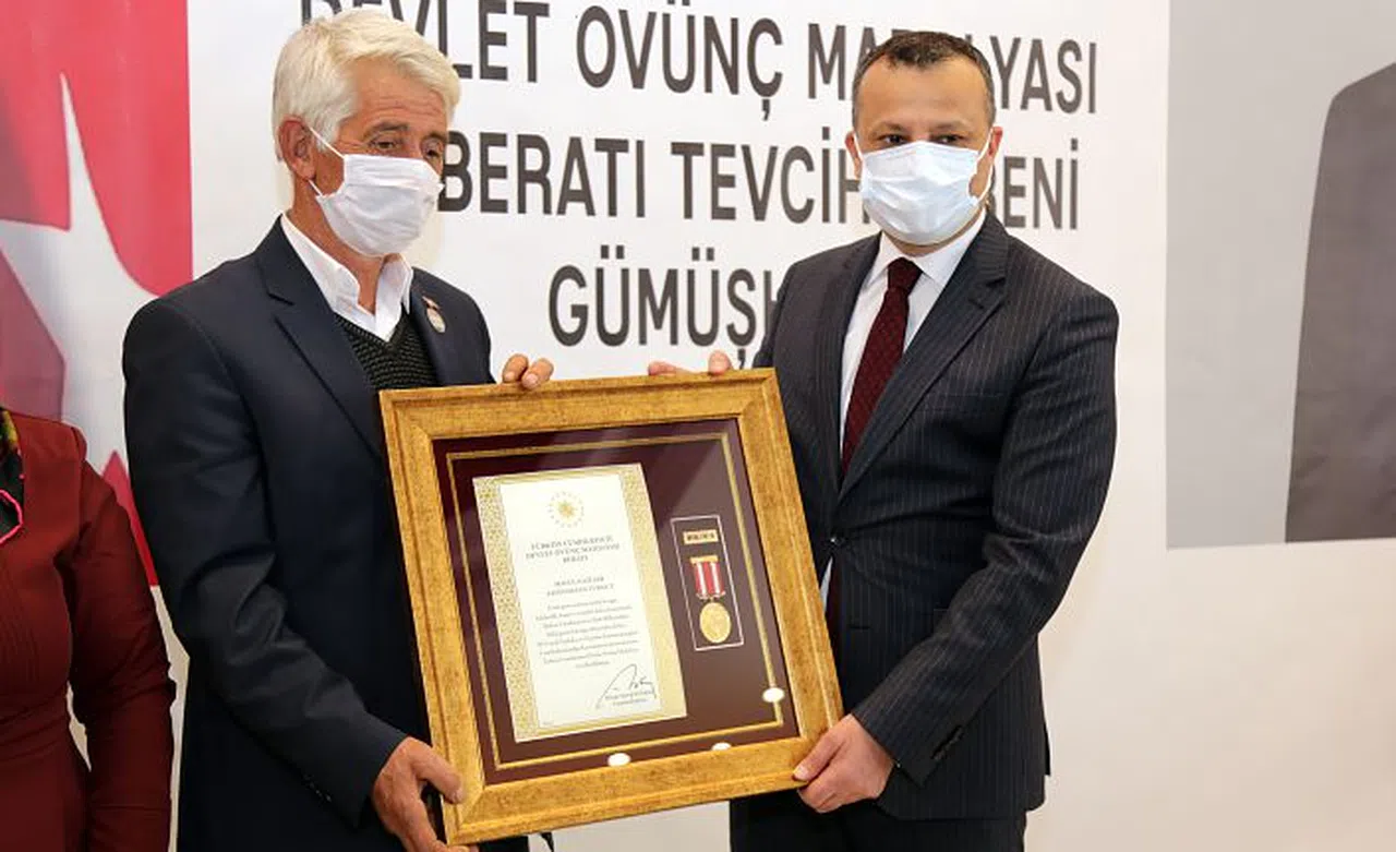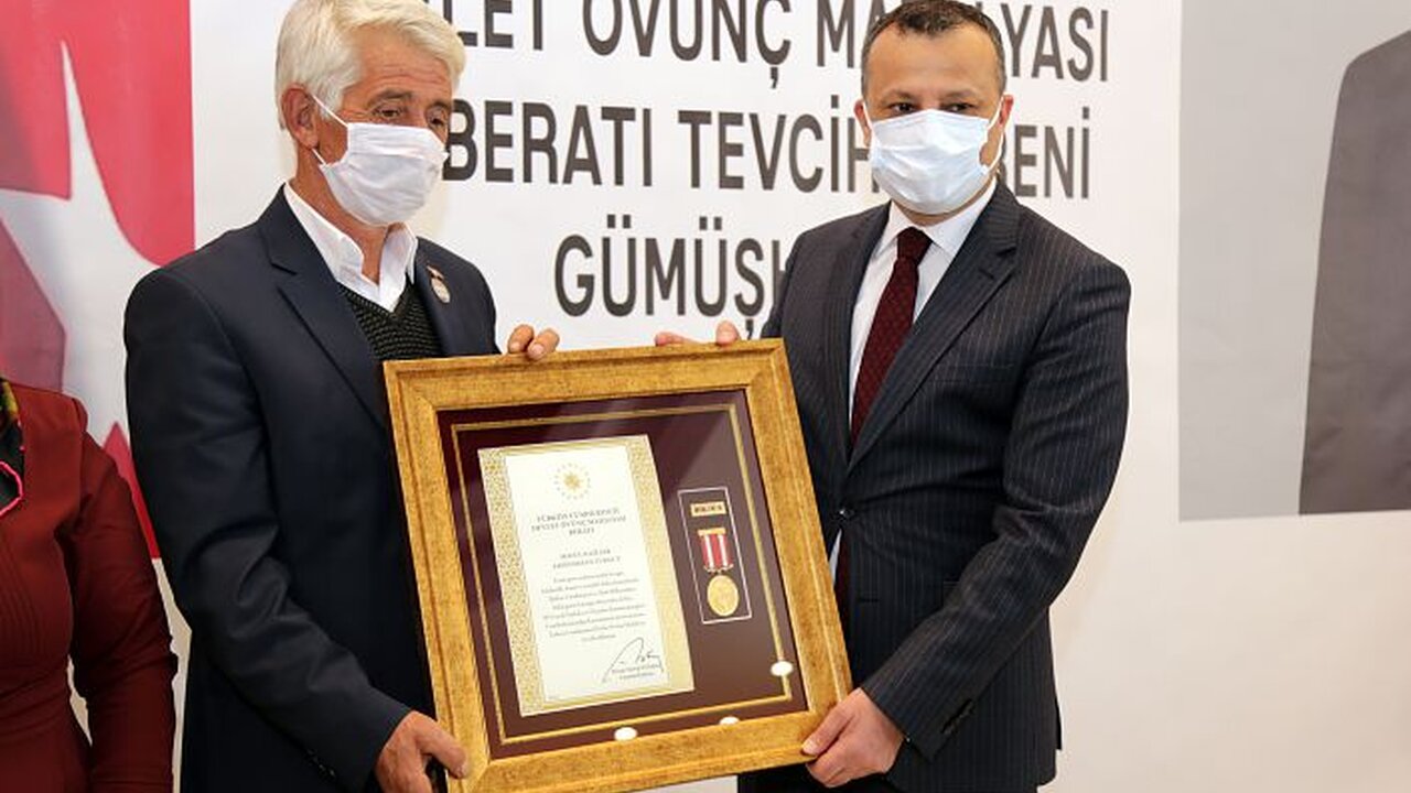 Üstün görev anlayışı içinde feragat, fedakarlık, başarı ve yararlılık dolu çalışmalarıyla Türkiye Cumhuriyeti ve Türk Milleti adına haklı gurur kaynağı olmasından dolayı 2933 sayılı Madalya ve Nişanlar Kanunu gereğince Cumhurbaşkanı Recep Tayyip Erdoğan'ın imzasıyla gönderilen madalya ve berat Gümüşhane Valiliğinde düzenlenen törende Vali Kamuran Taşbilek ve eşi Sibel Taşbilek tarafından malul gazi er Hasan Turgut ve eşine takdim edildi.