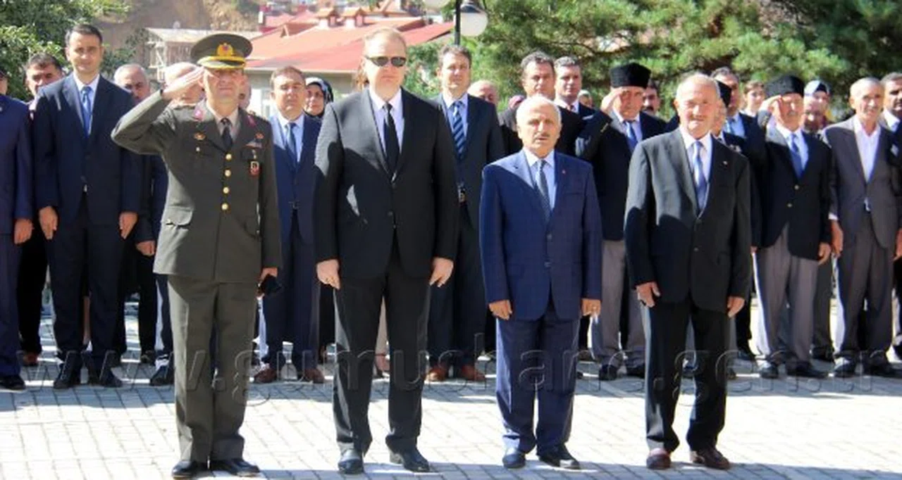 Hükümet Konağı önündeki Atatürk Anıtı'nda gerçekleştirilen törene Vali Yücel Yavuz, Garnizon Komutanı Jandarma Albay Cezayir Danışan, Belediye Başkan Vekili Yusuf Erdem, Şehit ve Gaziler Derneği Başkanı Cahit Erdoğan, askeri ve mülki erkan ile gaziler katıldı. Atatürk Anıtı'na çelenk sunulması, saygı duruşunda bulunulması ve İstiklal Marşı'nın okunmasıyla başlayan törende günün anlam ve önemi ile ilgili konuşmayı Jandarma Yarbay Dr. Semih Bulut gerçekleştirdi.