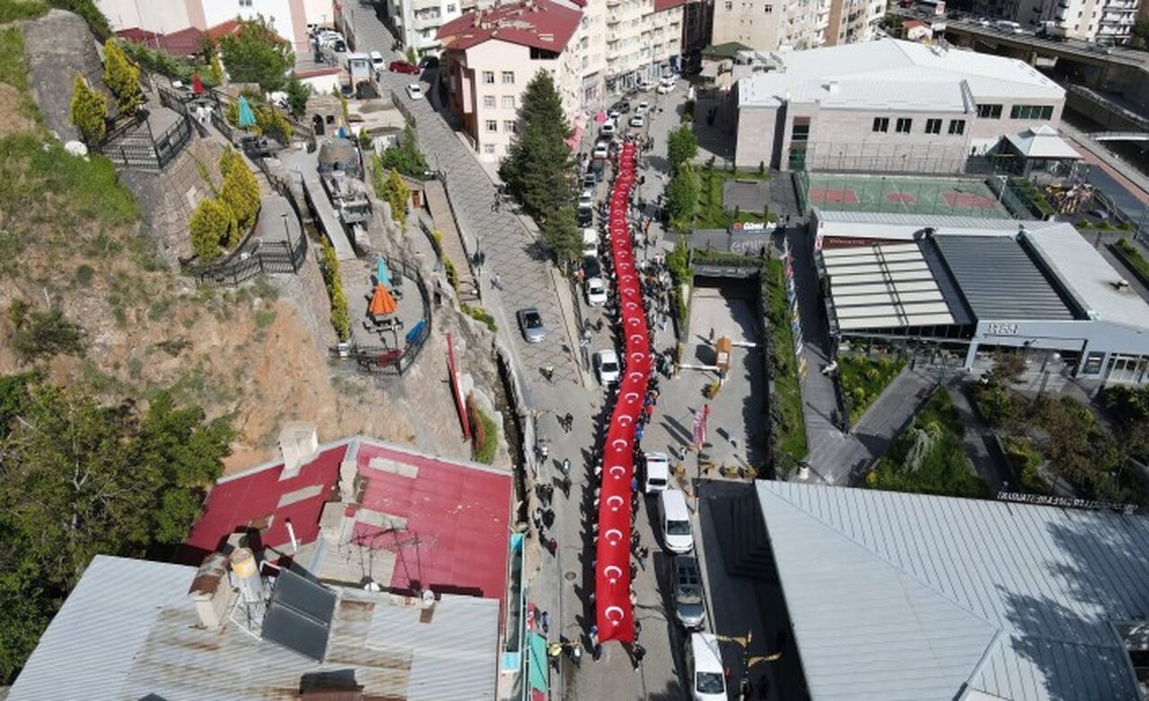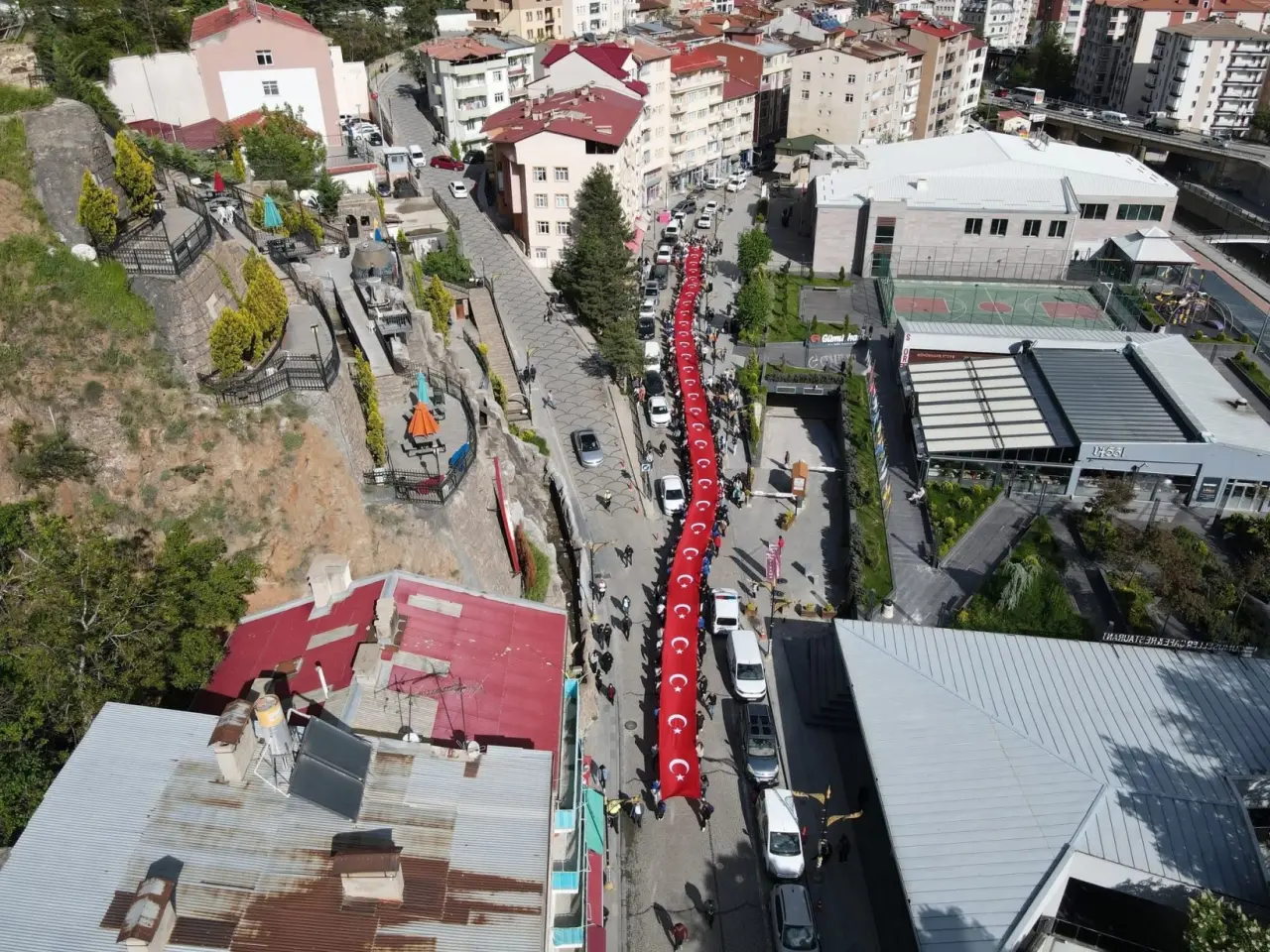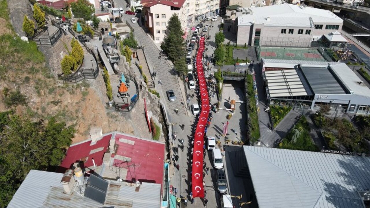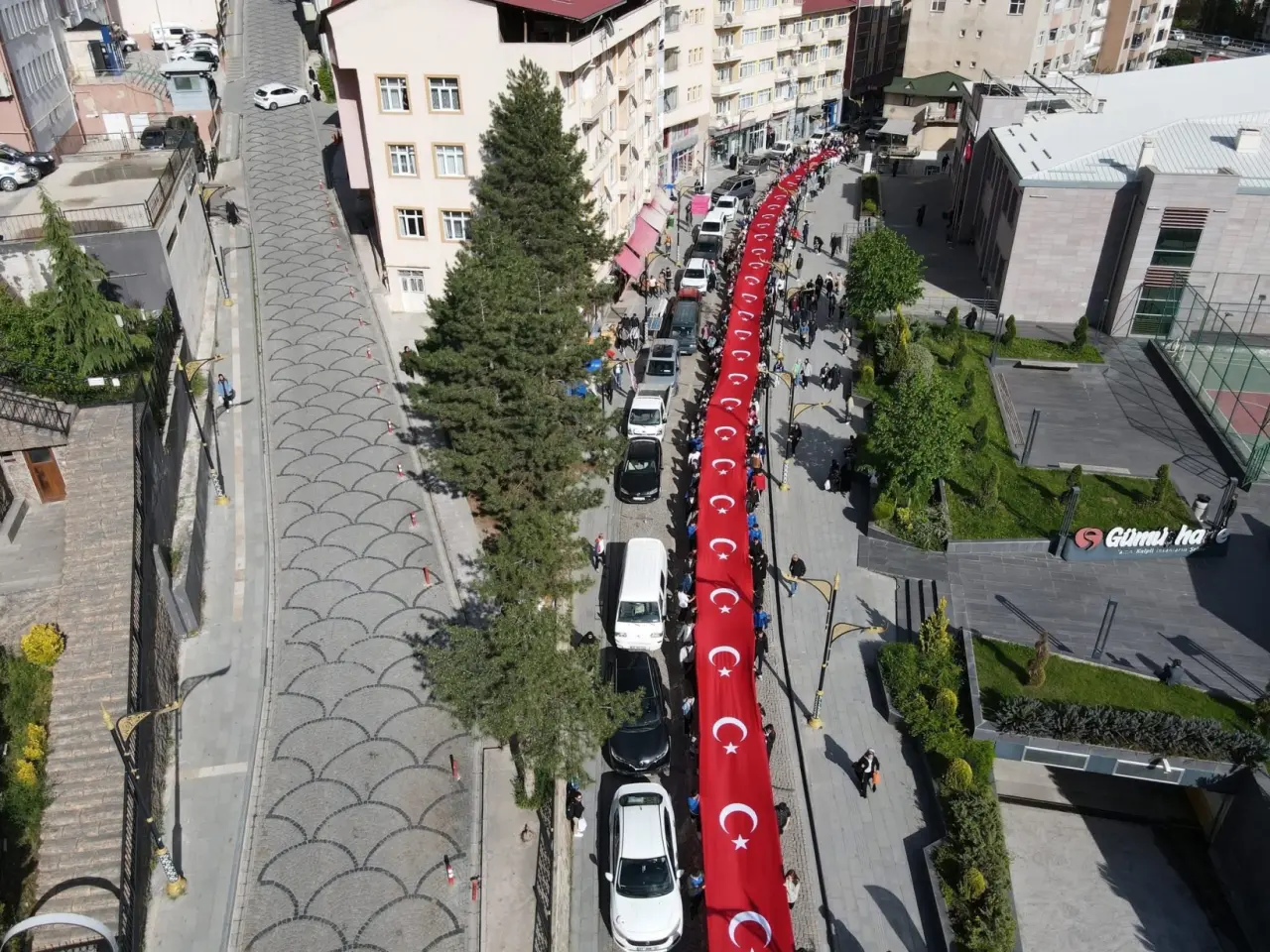 Yürüyüş boyunca büyük bir coşku içerisinde 100 metre uzunluğundaki dev Türk bayrağını taşıyarak milli birlik ve beraberlik mesajı verdi.