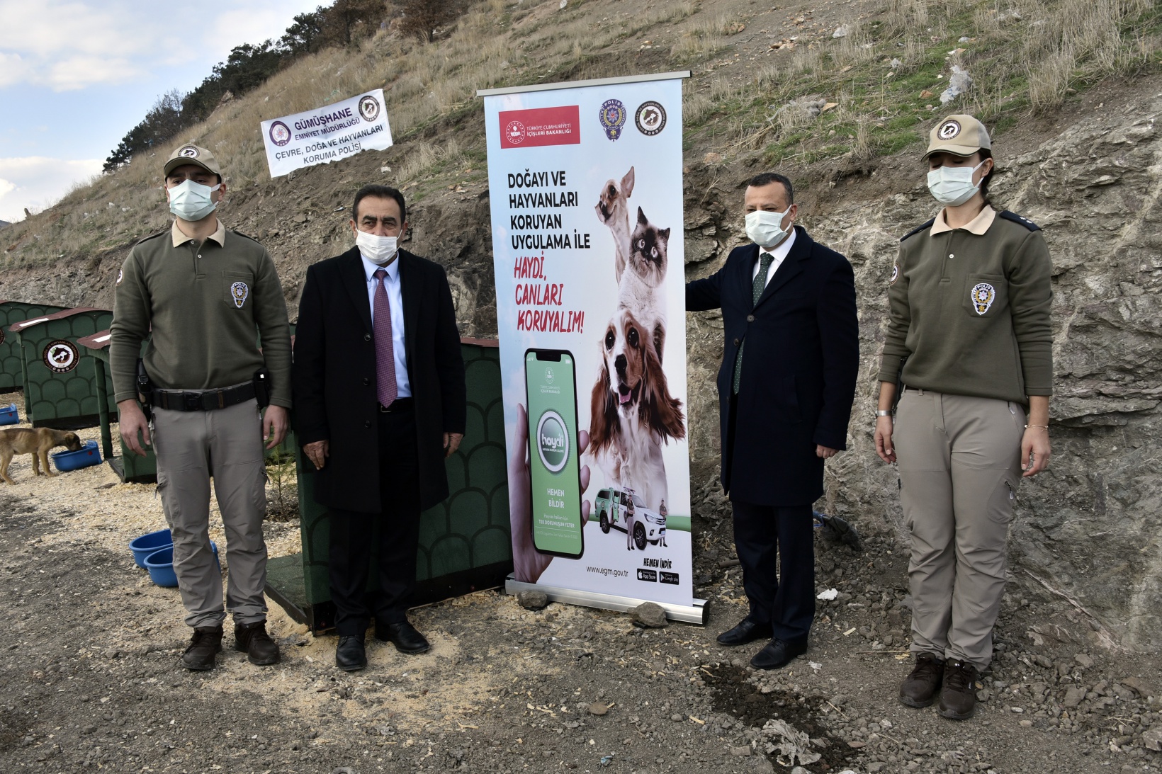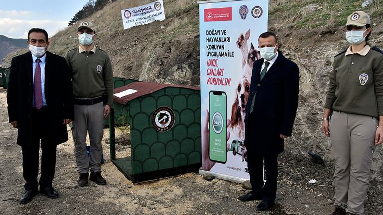 İçişleri Bakanlığı’nın talimatıyla kurulan büro Gümüşhane’de ilk iş olarak “Sokak Hayvanlarını Koruma Projesi” kapsamında eski katı atık depolama alanının olduğu bölgeye yine polis memurları tarafından yapılan 10 adet köpek kulübesi yerleştirdi.