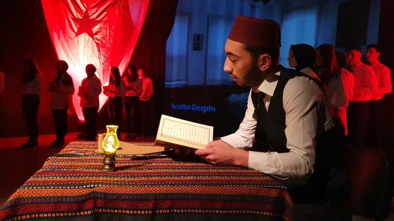 Düzenlenen resim, şiir, kompozisyon yarışmaları ve İstiklal marşının en güzel okuma yarışmasında dereceye girenlere ödüllerinin protokol üyeleri tarafından verildiği programda son olarak öğrenciler tarafından hazırlanan “Hürriyet yolunda Marşımız” adlı tiyatro ve oratoryo gösterisi sahnelendi.