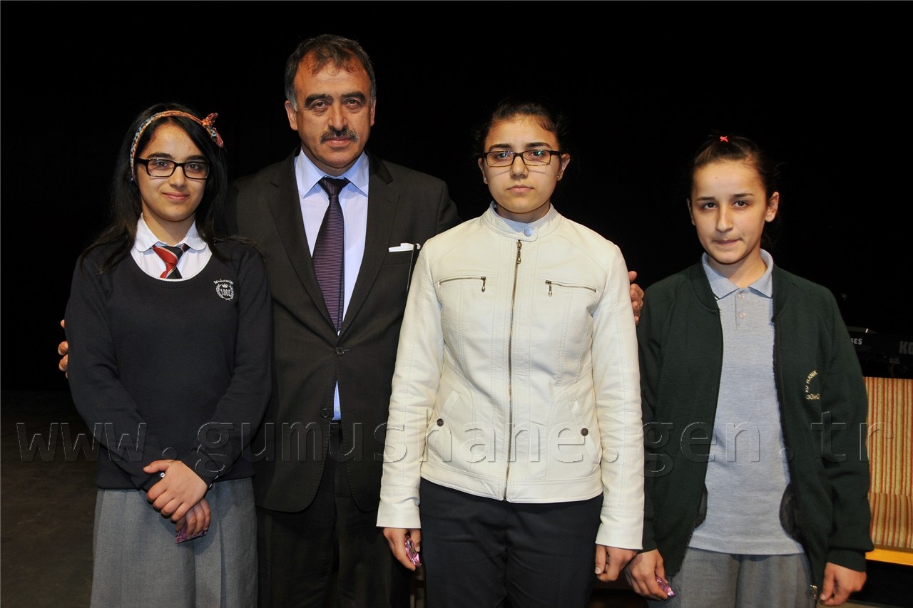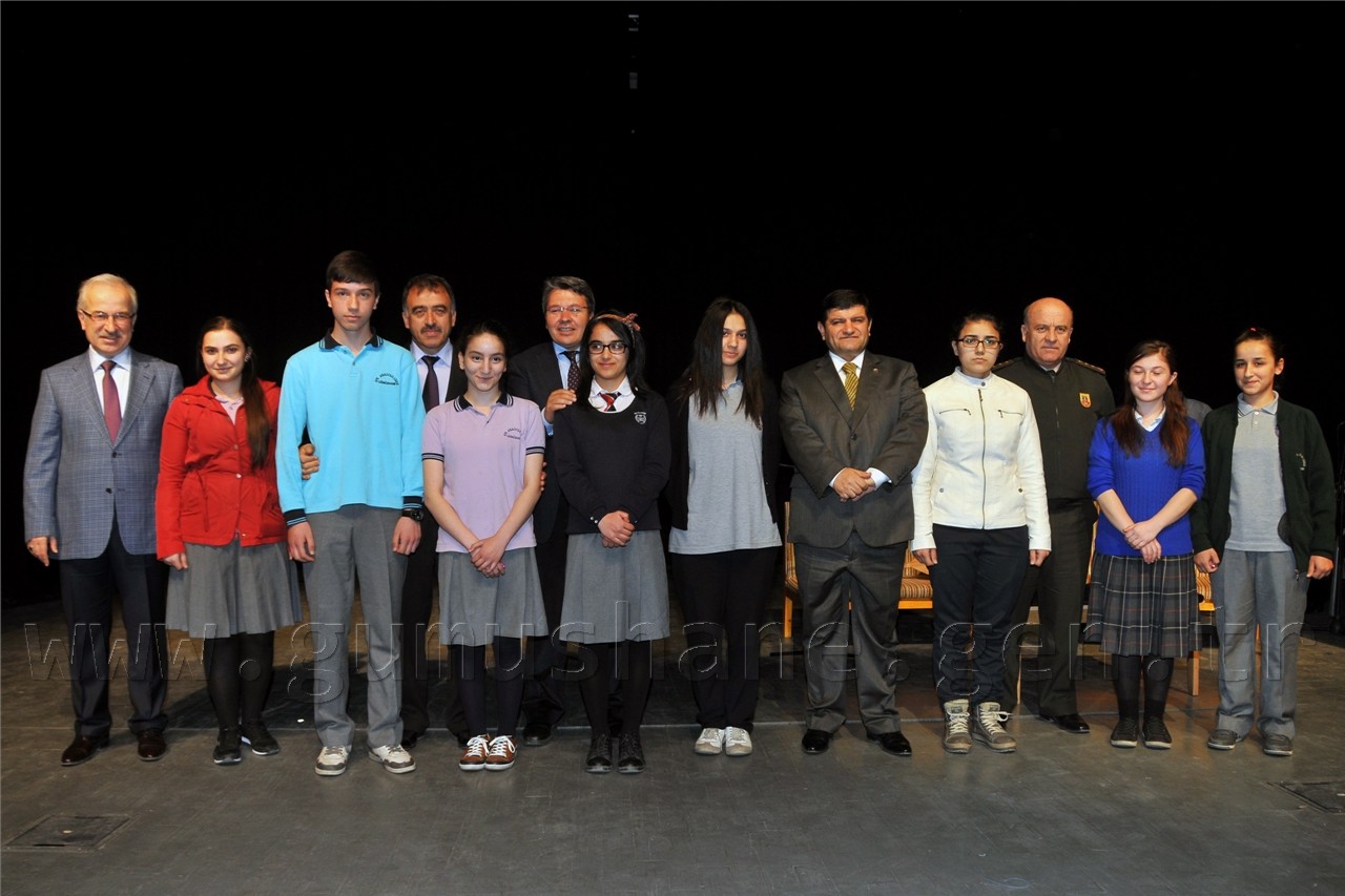 Okul öğrencileri tarafından sahneye konulan “İstiklal Marşı’nın Kabulü” isimli tiyatro gösterisinin ardından düzenlenen resim, şiir ve kompozisyon yarışmalarında dereceye giren öğrencilere ödülleri protokol üyeleri tarafından verildi.