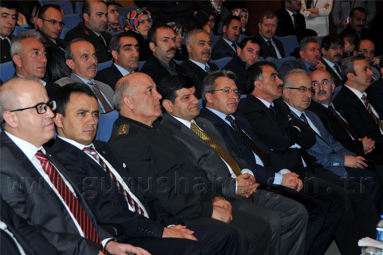 Gümüşhane Kültür Merkezinde icra edilen ve Teknik ve Endüstri Meslek Lisesi tarafından organize edilen programa Vali Dr. Yusuf Mayda, Milletvekili Feramuz Üstün, Garnizon Komutanı Jandarma Albay Serhat Önder, Belediye Başkanı Mustafa Canlı, Cumhuriyet Başsavcısı Mehmet Karademir, Emniyet Müdürü Ahmet Can, Milli Eğitim Müdürü Murat Yazıcı, kurum ve okul müdürleri, sivil toplum örgütü temsilcileri ve öğrenciler katıldı.