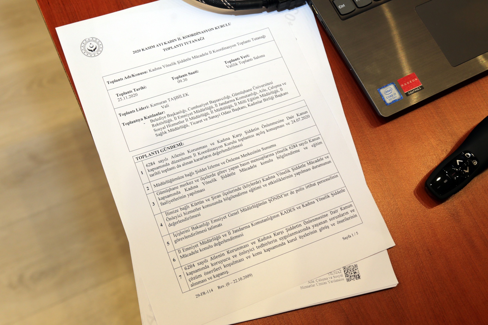 25 Kasım Kadına Yönelik Şiddete Karşı Uluslararası Mücadele Günü kapsamında Valilik Toplantı Salonunda gerçekleştirilen toplantıda kadına yönelik şiddete karşı alınması gereken tedbirler ve bu kapsamda verilen hizmetler görüşüldü.