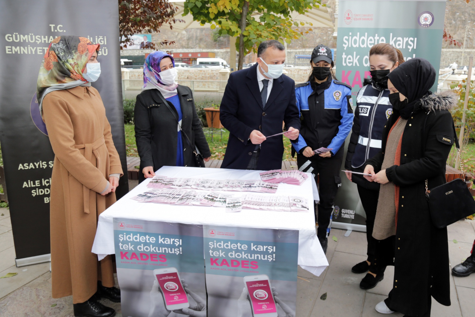 Gümüşhane'de Kadına Yönelik Şiddetle Mücadele İl Koordinasyon Kurulu Vali Kamuran Taşbilek başkanlığında toplandı. Toplantının ardından açılan stantlarda kadınlara KADES programı tanıtıldı.